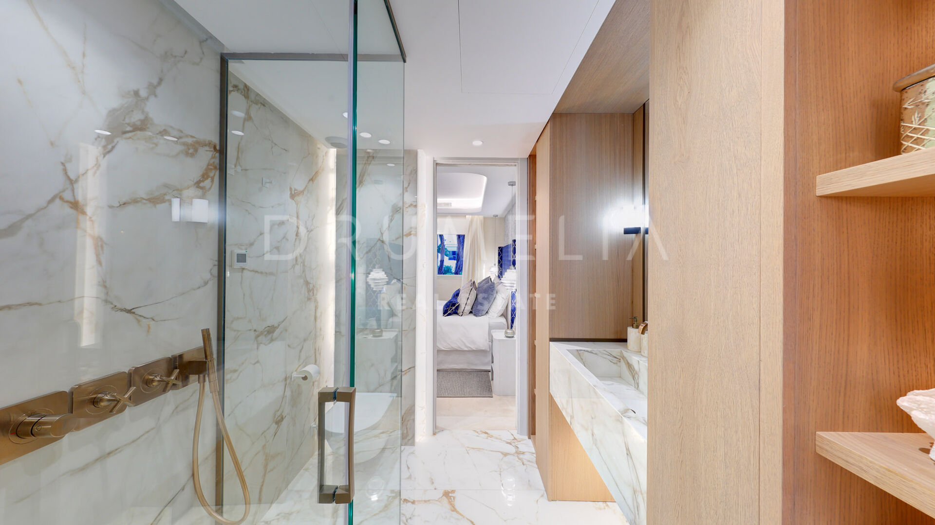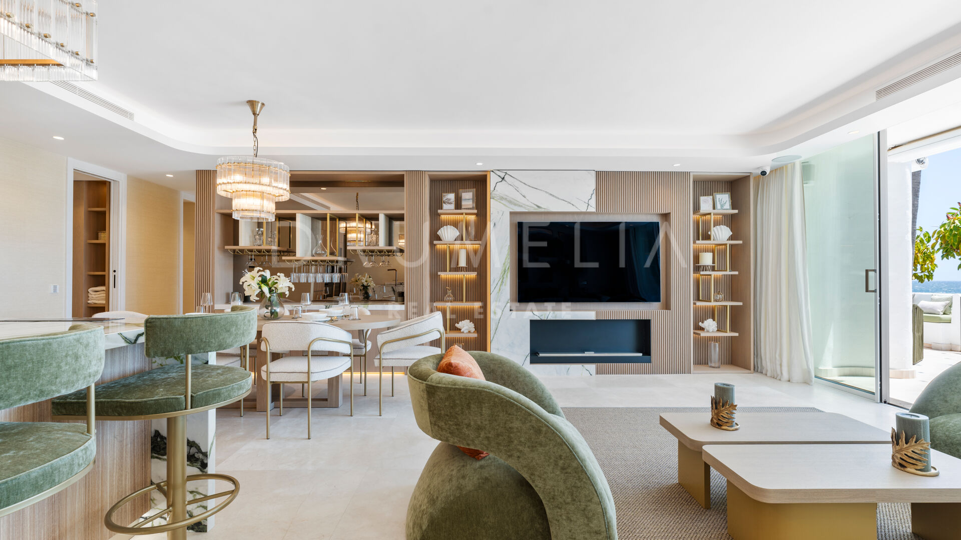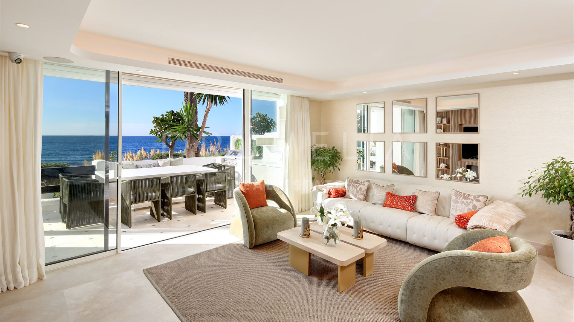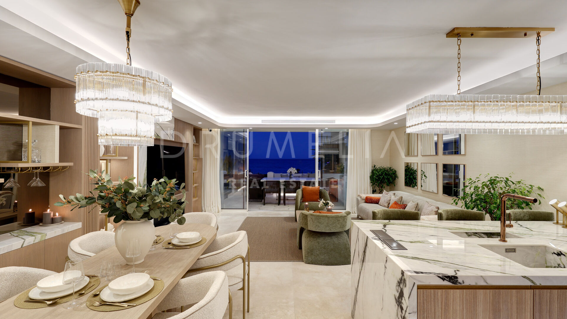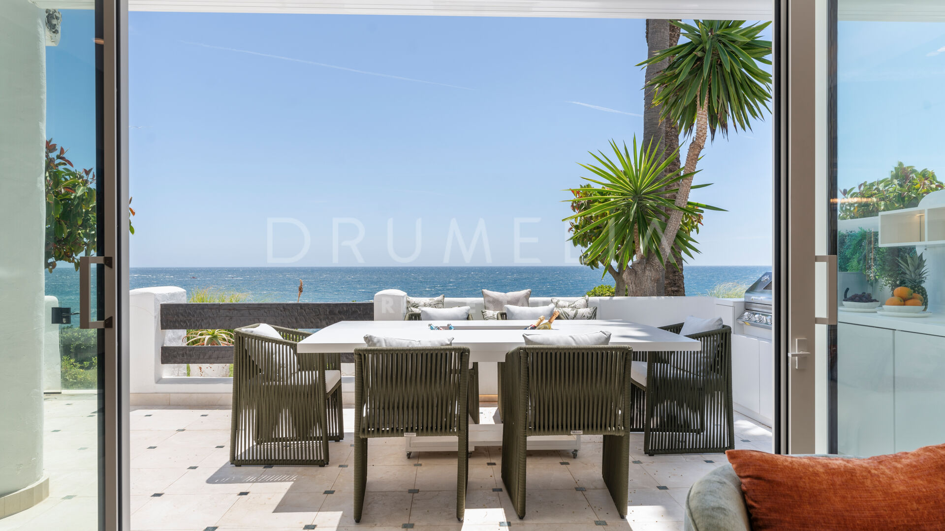 Тщательно отремонтированная в соответствии с безупречными стандартами, недвижимость может похвастаться захватывающими видами на море, которые переосмысливают концепцию жизни на берегу моря. При входе в дом вас встречает просторная и светлая кухня, гостиная и столовая открытой планировки, которая плавно переходит в частично крытую террасу, обеспечивая исключительную точку обзора, чтобы оценить завораживающий вид на море. Кухня продуманно совмещена с подсобным помещением, дополняющим комфорт и стиль пространства.