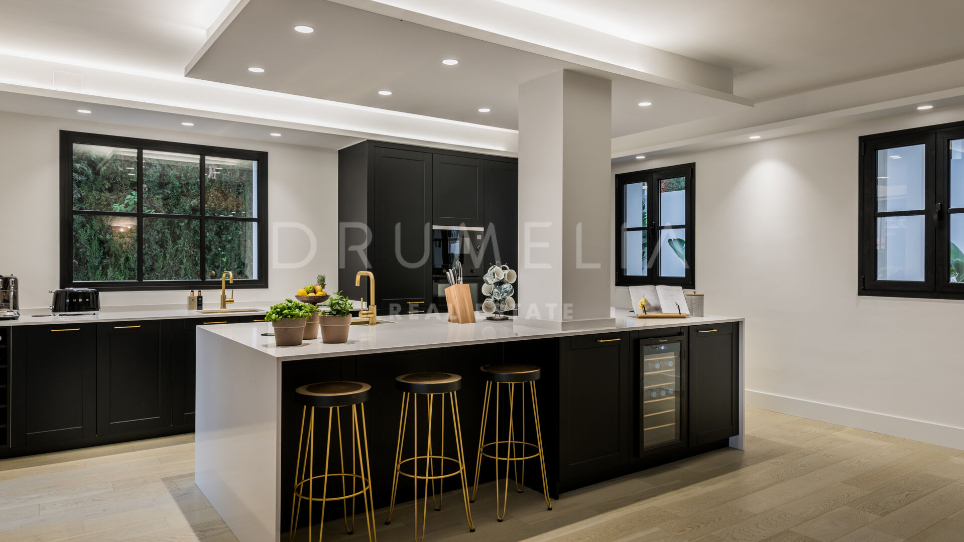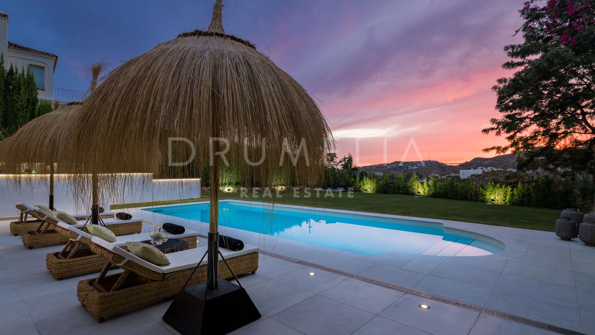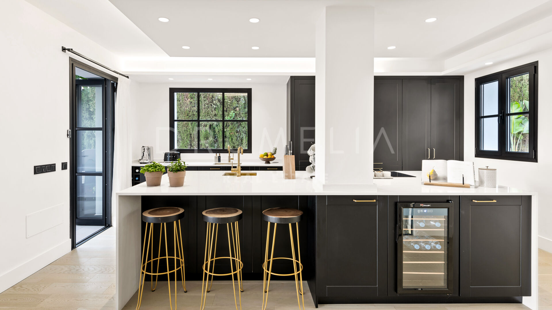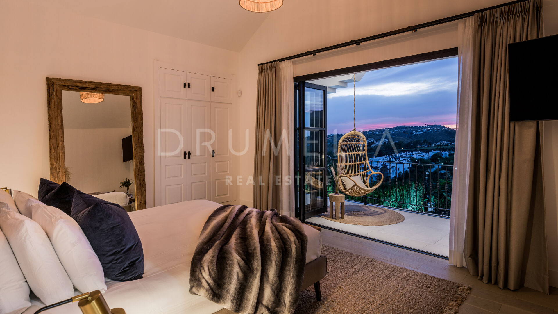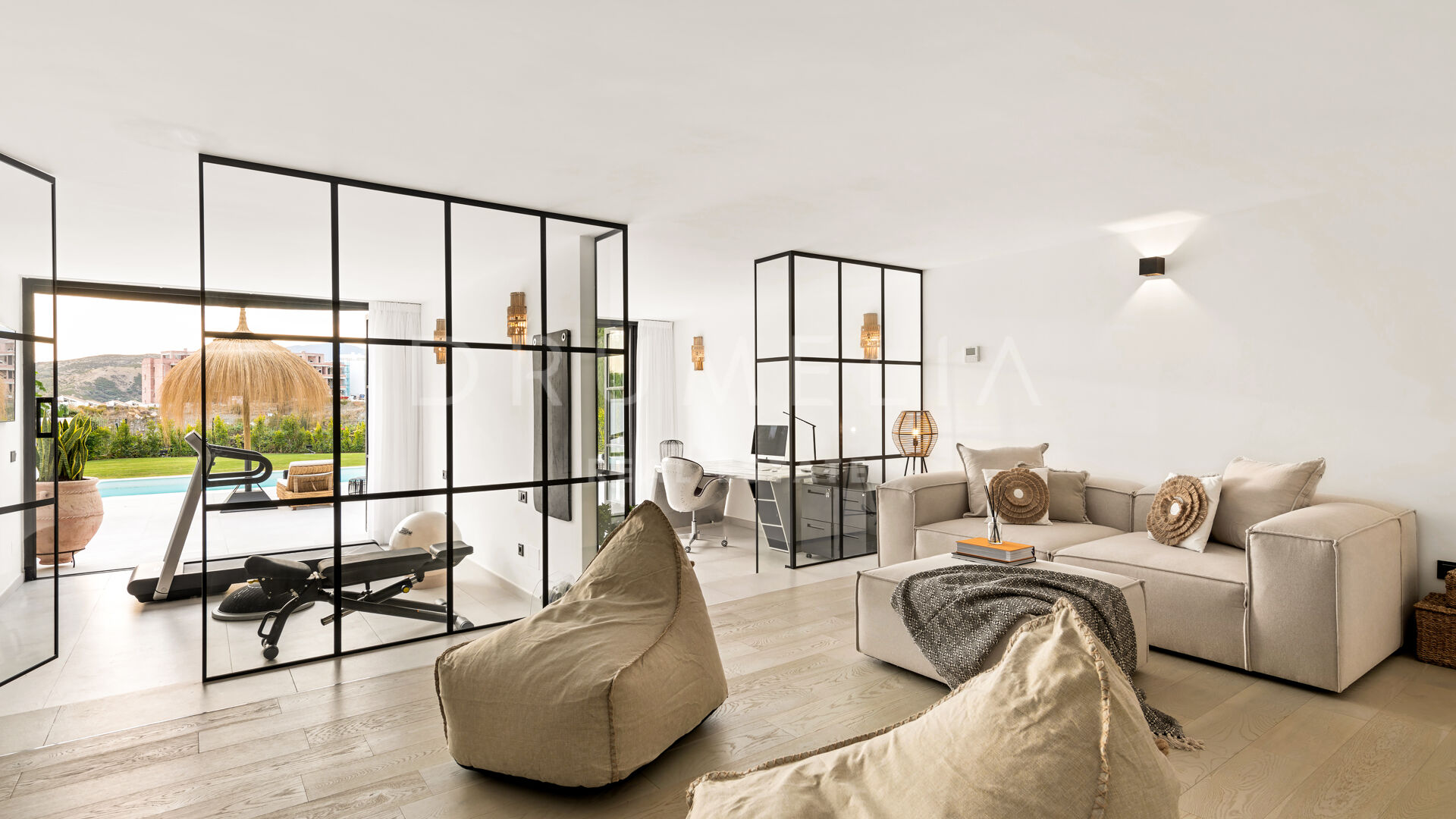 Окруженный гольф-полями, красивой природой и элитными объектами недвижимости Бенахависа, элегантный дом с 6 спальнями площадью 420 м² с участком 941 м² сочетает скандинавскую функциональность, шик современных элементов и шарм средиземноморских и этнических черт, украшающих как его архитектуру, так и интерьер. Эта потрясающая вилла была недавно полностью отремонтирована в соответствии с самыми высокими стандартами роскоши. Она предлагает просторные, светлые и открытые помещения гостиной и столовой, которые соединяются с внешней территорией участка и террасами. Совершенно новая современная кухня выполнена в модном стиле минимализм; новыми также являются шкафы, двери и тренажерный зал, полностью обновлены 6 современных ванных комнат. 6 безмятежных и уютных спален выполнены в стиле Нордик и могут похвастаться стильной мебелью и красивыми постельными принадлежностями нейтральной палитры.