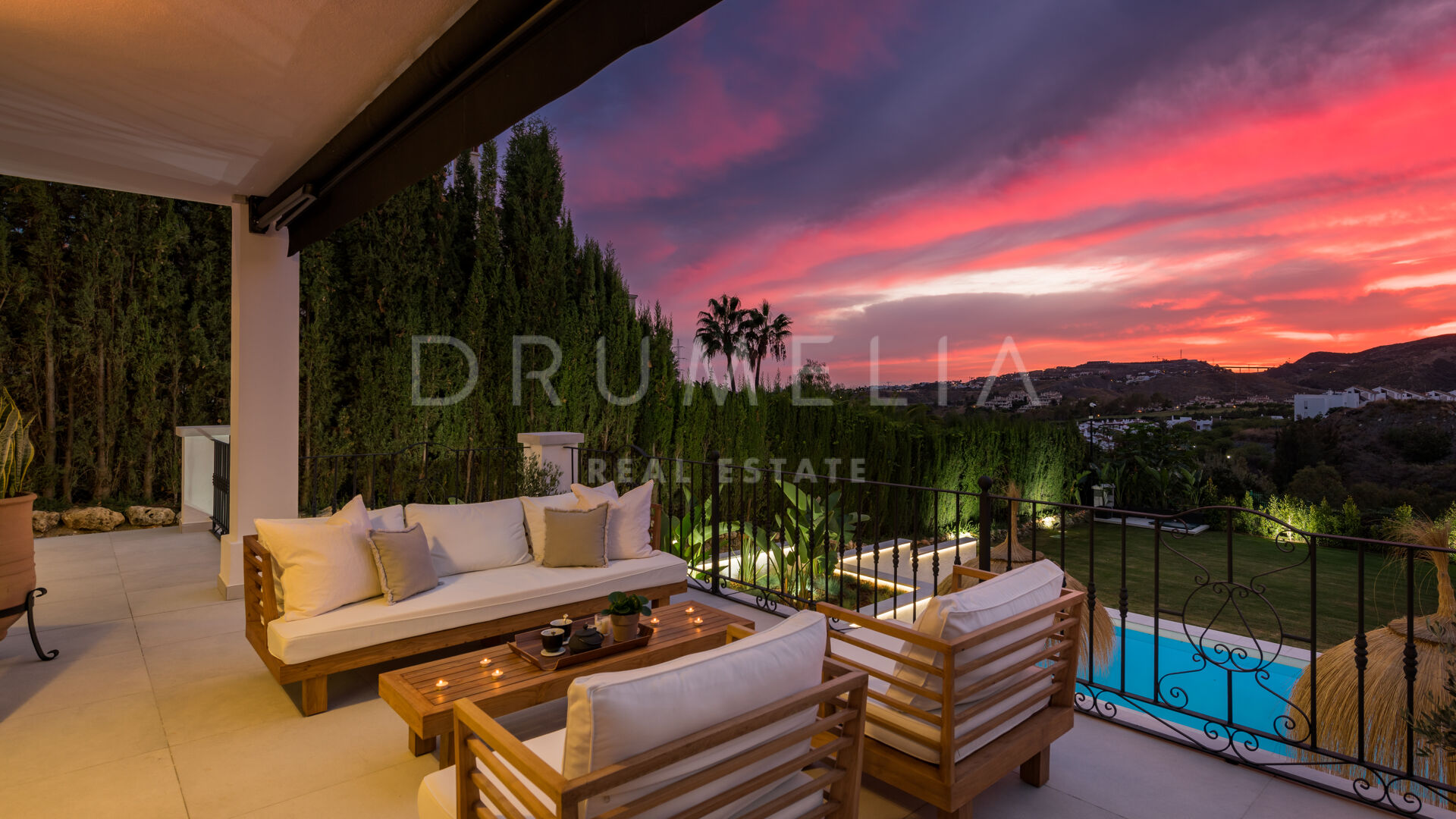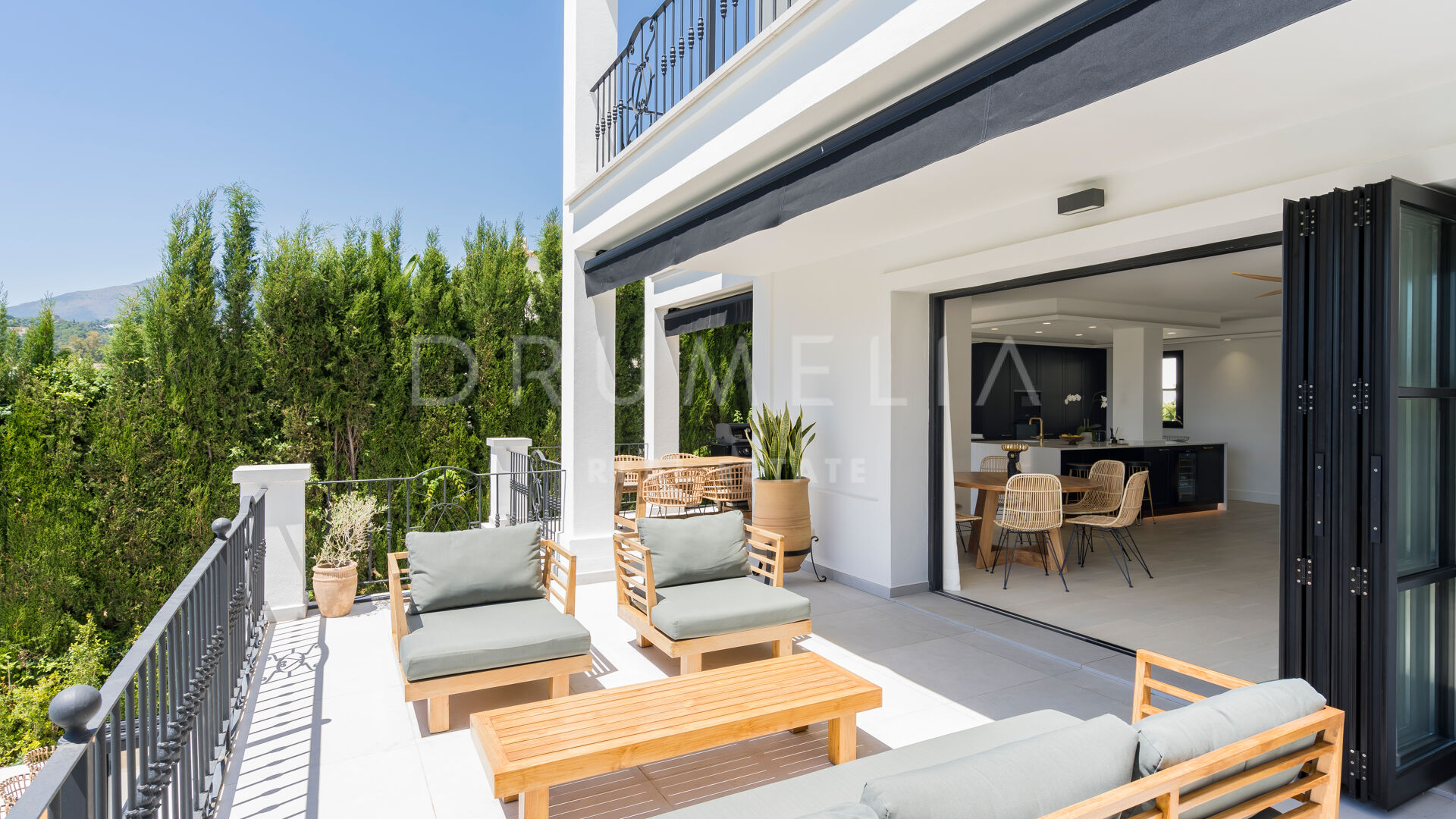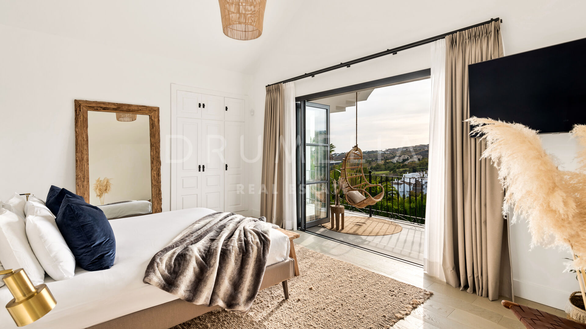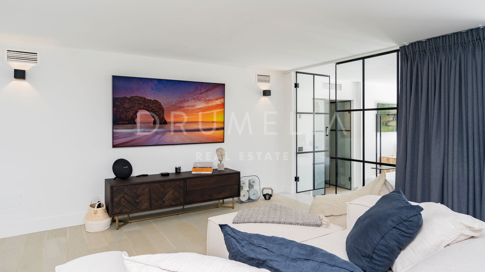 Окруженный гольф-полями, красивой природой и элитными объектами недвижимости Бенахависа, элегантный дом с 6 спальнями площадью 420 м² с участком 941 м² сочетает скандинавскую функциональность, шик современных элементов и шарм средиземноморских и этнических черт, украшающих как его архитектуру, так и интерьер. Эта потрясающая вилла была недавно полностью отремонтирована в соответствии с самыми высокими стандартами роскоши. Она предлагает просторные, светлые и открытые помещения гостиной и столовой, которые соединяются с внешней территорией участка и террасами. Совершенно новая современная кухня выполнена в модном стиле минимализм; новыми также являются шкафы, двери и тренажерный зал, полностью обновлены 6 современных ванных комнат. 6 безмятежных и уютных спален выполнены в стиле Нордик и могут похвастаться стильной мебелью и красивыми постельными принадлежностями нейтральной палитры.