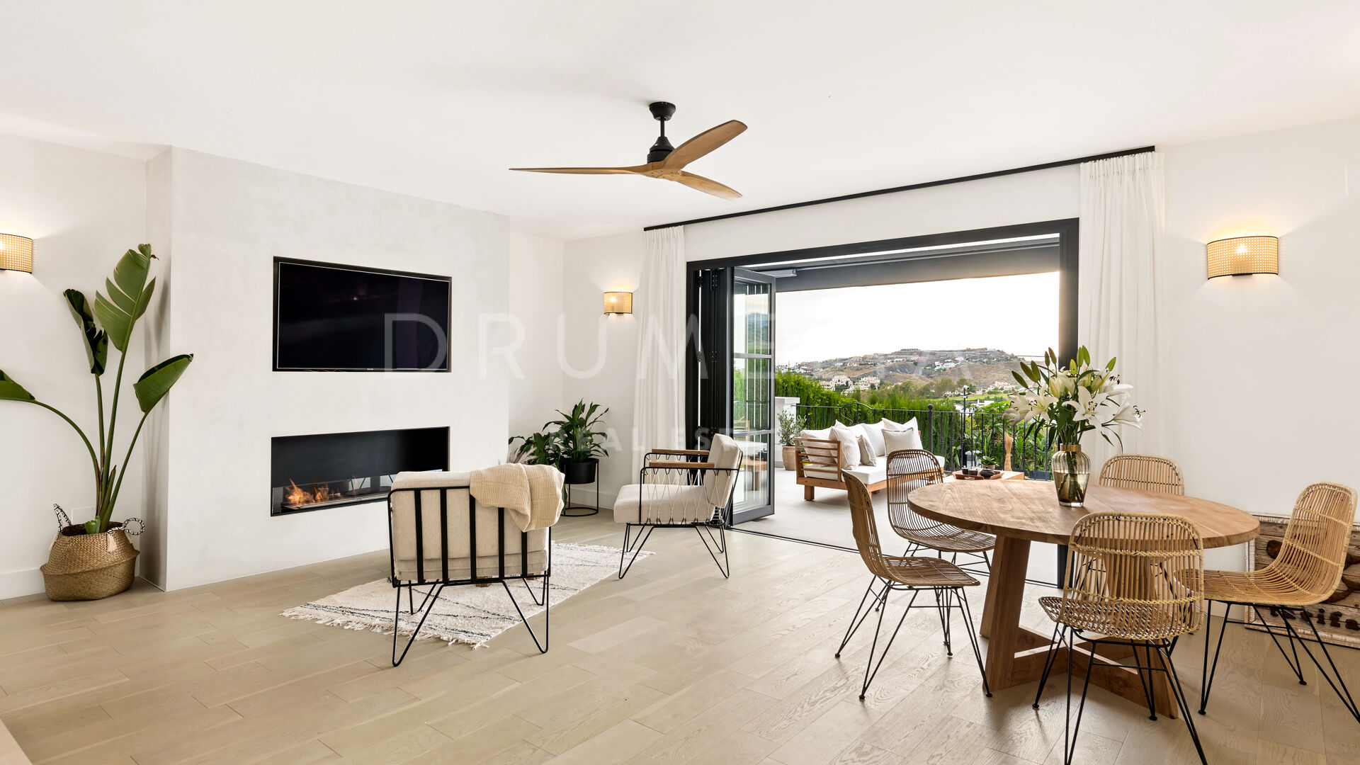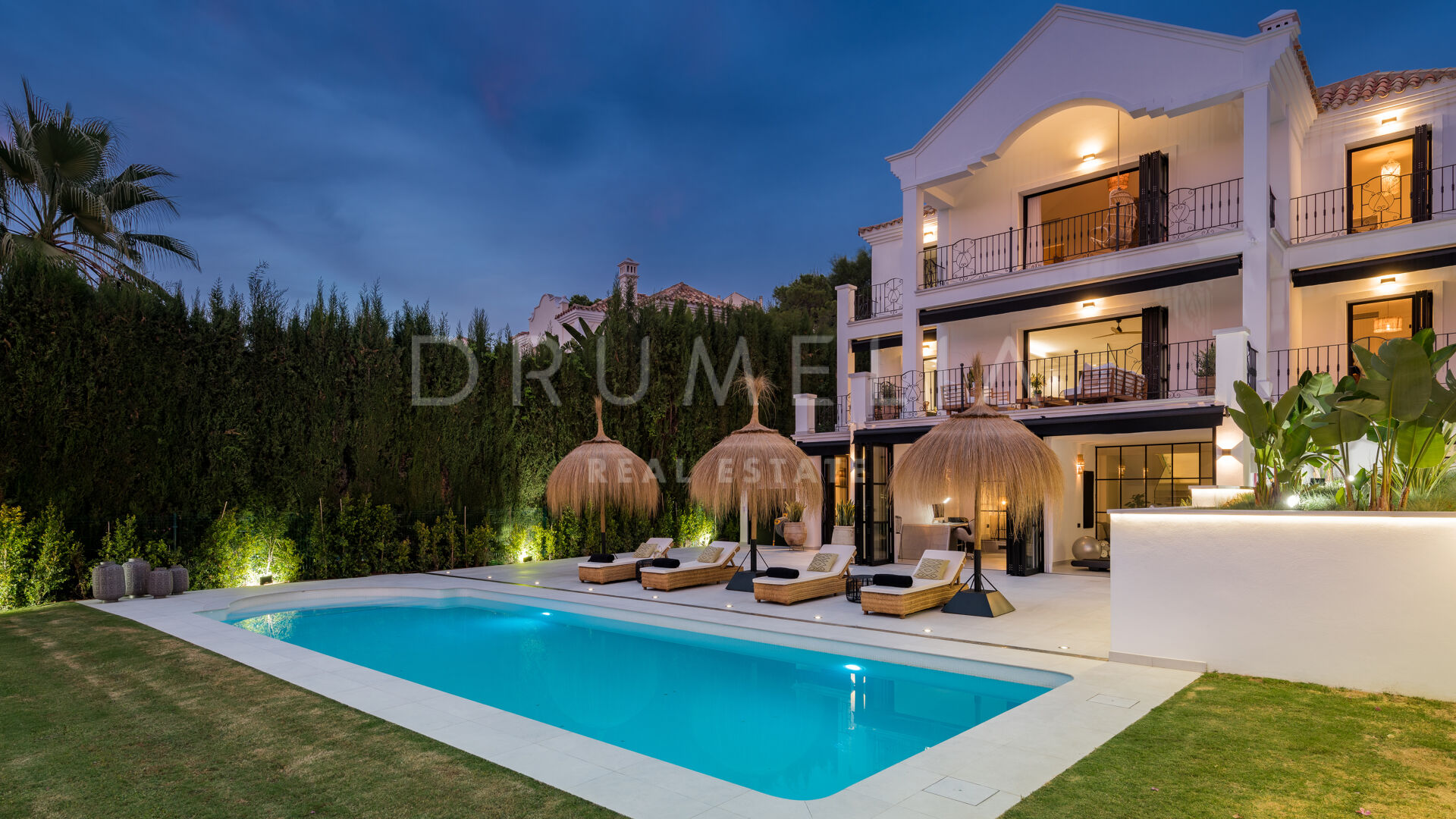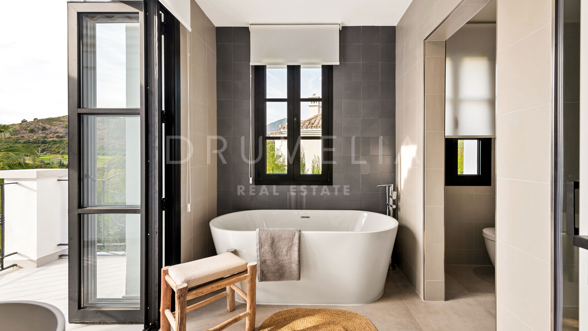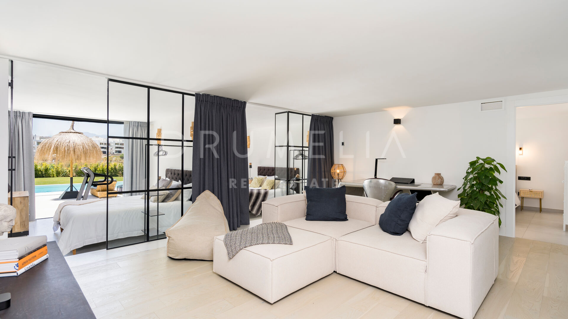 Окруженный гольф-полями, красивой природой и элитными объектами недвижимости Бенахависа, элегантный дом с 6 спальнями площадью 420 м² с участком 941 м² сочетает скандинавскую функциональность, шик современных элементов и шарм средиземноморских и этнических черт, украшающих как его архитектуру, так и интерьер. Эта потрясающая вилла была недавно полностью отремонтирована в соответствии с самыми высокими стандартами роскоши. Она предлагает просторные, светлые и открытые помещения гостиной и столовой, которые соединяются с внешней территорией участка и террасами. Совершенно новая современная кухня выполнена в модном стиле минимализм; новыми также являются шкафы, двери и тренажерный зал, полностью обновлены 6 современных ванных комнат. 6 безмятежных и уютных спален выполнены в стиле Нордик и могут похвастаться стильной мебелью и красивыми постельными принадлежностями нейтральной палитры.