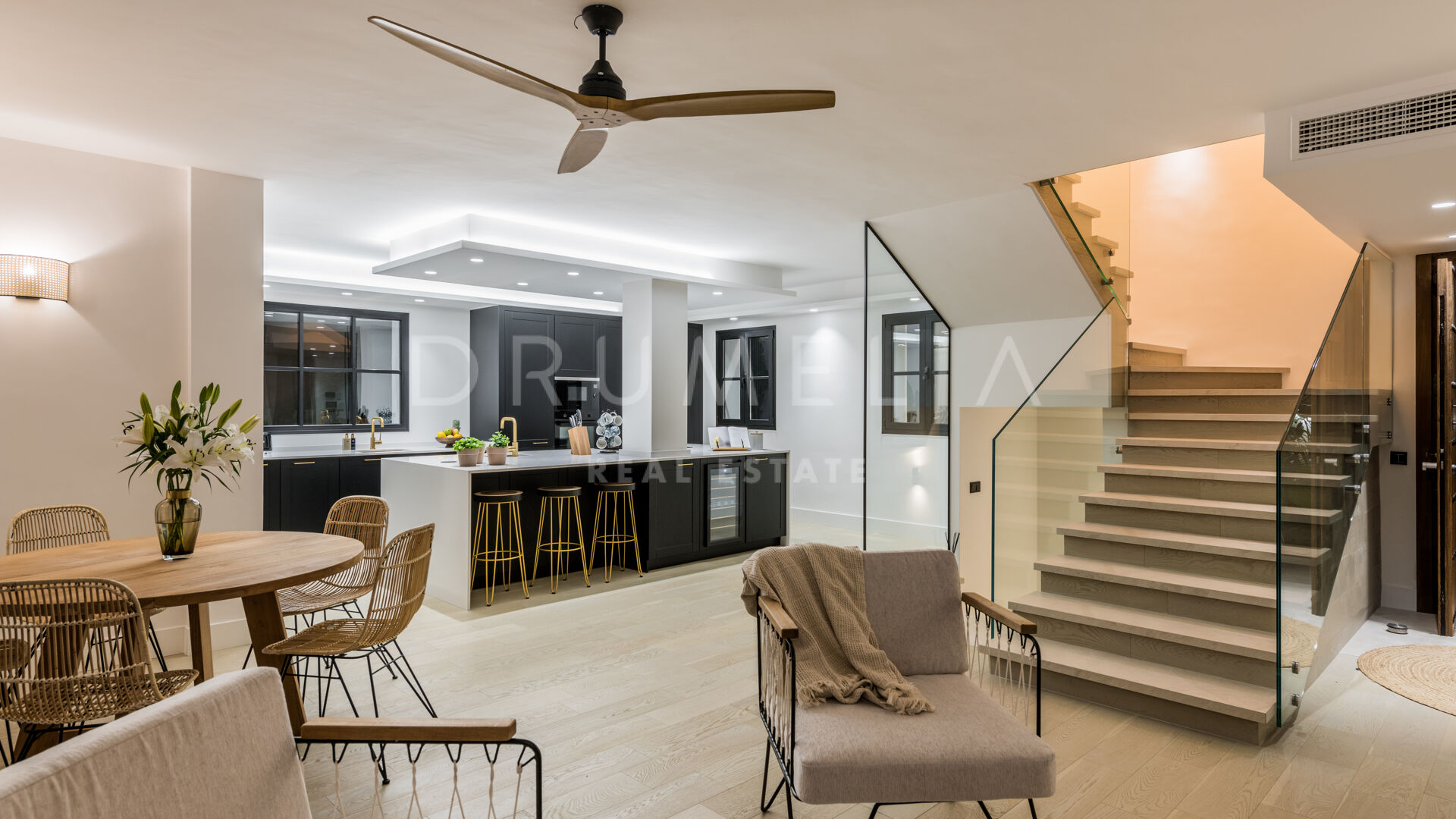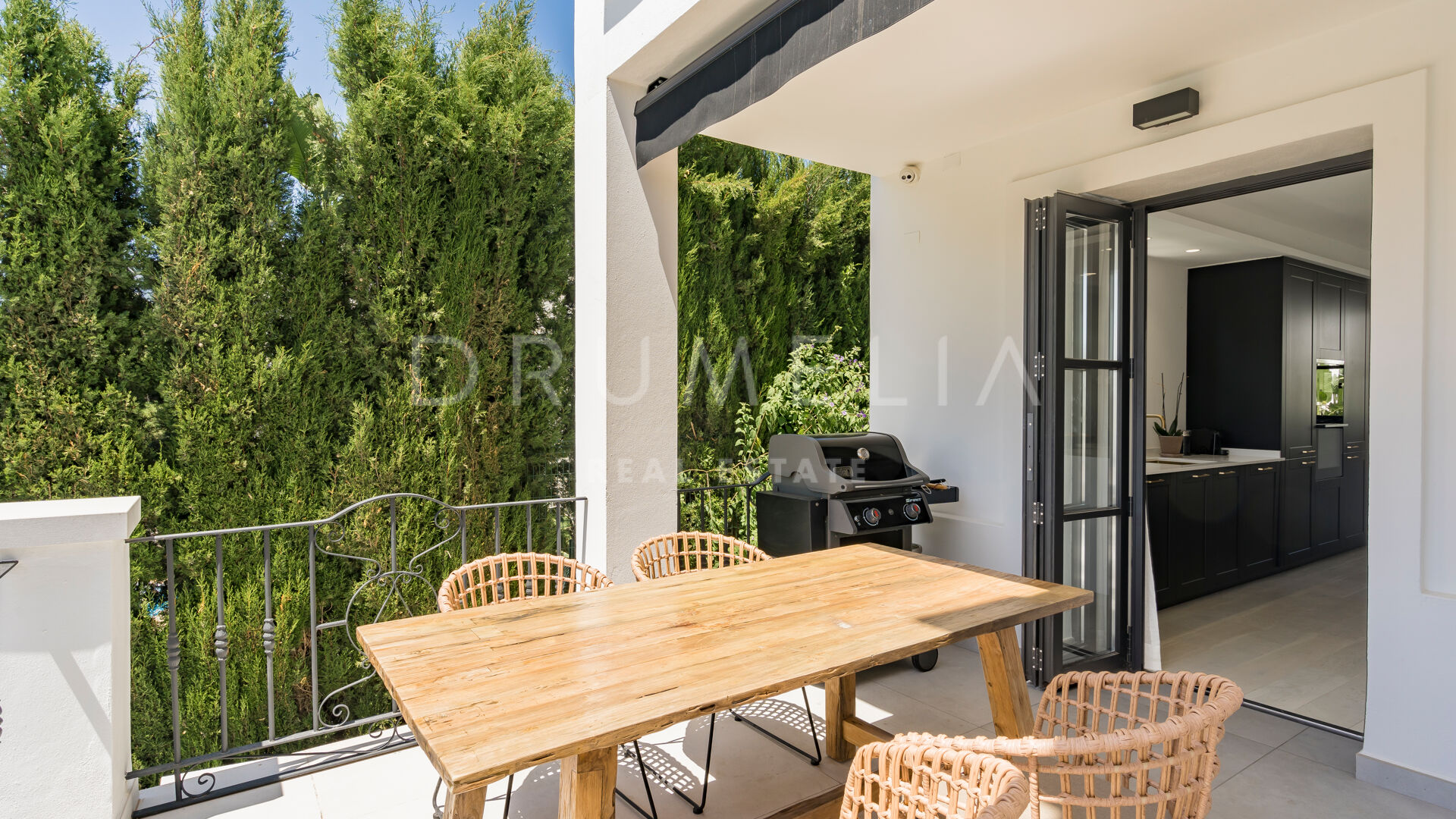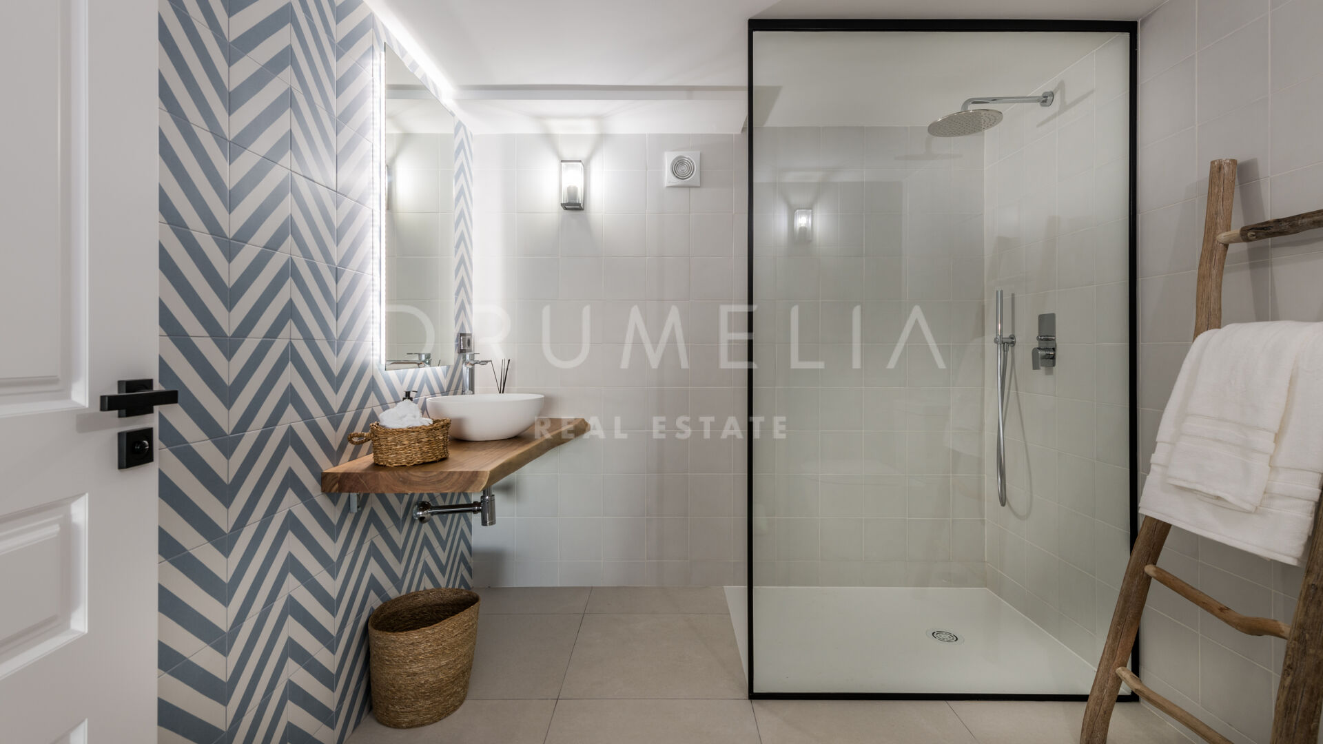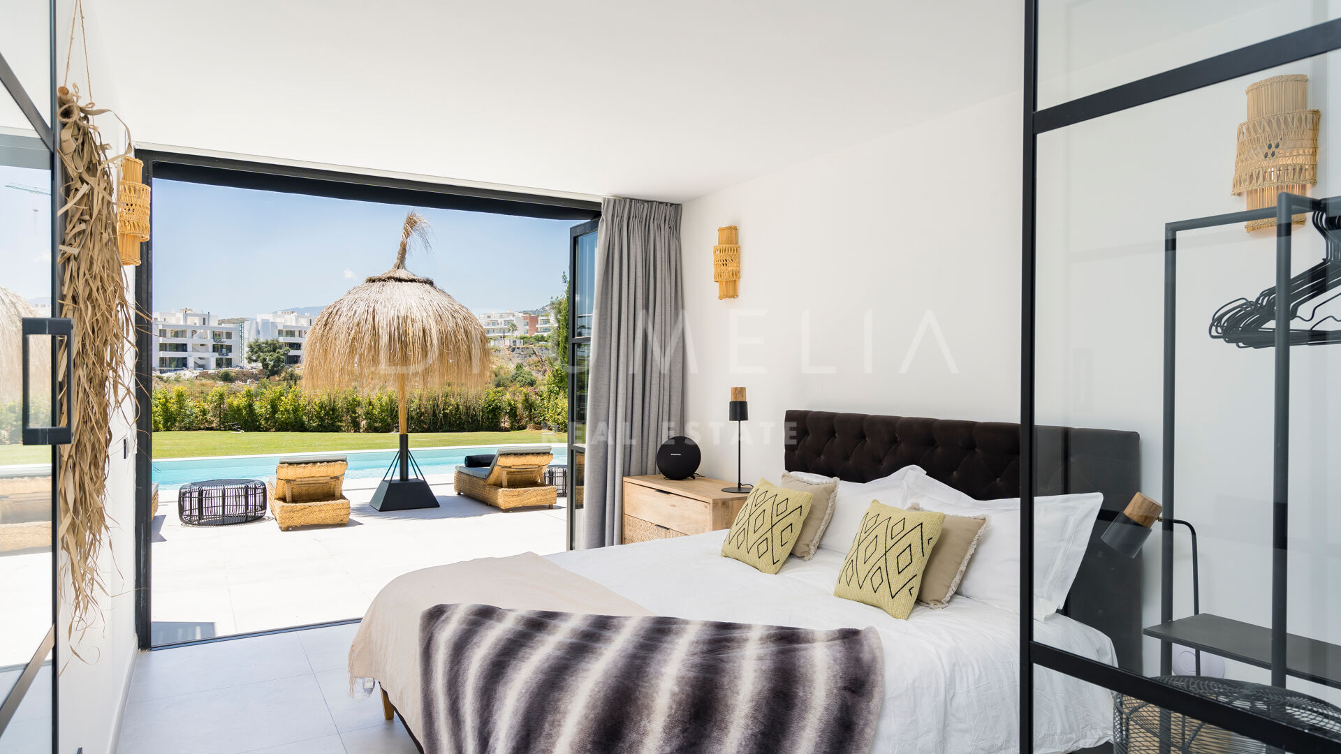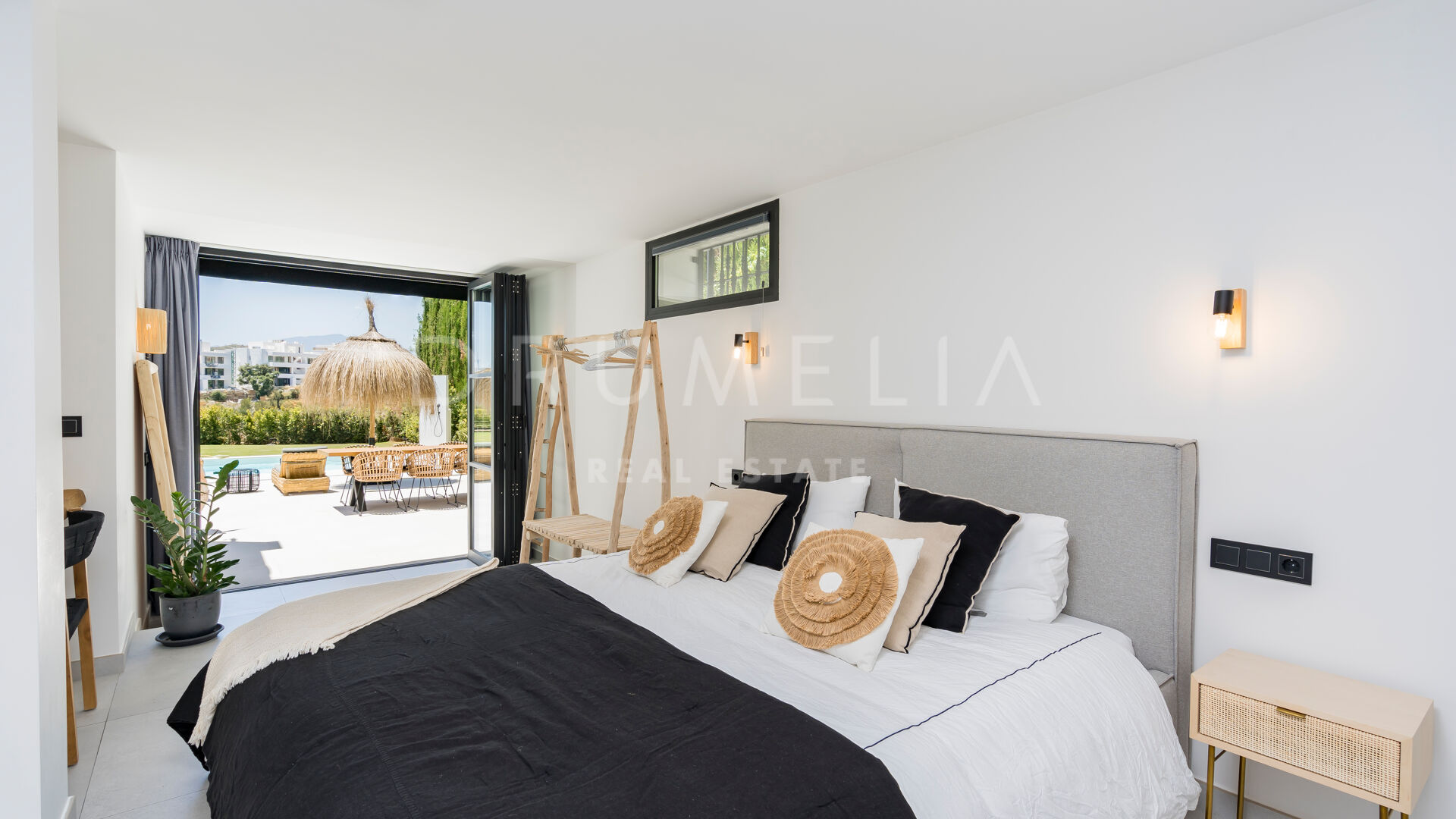 Окруженный гольф-полями, красивой природой и элитными объектами недвижимости Бенахависа, элегантный дом с 6 спальнями площадью 420 м² с участком 941 м² сочетает скандинавскую функциональность, шик современных элементов и шарм средиземноморских и этнических черт, украшающих как его архитектуру, так и интерьер. Эта потрясающая вилла была недавно полностью отремонтирована в соответствии с самыми высокими стандартами роскоши. Она предлагает просторные, светлые и открытые помещения гостиной и столовой, которые соединяются с внешней территорией участка и террасами. Совершенно новая современная кухня выполнена в модном стиле минимализм; новыми также являются шкафы, двери и тренажерный зал, полностью обновлены 6 современных ванных комнат. 6 безмятежных и уютных спален выполнены в стиле Нордик и могут похвастаться стильной мебелью и красивыми постельными принадлежностями нейтральной палитры.