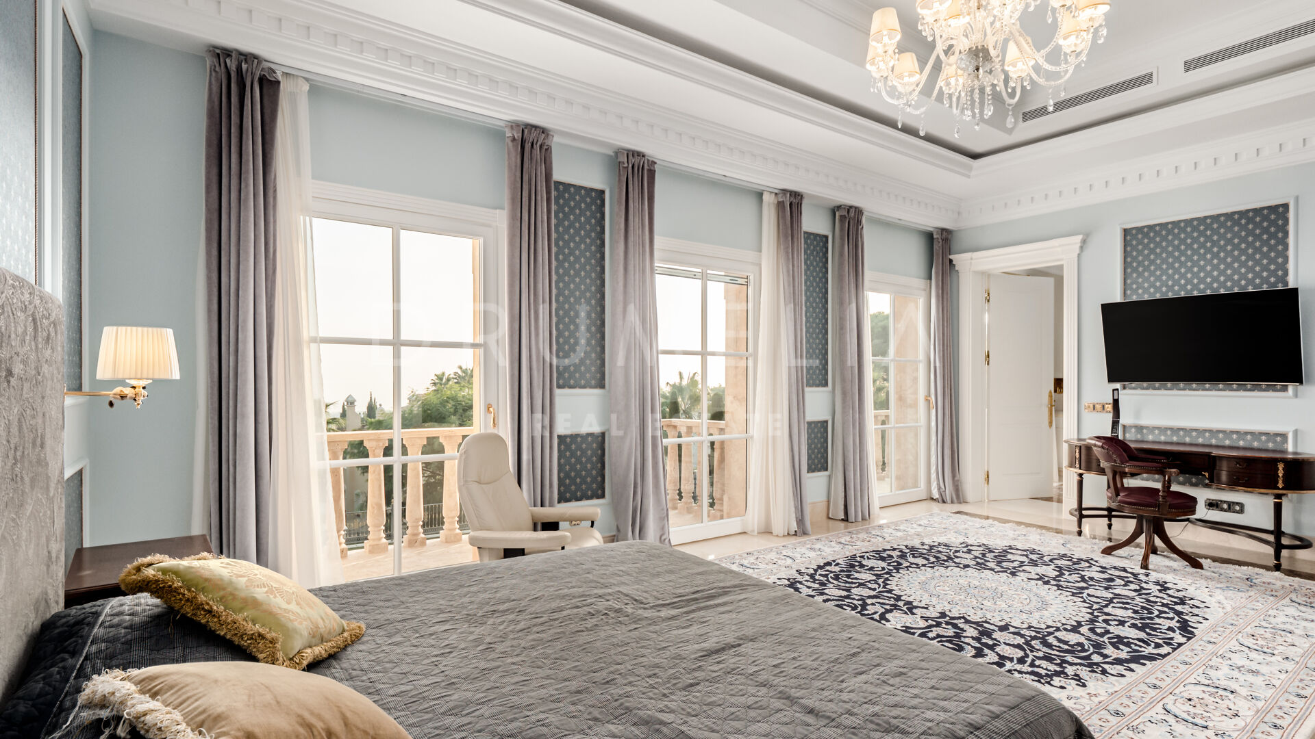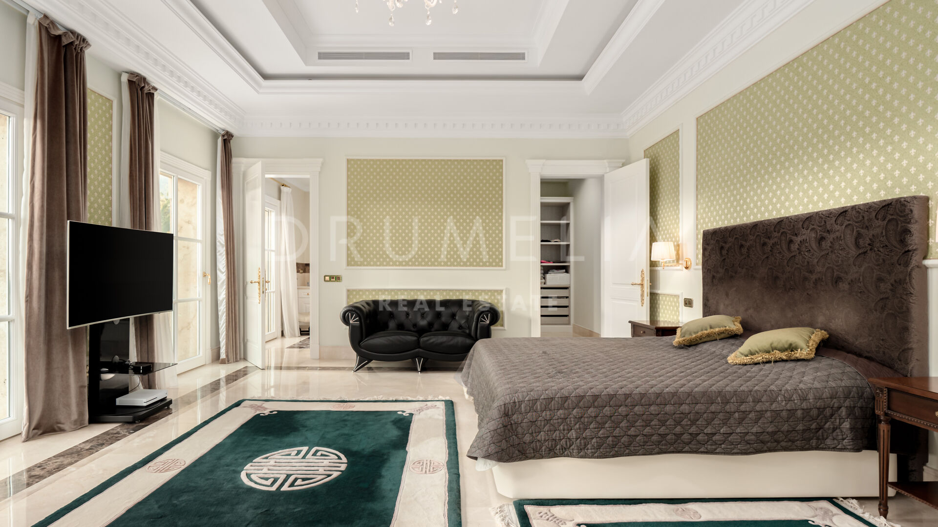 Как только вы ступите на порог главного входа, эта трехуровневая вилла площадью 2.009 м2 на участке 4.000 м2 поразит вас своими невероятными деталями. Ориентация на юг идеально подходит для того, чтобы максимально использовать естественное освещение. Прихожая приковывает взгляд благодаря высококлассному мрамору, роскошной лестнице и двойной высоты потолку. Среди наиболее примечательных особенностей виллы – гостиная с огромными окнами, позволяющими наслаждаться чудесными видами, традиционного стиля кухня, оборудованная лучшей техникой, замечательные террасы. В доме имеется 7 спален, все с собственными ванными комнатами, и 2 гостевых туалета. На цокольном этаже расположены кинозал, тренажерный зал и гараж на 8 автомобилей.