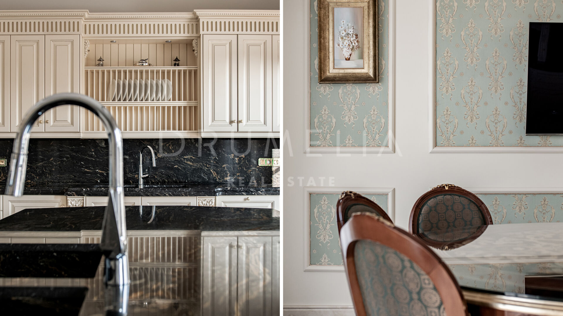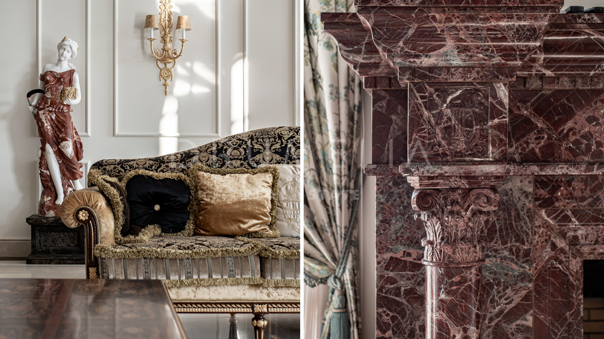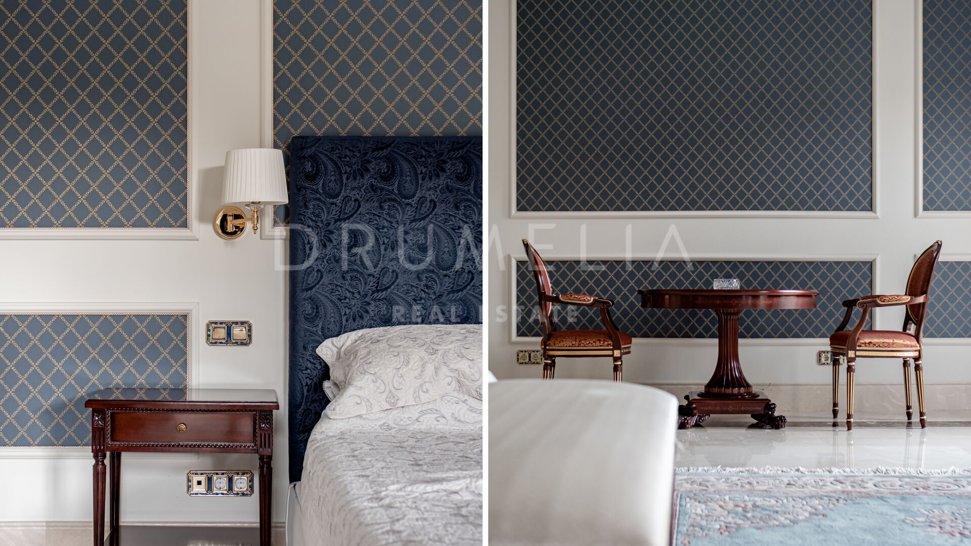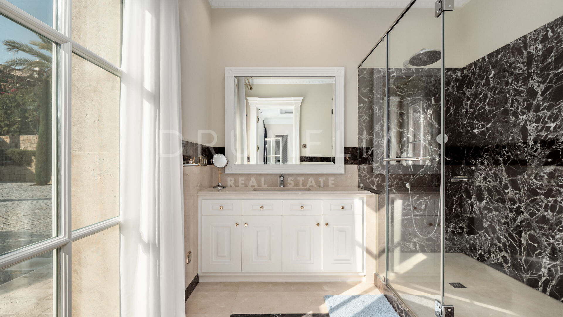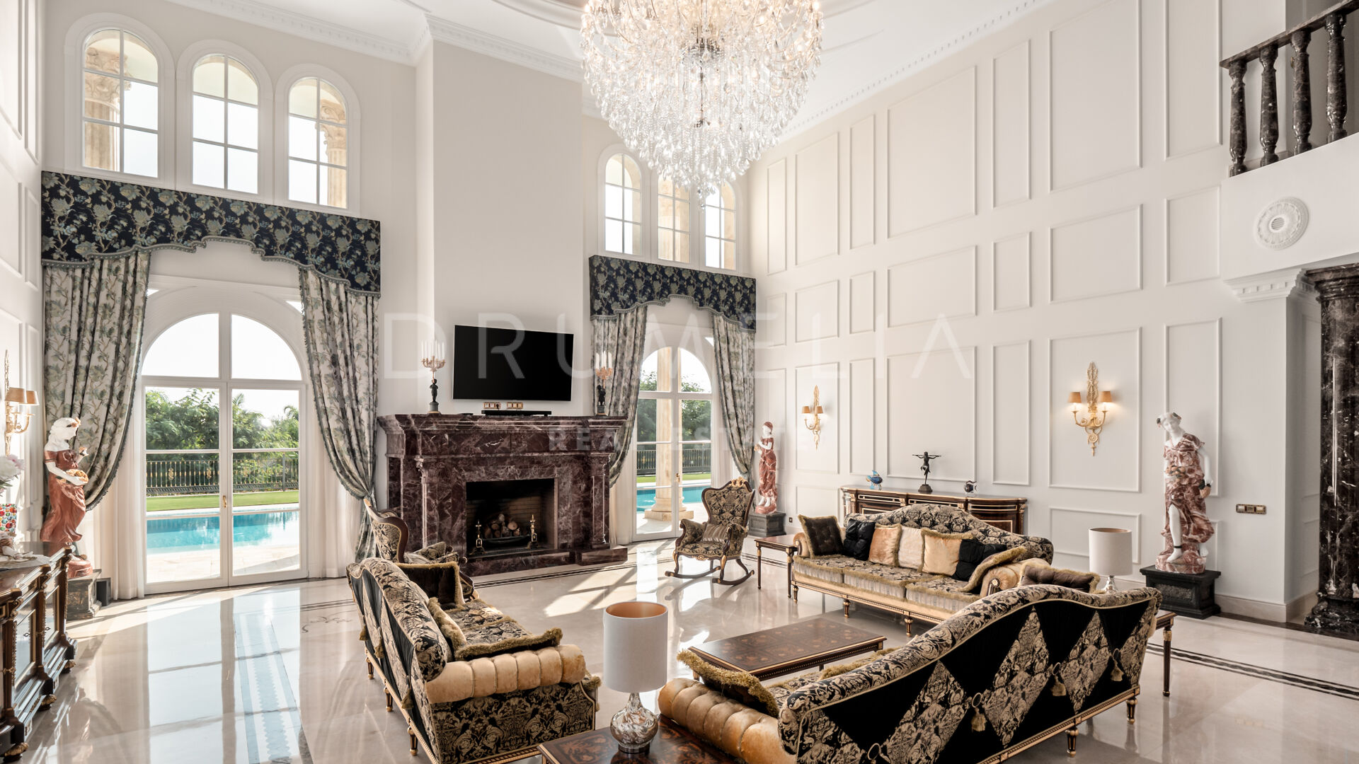 Роскошь и средиземноморский образ жизни ждут резидентов и за пределами дома, на територии. На участке расположен олимпийский бассейн, окруженный красивой мраморной палубой, которая идеально сочетается с внешней архитектурой. Экзотический сад окружает бассейн и подчеркивает стиль этой недвижимости.