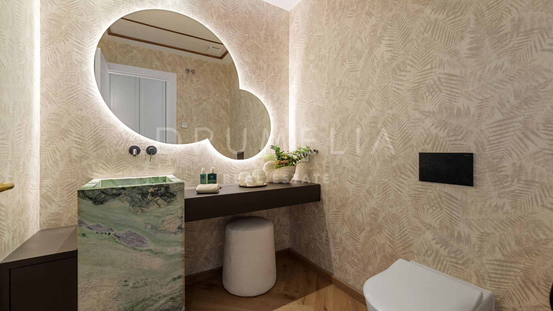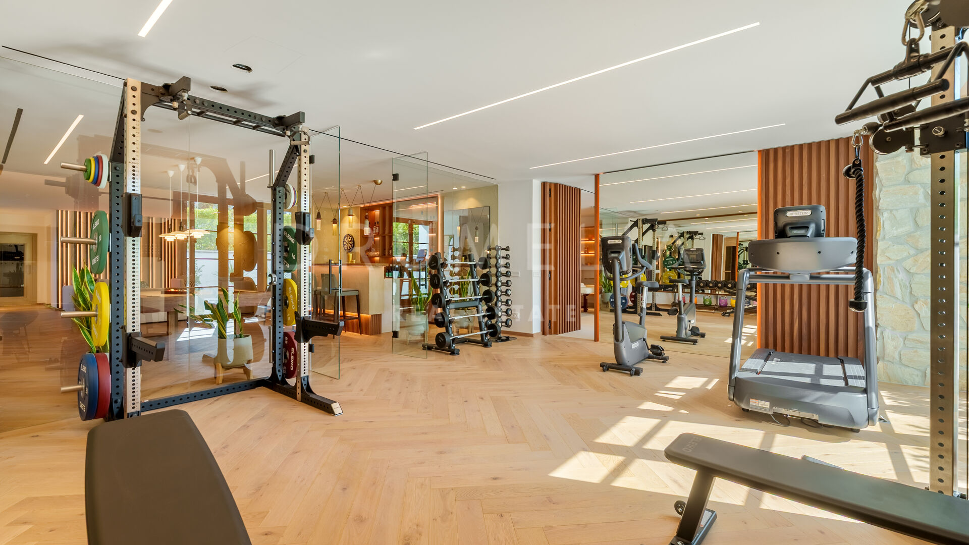 Вилла спроектирована с учётом элегантности и комфорта: в доме 5 просторных спален с ванными комнатами, включая великолепный мастер-сьют с собственной террасой, выходящей на юг. Светлые гостиные с камином плавно переходят в современную кухню и столовую. Среди дополнительных преимуществ — винный погреб, комната для развлечений с бильярдом и ТВ-зоной, частный спортзал, массажная комната, три гостевых санузла, большая прачечная и кладовая, а также недавно установленный частный лифт для максимального удобства.