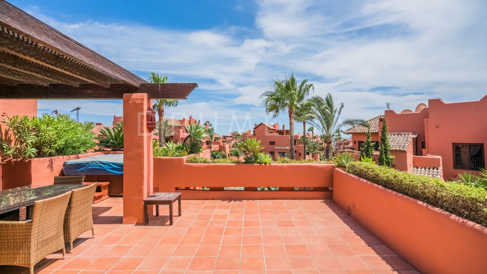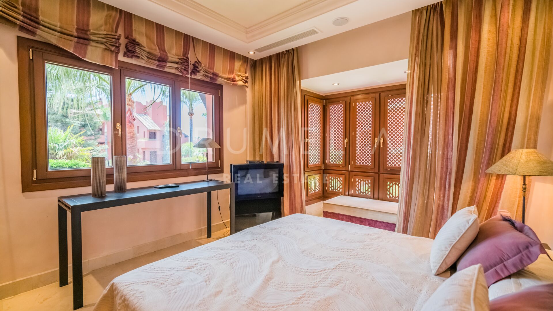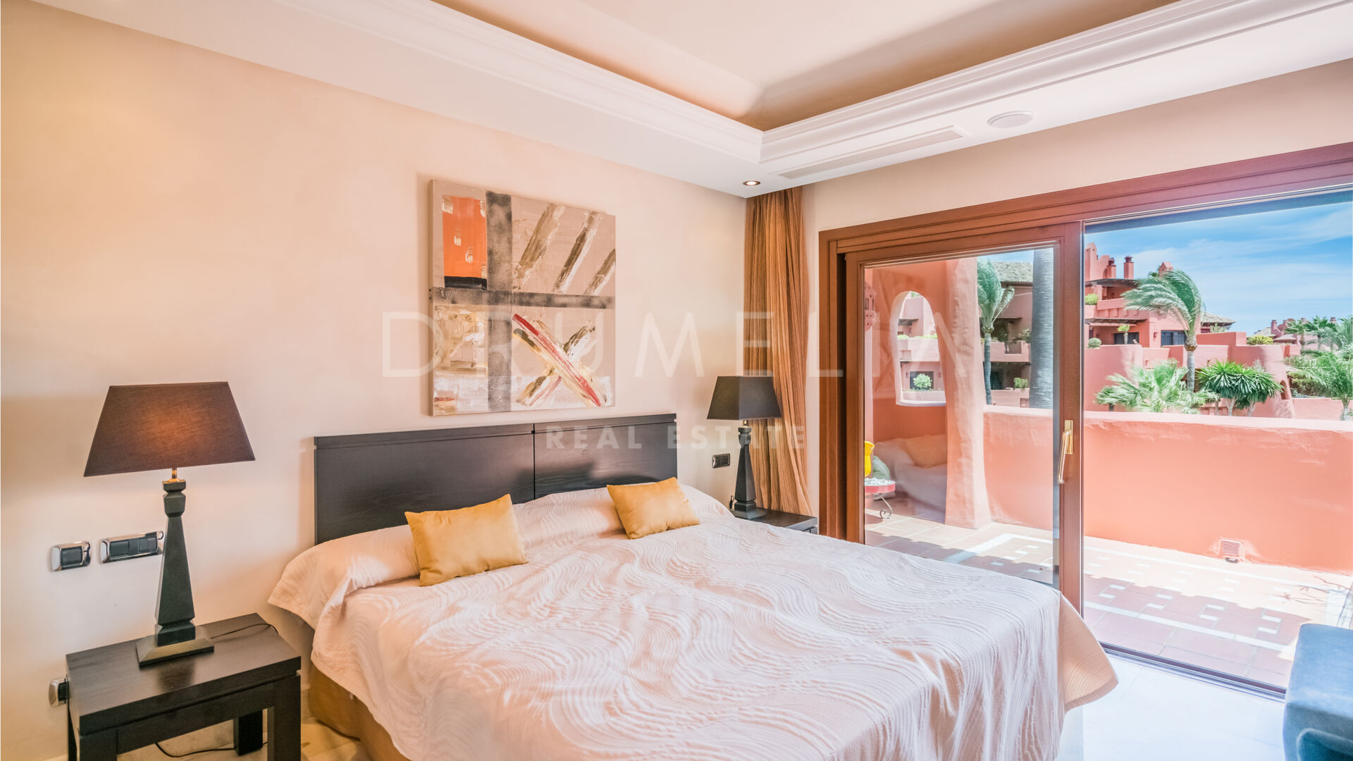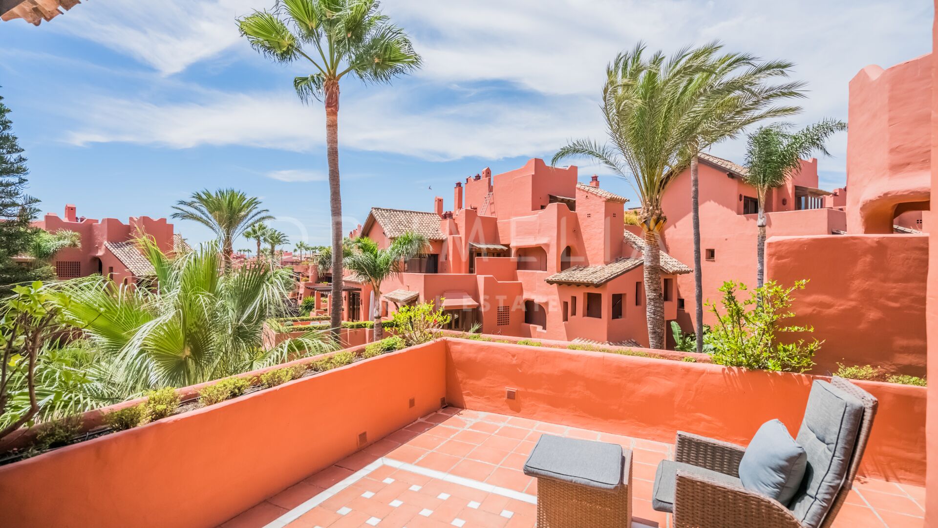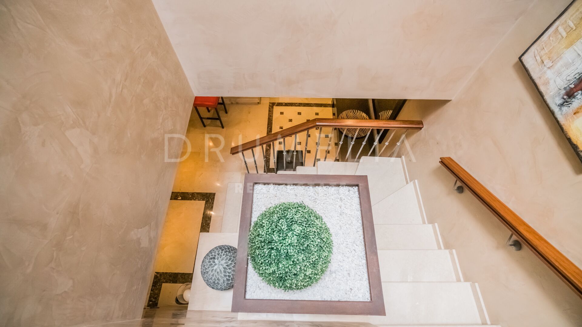 Необыкновенной красоты окружающие пейзажи, расслабляющая атмосфера и удобства класса «люкс» обеспечат эксклюзивный образ жизни. Светлые и солнечные 2-уровневые апартаменты площадью 209м² с террасами 183м² смотрят на восток и любуются живописными умиротворяющими видами на пышные субтропические сады одной из самых эффектных и изысканных урбанизаций побережья с впечатляющей андалузской архитектурой, сложившейся под влиянием богатого наследия Марокко – архитектуры берберской крепости «касба».