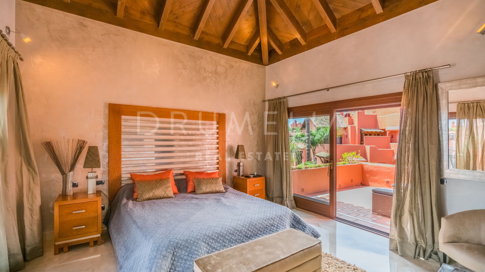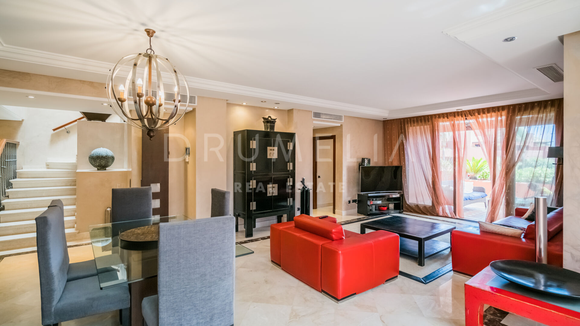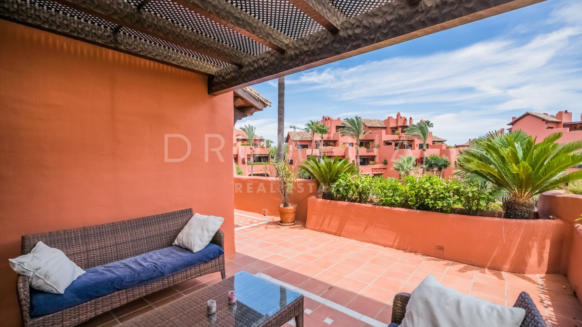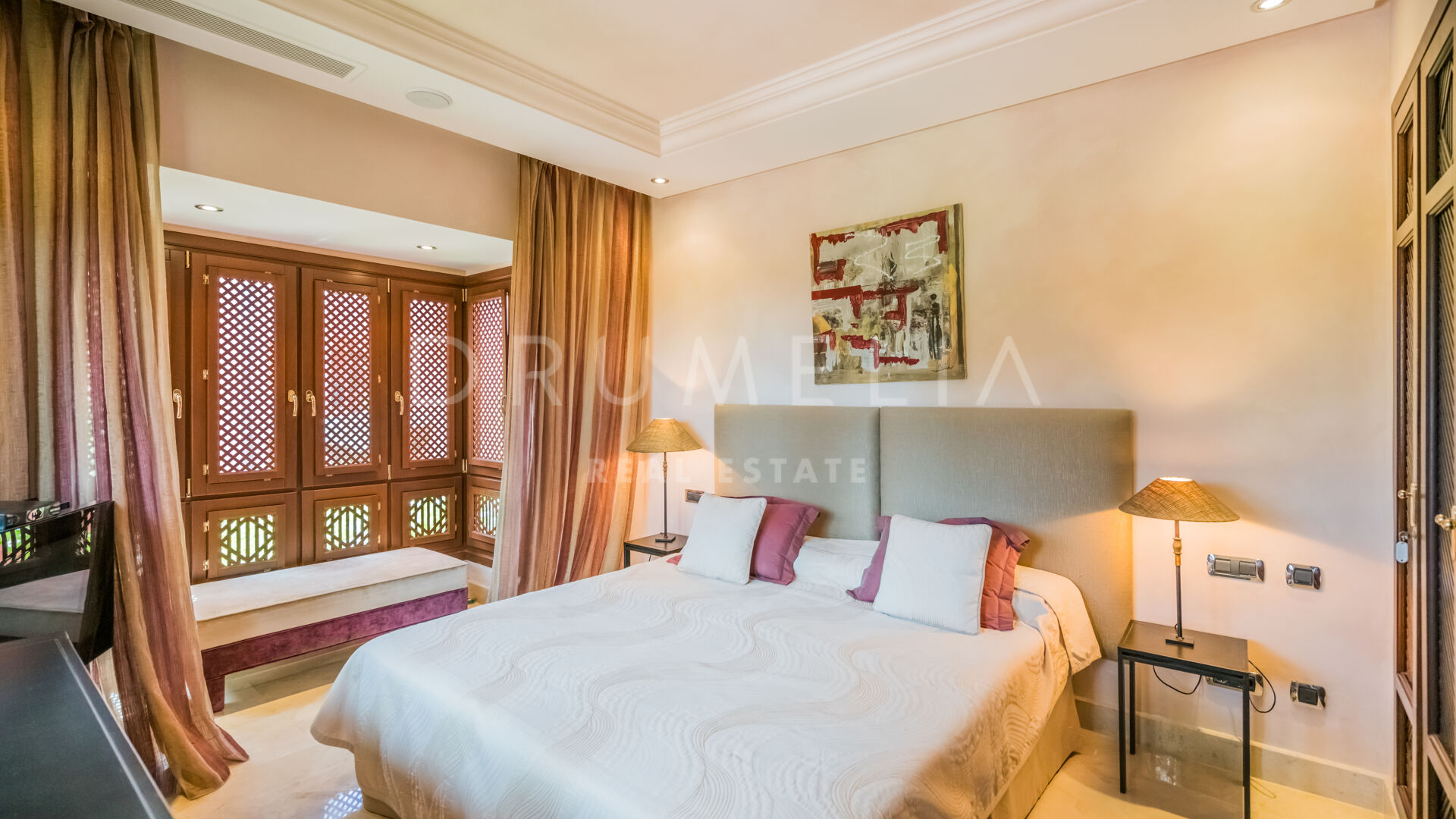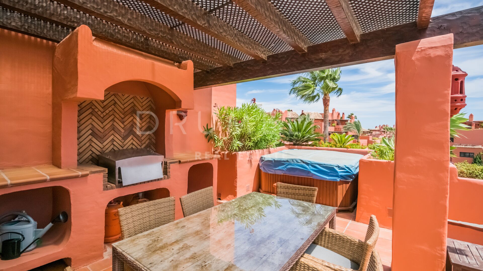 Необыкновенной красоты окружающие пейзажи, расслабляющая атмосфера и удобства класса «люкс» обеспечат эксклюзивный образ жизни. Светлые и солнечные 2-уровневые апартаменты площадью 209м² с террасами 183м² смотрят на восток и любуются живописными умиротворяющими видами на пышные субтропические сады одной из самых эффектных и изысканных урбанизаций побережья с впечатляющей андалузской архитектурой, сложившейся под влиянием богатого наследия Марокко – архитектуры берберской крепости «касба».