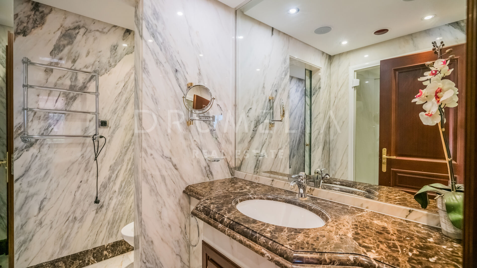 Только лучшие материалы использованы для красиво оформленного и превосходно оборудованного пентхауса, где каждая деталь – высокого класса и отменного качества. Он предлагает открытого плана гостиную, грамотно зонированную на обеденный зал и лаунж, и ведущую на террасу с местами для отдыха и обедов аль фреско. Функциональная элегантная кухня с барной стойкой/местом для завтрака полностью оборудована встроенной высококачественной техникой и деревянной кухонной мебелью, живой цвет которой прекрасно сочетается с древесными тонами столешницы из натурального камня и декоративными элементами из дерева. Две спальни имеют большие встроенные шкафы, а третья, чудесный Мастер-люкс с выходом на террасу – отдельную гардеробную и джакузи. Три ванные комнаты классически роскошны – цветной мрамор, двойные раковины, большие зеркала, элитная сантехника. Изумительные террасы с джакузи, солярием, местами для отдыха, барбекю и обедов аль фреско – идеальное место, чтобы принять гостей, развлечься или расслабиться. Особый образ жизни с романтическими закатами, модными вечеринками, дружескими и семейными обедами на свежем воздухе, «йогой до завтрака» и «шампанским в джакузи под звездами» здесь гарантирован!
