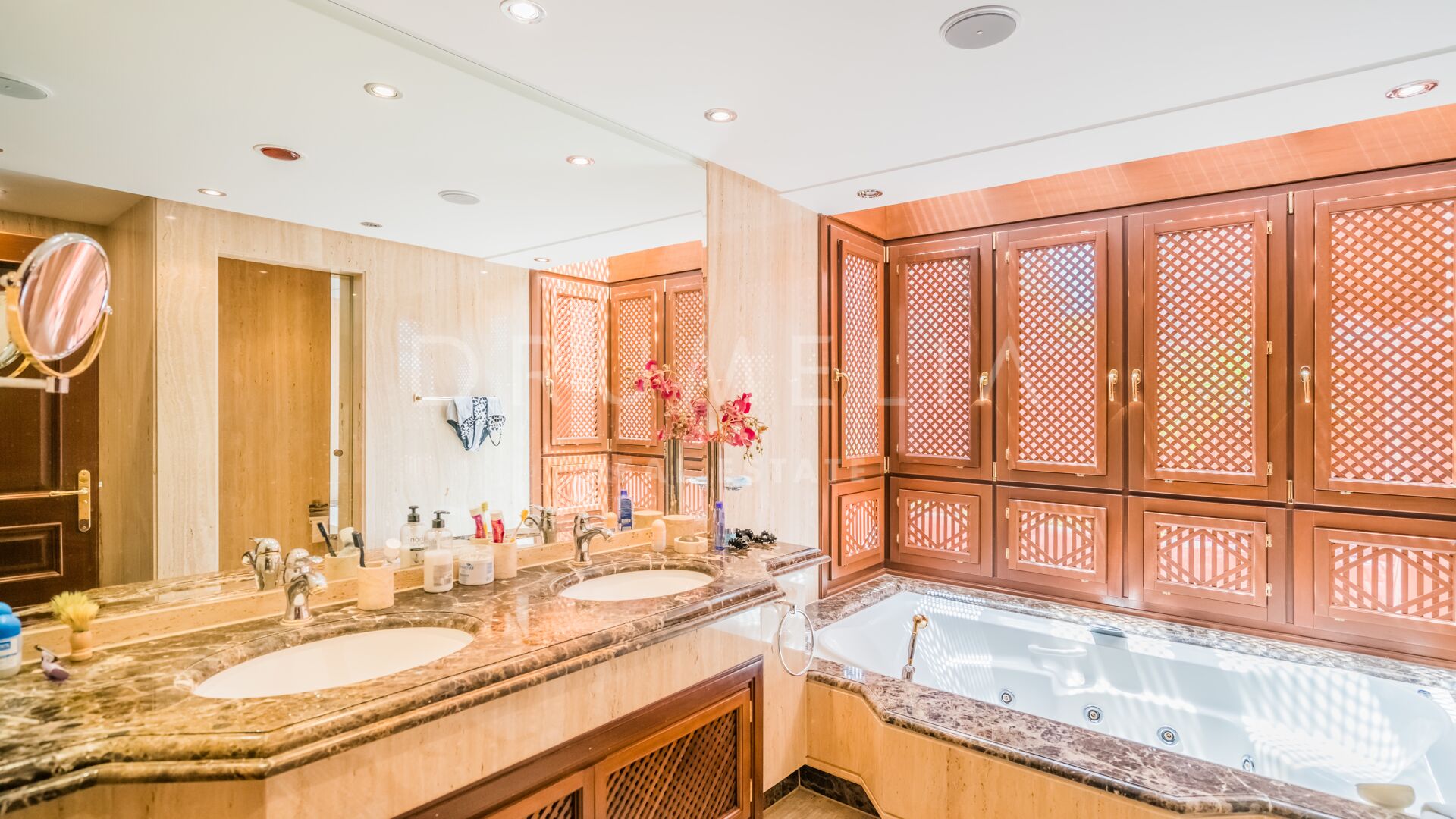 Местоположение по-настоящему замечательно – между Эстепоной и портом Банус (Puerto Banus), на модной и оживленной Новой Золотой Миле, с привилегированным положением в защищенной бухте, прямо на морском берегу и с величественным горным хребтом Сьерра-Бермеха на заднем плане.