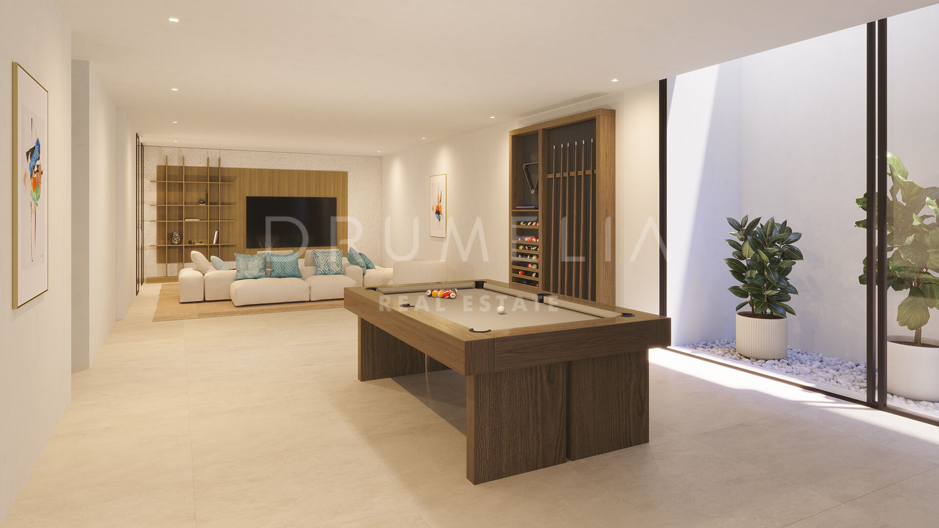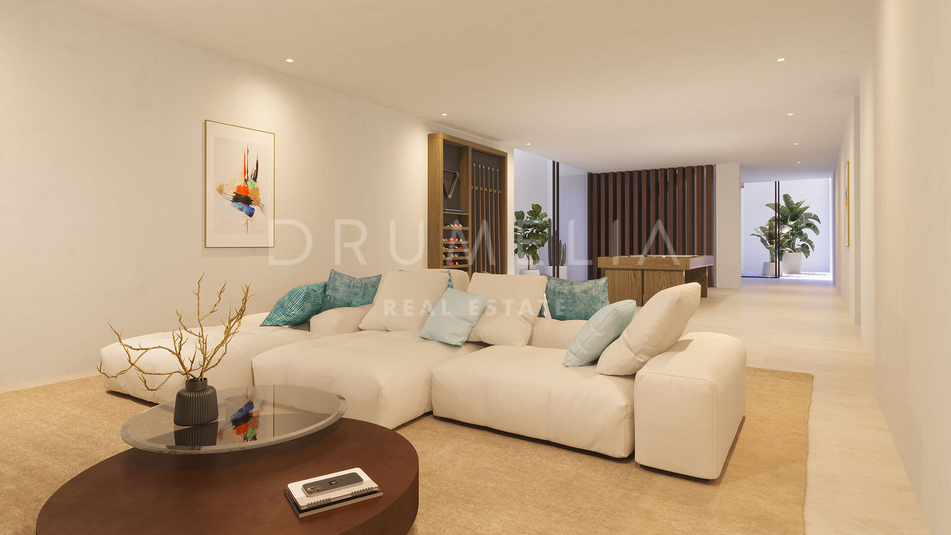 Das Erdgeschoss verfügt über ein offenes Wohnzimmer mit integrierter Küche, die nahtlos auf die Terrassen und den Garten übergeht, sowie ein Gästezimmer mit eigenem Bad. Im Obergeschoss befindet sich die Mastersuite mit privater Terrasse und der Option auf einen Whirlpool, sowie ein weiteres Schlafzimmer mit eigenem Bad und zwei privaten Terrassen. Käufer haben die Möglichkeit, ein Untergeschoss mit bis zu 188 m² zusätzlicher Fläche zu gestalten – ideal für Fitnessraum, Spa, Heimkino, Weinkeller oder zusätzliche Schlafzimmer.