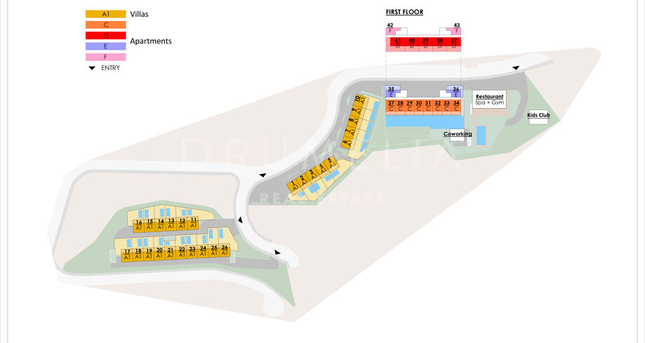 Die Wohneinheiten bieten 1 bis 6 Schlafzimmer und zeichnen sich durch eine zeitgemäße Architektur mit Grundrissen aus, die auf maximale Lichtverhältnisse und Funktionalität ausgelegt sind. Villen und Apartments verfügen über moderne Ausstattungsmerkmale und bieten ein hochwertiges, komfortables Wohnambiente. Zur Anlage gehören großzügige Gemeinschaftsbereiche mit angelegten Grünflächen, Swimmingpools, Fitnessbereich, Spa, Coworking-Zonen und Restaurant, die sowohl den Alltag als auch längere Aufenthalte unterstützen.