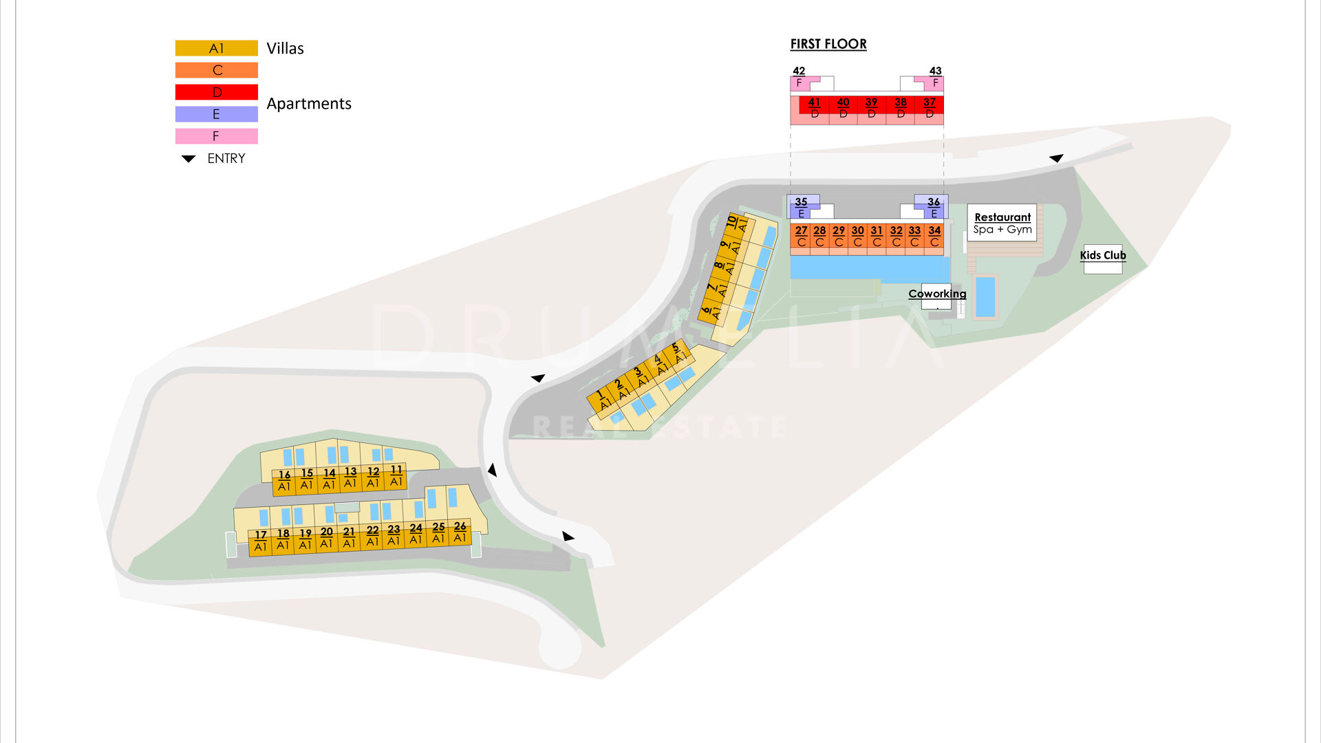 The homes range from 1 to 6 bedrooms and feature contemporary architecture with layouts designed to maximise natural light and functionality. Both villas and apartments are equipped with modern amenities, creating a refined and comfortable living environment. The development offers extensive communal facilities, including landscaped green areas, swimming pools, a gym, spa, coworking spaces, and an on-site restaurant, supporting both everyday living and longer stays.