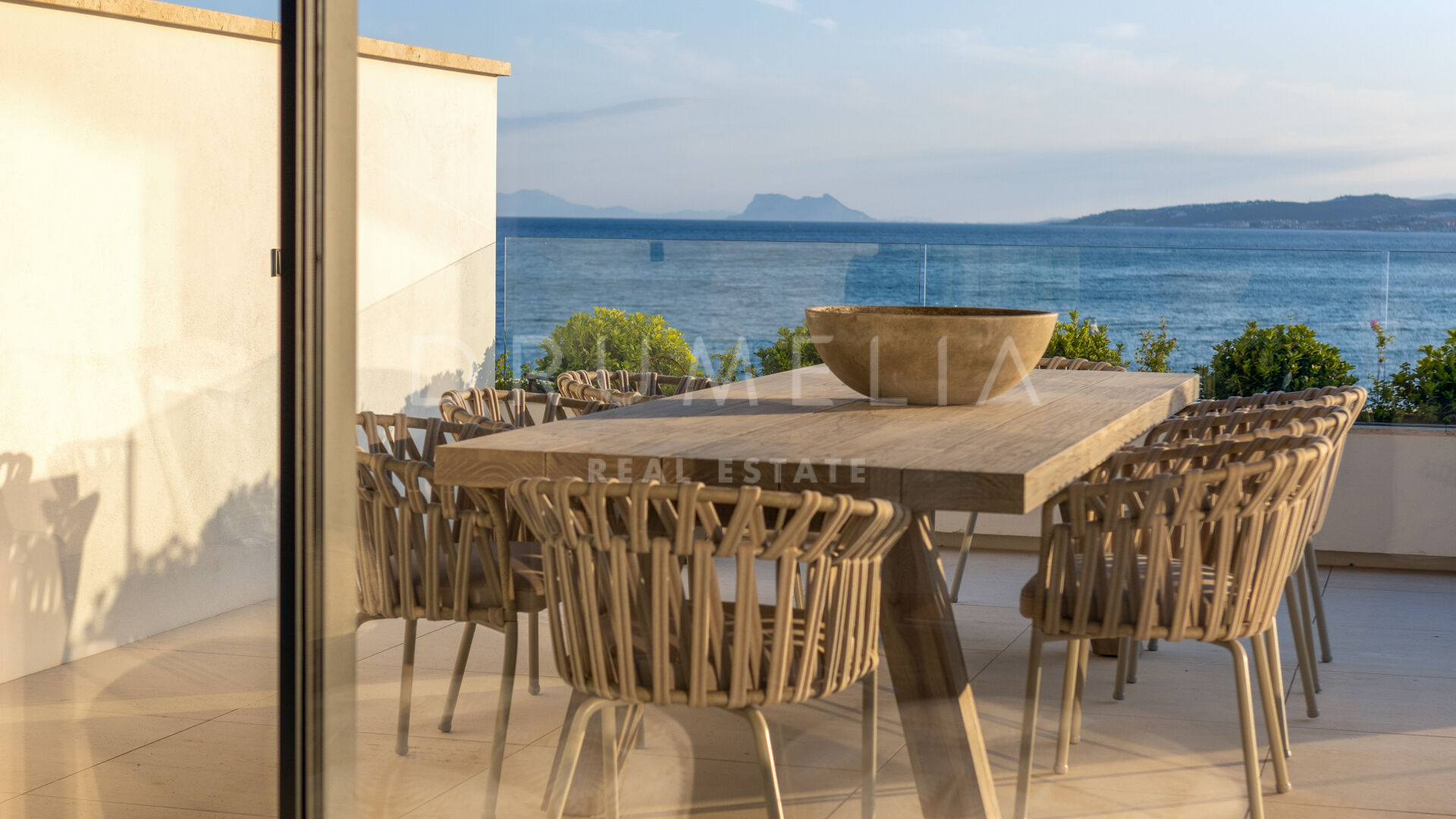 Expansive floor-to-ceiling windows flood each space with natural light, highlighting interiors finished with marble, wood, and other premium materials. Large terraces, private pools, and panoramic views of the Mediterranean create a seamless connection between indoor elegance and outdoor serenity.