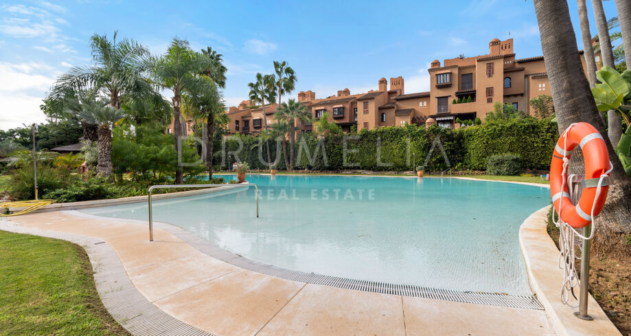 Alhambra del Golf to zamknięte i doskonale utrzymane osiedle znane z bujnych tropikalnych ogrodów, dużego basenu i spokojnej atmosfery. Położone we wschodniej Esteponie, znajduje się w niewielkiej odległości od plaży oraz w pobliżu znanych pól golfowych, szkół międzynarodowych, restauracji i wszystkich udogodnień. To doskonała propozycja dla osób szukających spokojnego domu lub pewnej inwestycji na Costa del Sol, zaledwie kilka minut jazdy od Marbelli i Puerto Banús.