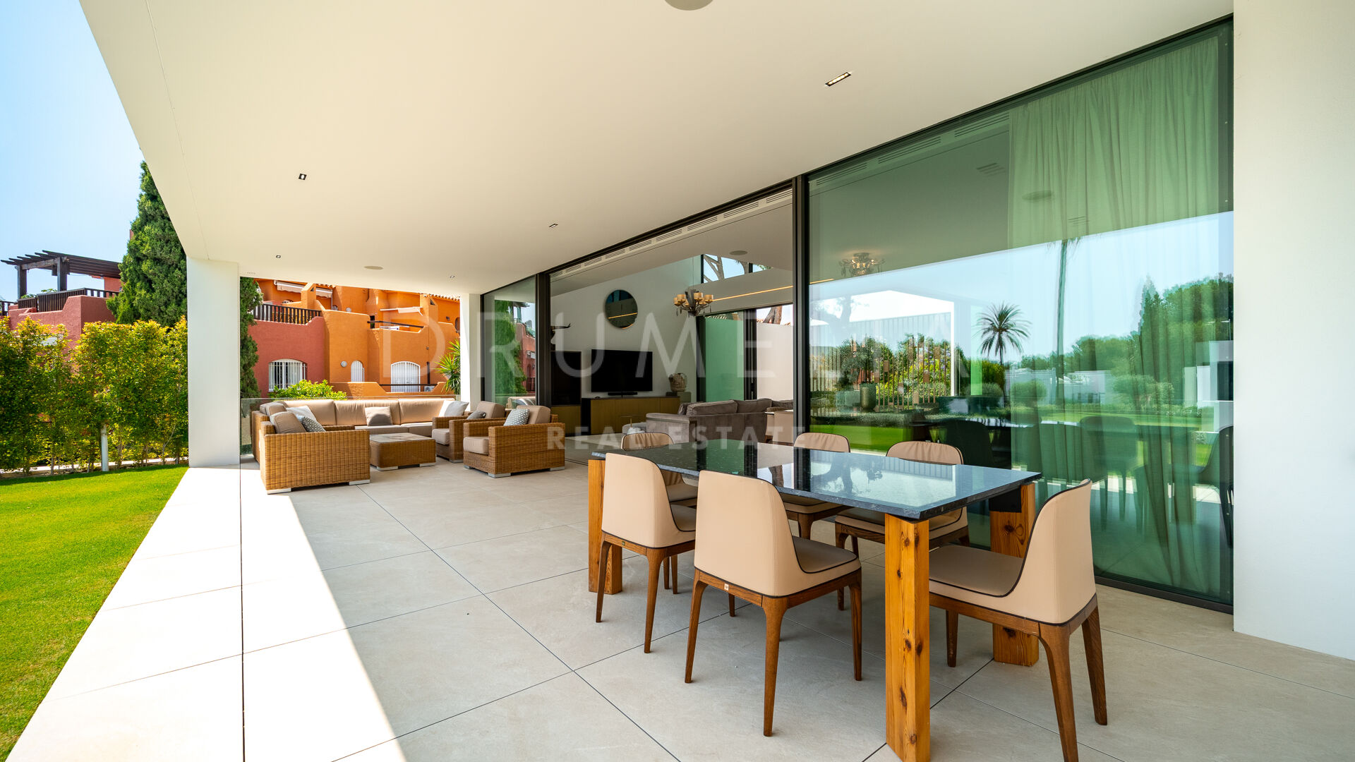 Ta elegancka willa w zabudowie bliźniaczej o współczesnym stylu położona jest w ekskluzywnej inwestycji Vilas 6, w Atalaya Río Verde, jednej z najbardziej ugruntowanych i poszukiwanych dzielnic mieszkalnych Nueva Andalucía. Lokalizacja łączy prywatność z wygodą, zaledwie kilka minut od renomowanych pól golfowych, piaszczystych plaż, restauracji wyróżnionych gwiazdkami Michelin, Puerto Banús oraz Aloha College, co czyni ją idealnym wyborem zarówno na stałe zamieszkanie, jak i drugi dom.