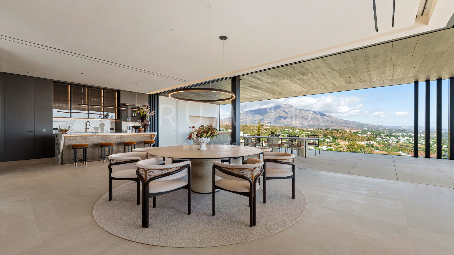 Położona na najwyższym punkcie El Herrojo Alto, jednej z najbardziej prestiżowych zamkniętych urbanizacji w Benahavís, ta nowo wybudowana rezydencja uosabia doskonałość architektury i nowoczesną elegancję. Willa zapewnia pełną prywatność oraz panoramiczne widoki na Morze Śródziemne, góry i dolinę La Quinta. Każdy detal został zaprojektowany tak, aby osiągnąć harmonię między nowoczesnym designem, naturalnymi materiałami i otoczeniem.