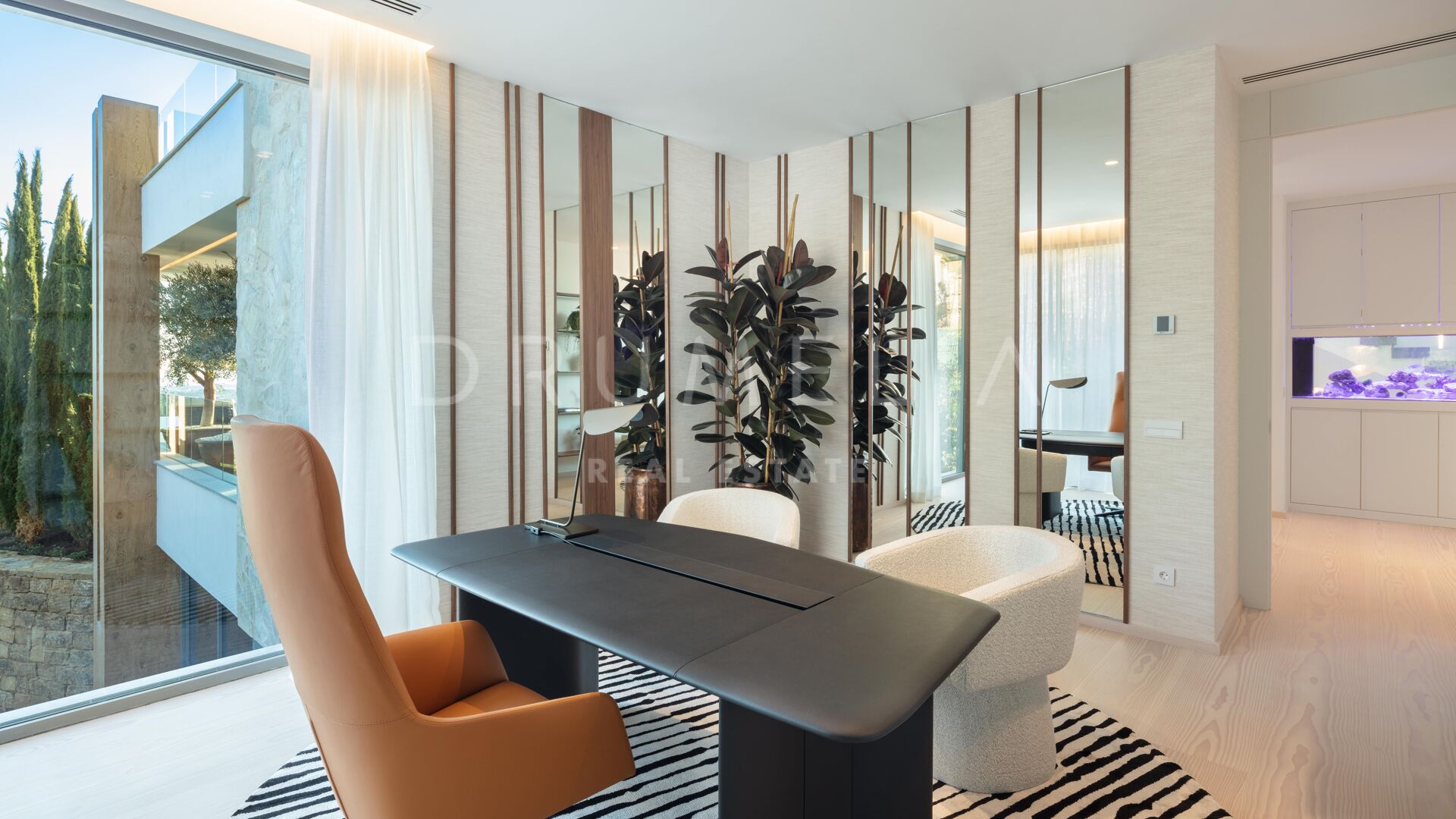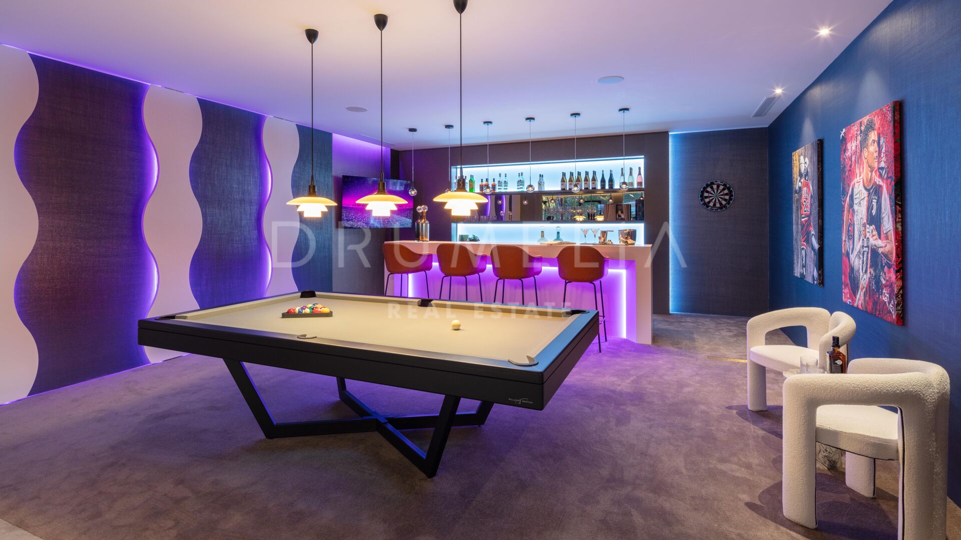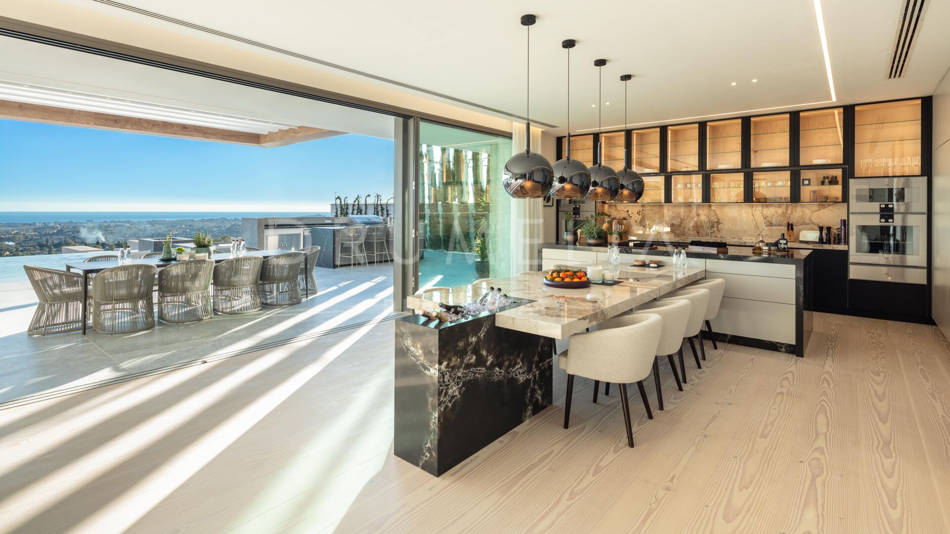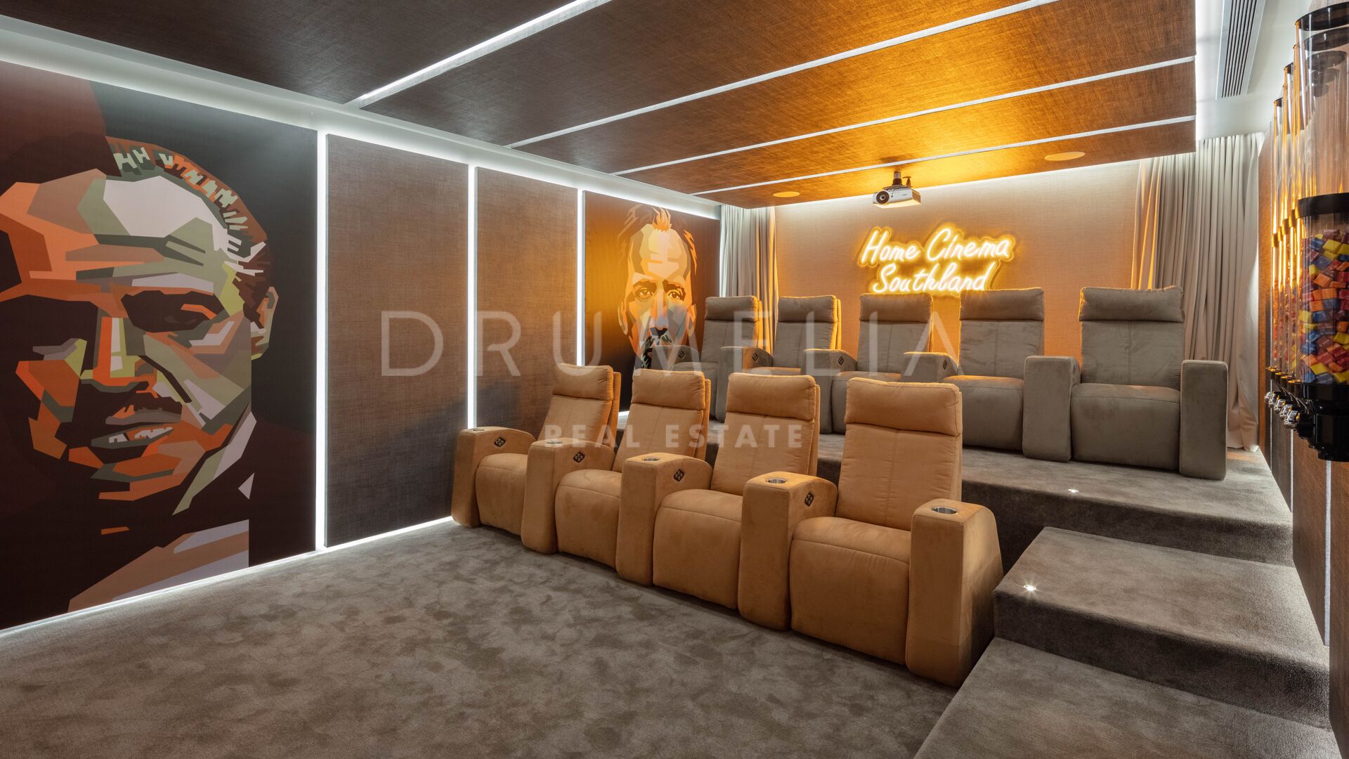 Ta nieruchomość, orientacja południe, posiada następujące udogodnienia: prywatny taras, salon, blisko do sklepów, blisko miasta, widok na morze, widok napobliskie tereny, officeroom, podgrzewane podlogi, system inteligentnego domu, pralnia, zadaszone tarasy, wbudowane szafy, ogrodzony kompleks mieszkalny, widok panoramiczny, sala kinowa, atrakcje w poblizu, klimatyzacja, piwnica na wino, w pelni umeblowane, kuchnia w pełni wyposażona, kominek, jacuzzi, sauna, golf w pobliżu, otwarty taras, piwnica, game room, panele sloneczne, drzwi szklane, drewniane podłogi, silownia, otwarta kuchnia, całkowicie nowe, stan bardzo dobry, jadalnia, grill, telefon i wc dla gości.