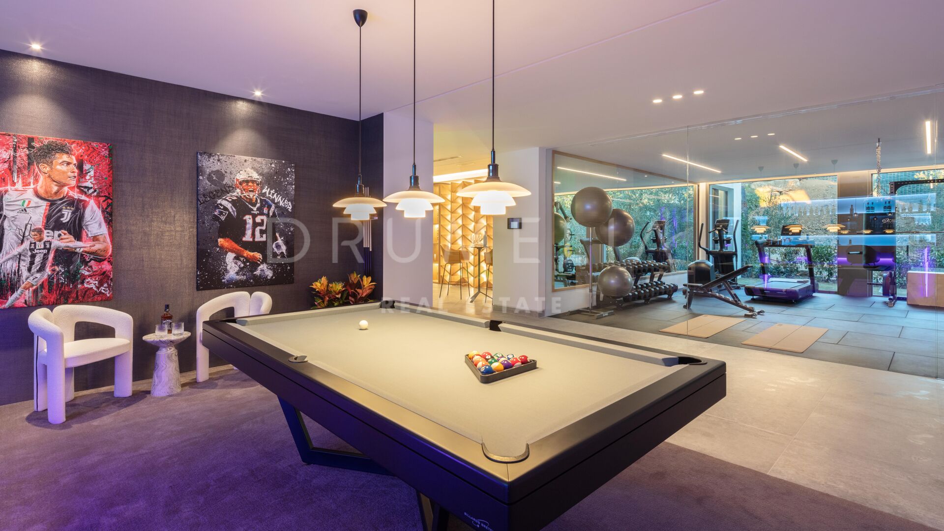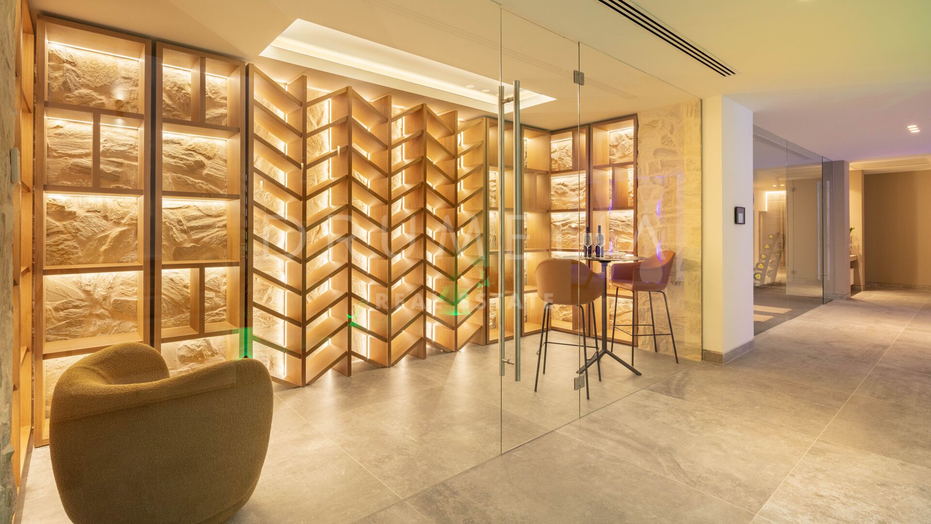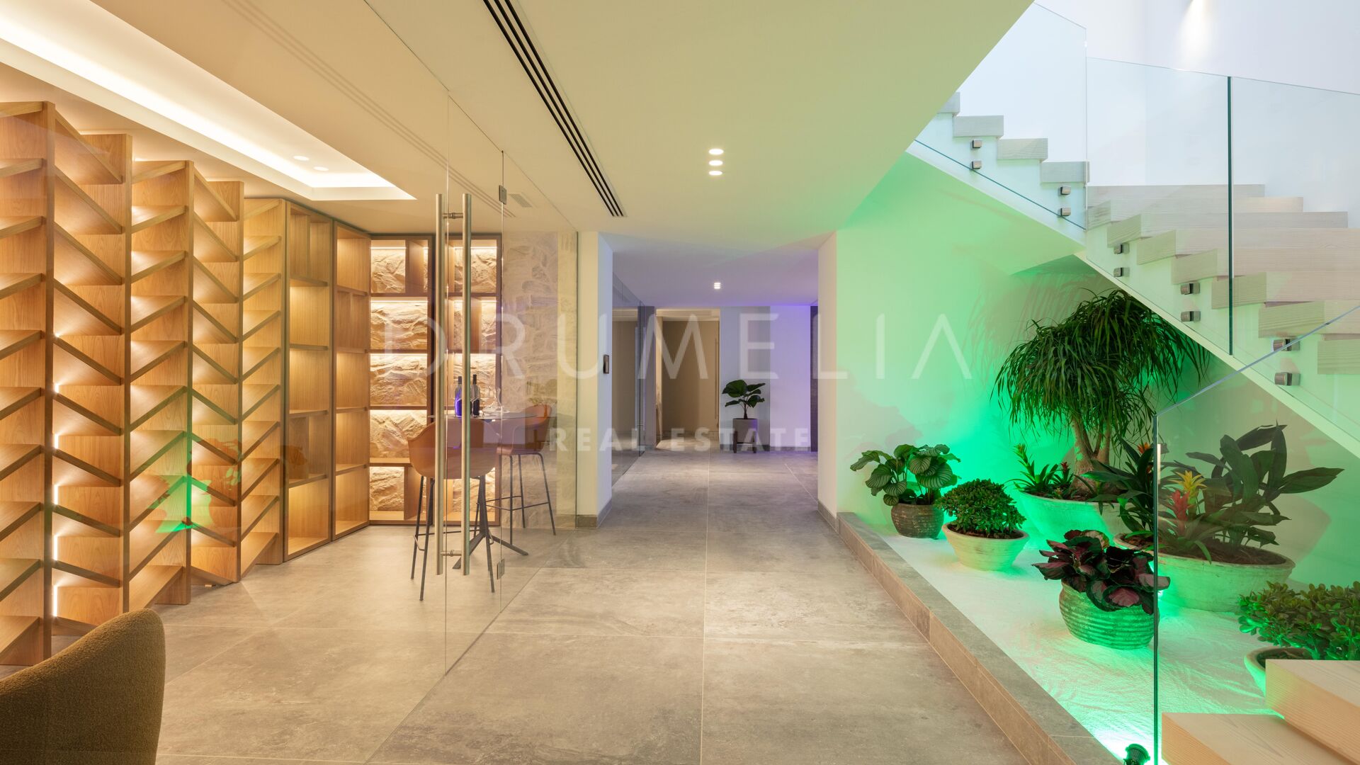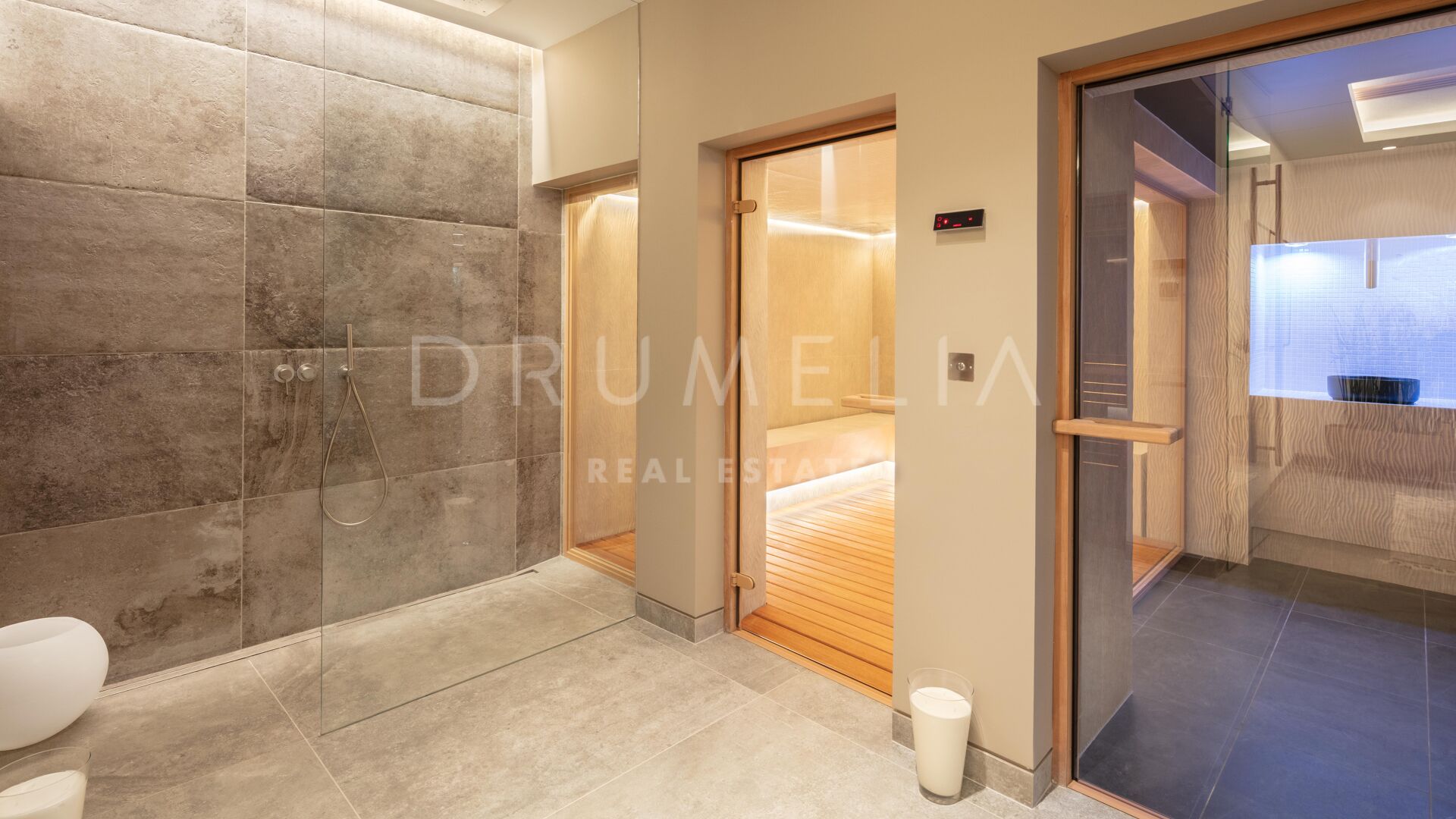 Ta nieruchomość, orientacja południe, posiada następujące udogodnienia: prywatny taras, salon, blisko do sklepów, blisko miasta, widok na morze, widok napobliskie tereny, officeroom, podgrzewane podlogi, system inteligentnego domu, pralnia, zadaszone tarasy, wbudowane szafy, ogrodzony kompleks mieszkalny, widok panoramiczny, sala kinowa, atrakcje w poblizu, klimatyzacja, piwnica na wino, w pelni umeblowane, kuchnia w pełni wyposażona, kominek, jacuzzi, sauna, golf w pobliżu, otwarty taras, piwnica, game room, panele sloneczne, drzwi szklane, drewniane podłogi, silownia, otwarta kuchnia, całkowicie nowe, stan bardzo dobry, jadalnia, grill, telefon i wc dla gości.