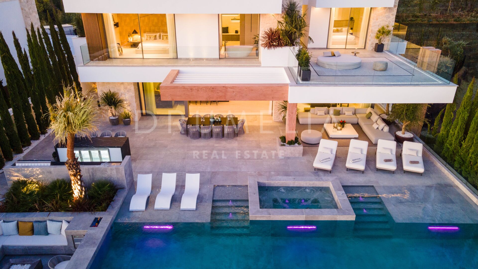 Willa na sprzedaż w El Herrojo, Benahavis z 5 sypialnie, 5 łazienki, 3 pokoje z łazienką, 2 toalety, wbudowany 2022 i posiada basen (wlasny), garaż (podjazd) i ogród (wlasny). Wymiary: 835m² wybudowano i 830m² działka.