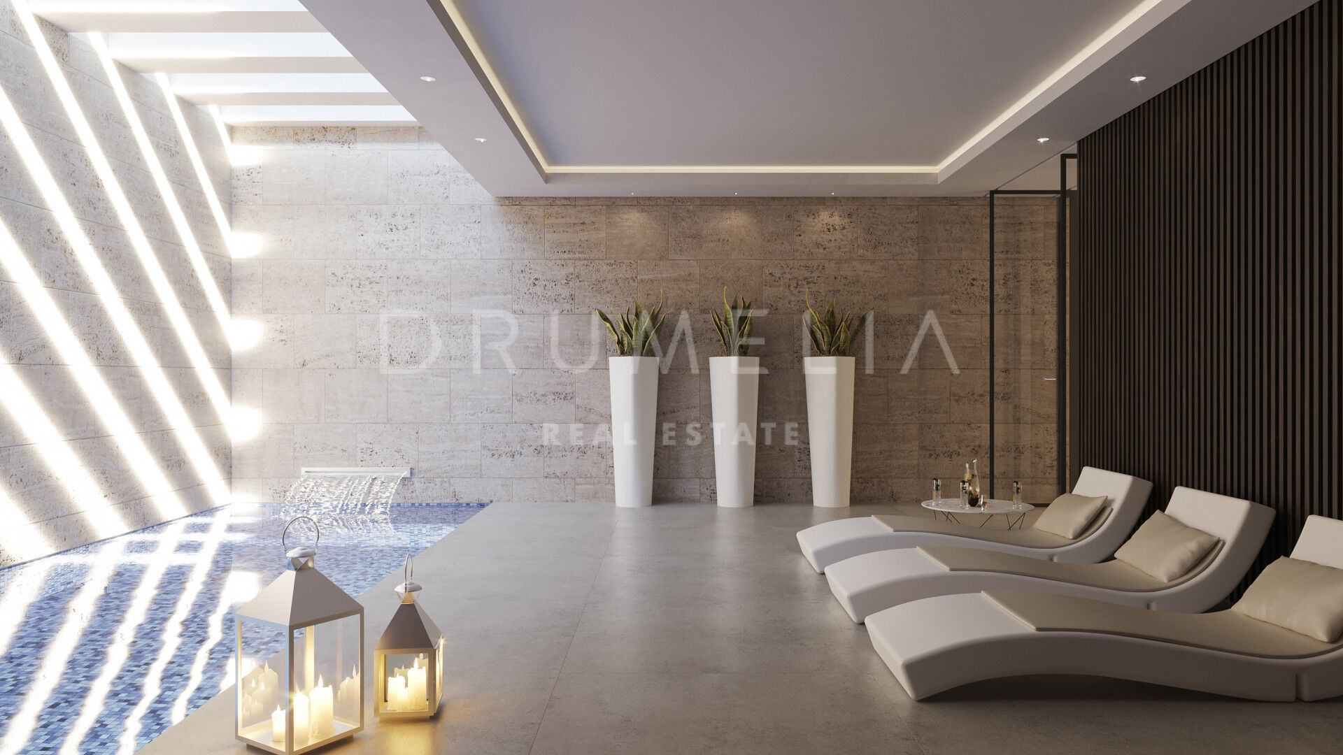W piwnicy poczują Państwo otaczający spokój. Kryty basen zapewnia zaciszny obszar, w którym można zarówno ćwiczyć, jak i relaksować się w zależności od chwili. Na tym poziomie znajduje się wyposażona prywatna siłownia, łaźnia turecka i piwniczka z winami.