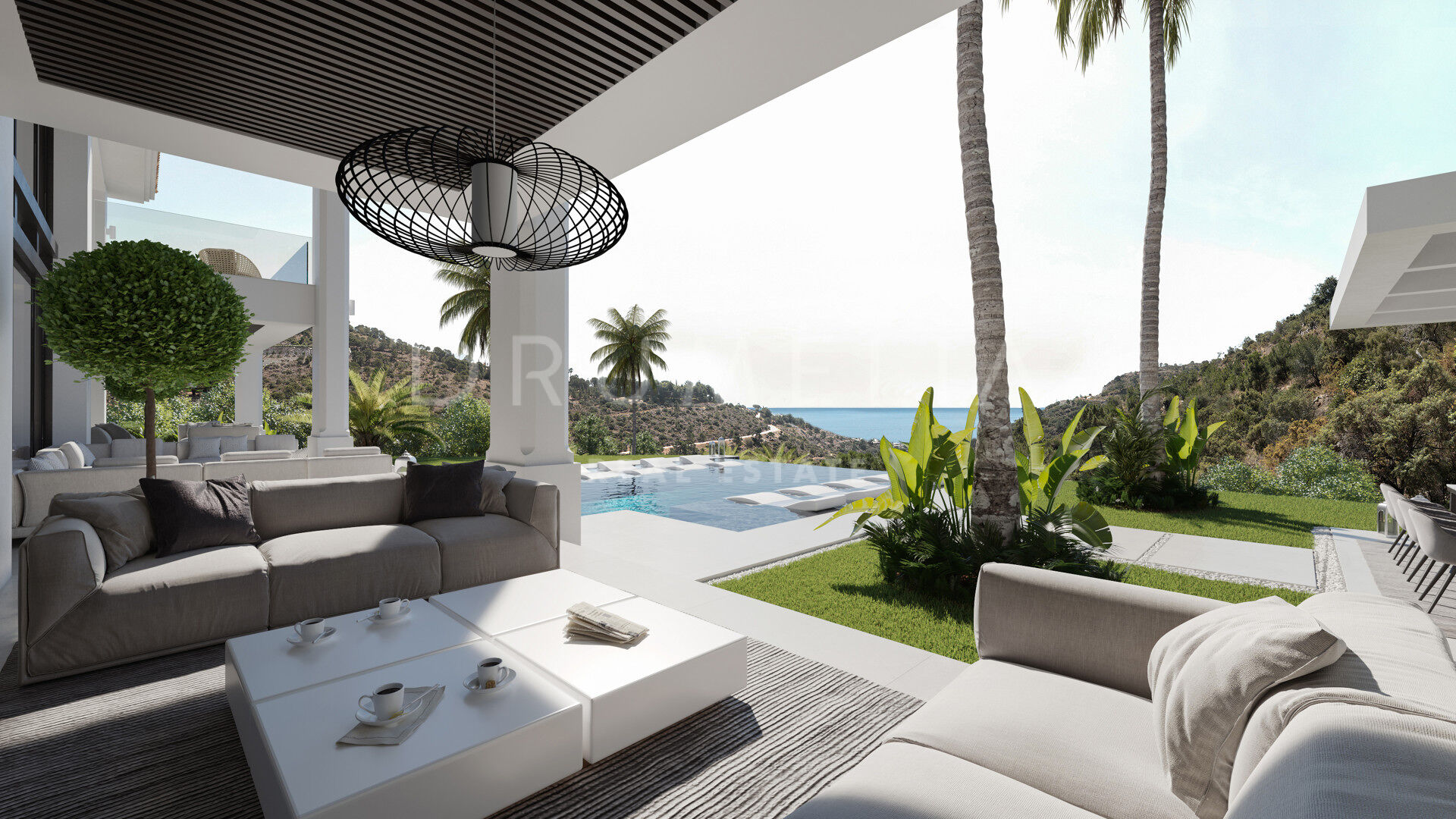 Zupełnie nowa willa w stylu śródziemnomorskim z widokiem na morze w El Madroñal, Benahavís