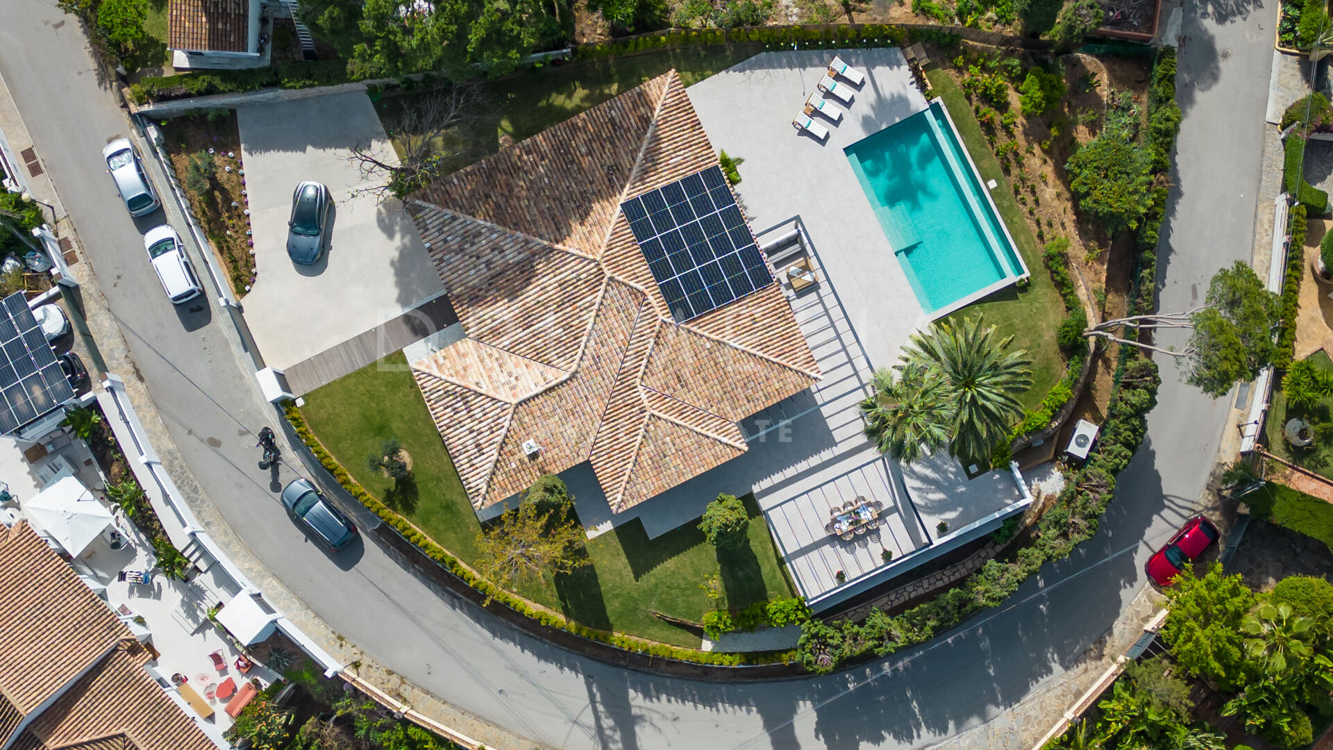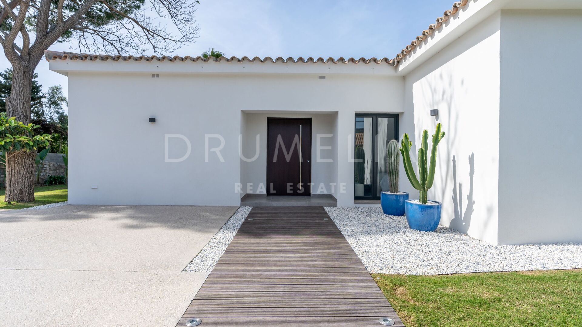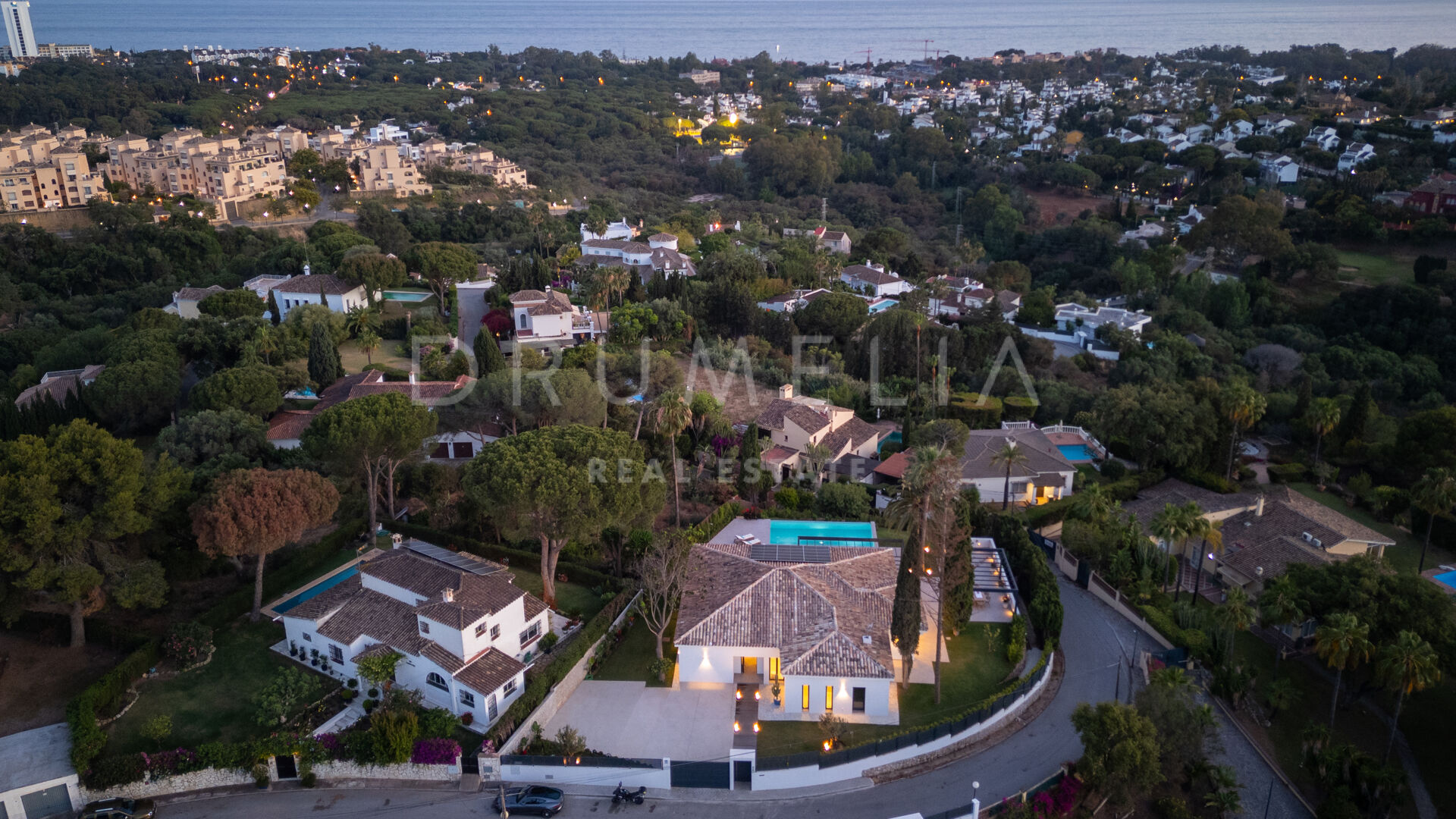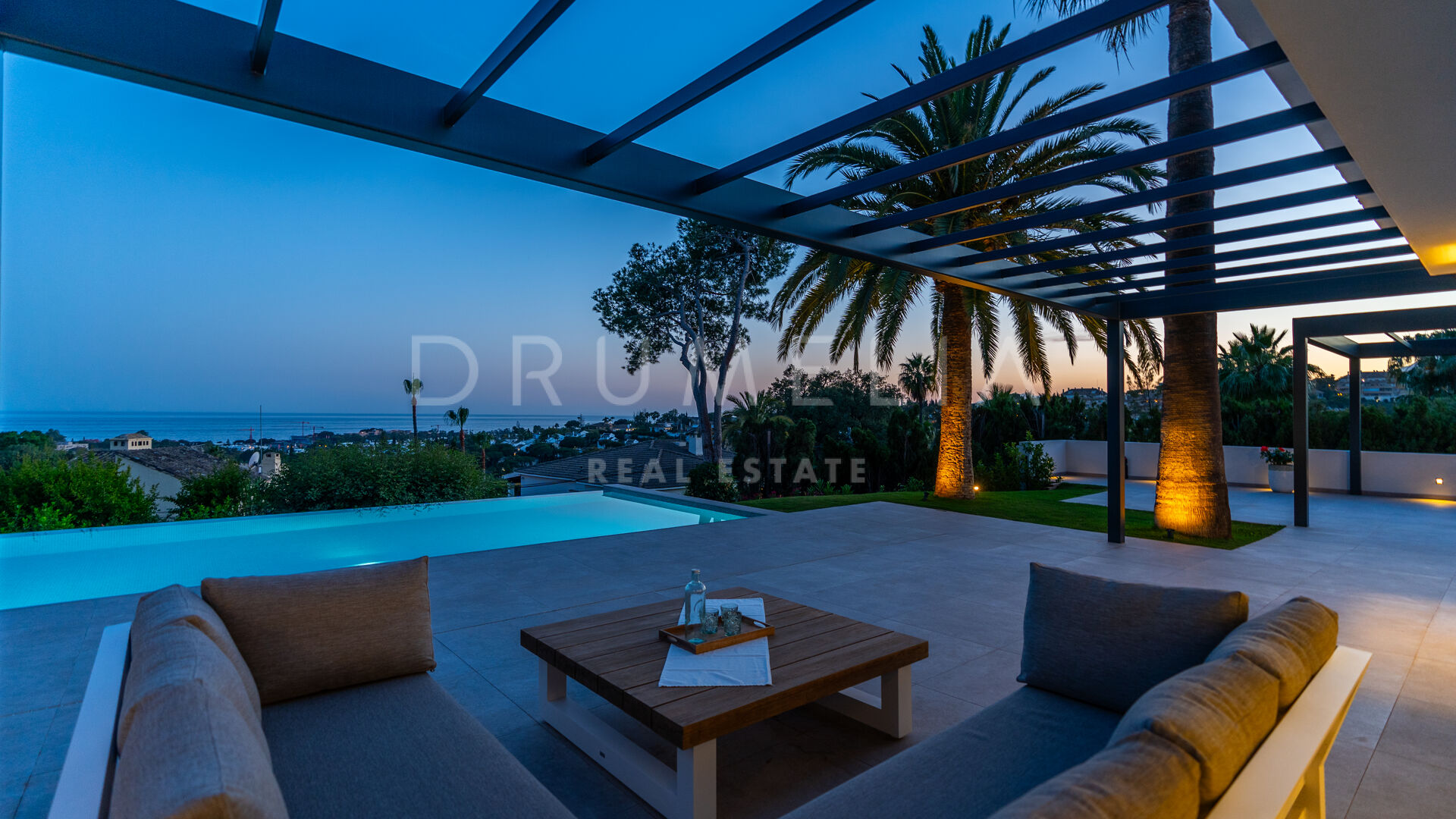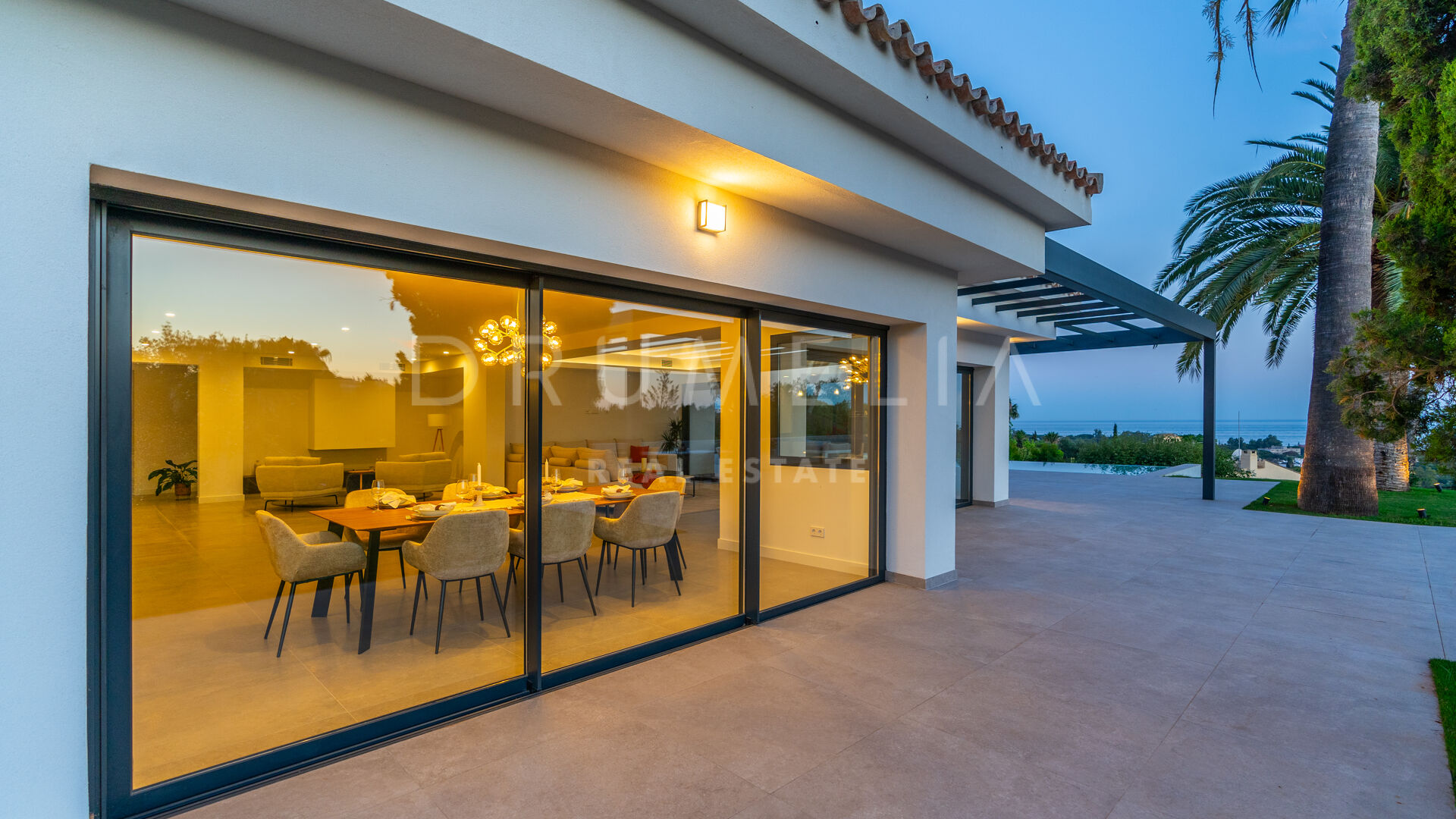 Obszar zewnętrzny jest równie imponujący, z nowo zaprojektowanym, łatwym w utrzymaniu ogrodem i basenem bez krawędzi o wymiarach 10 × 4,7 m. Rozległe tarasy o powierzchni 235 m² zapewniają dużo miejsca na posiłki na świeżym powietrzu, relaks i rozrywkę, a wszystko to w spokojnym otoczeniu, które zapewnia maksymalną prywatność. Pomimo spokojnej okolicy, willa jest dogodnie zlokalizowana w odległości krótkiego spaceru od udogodnień Elvirii i dziewiczych plaż.