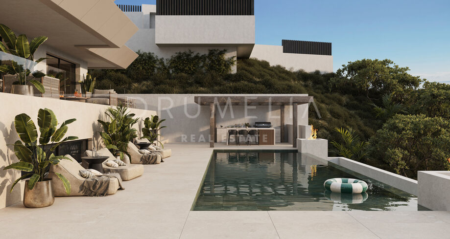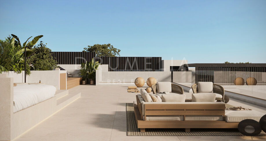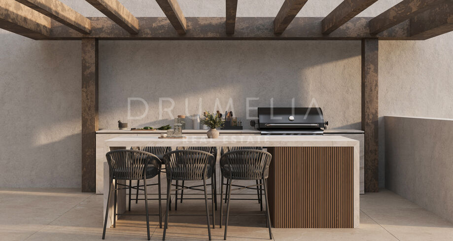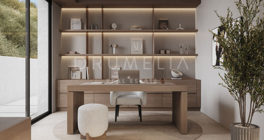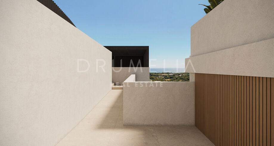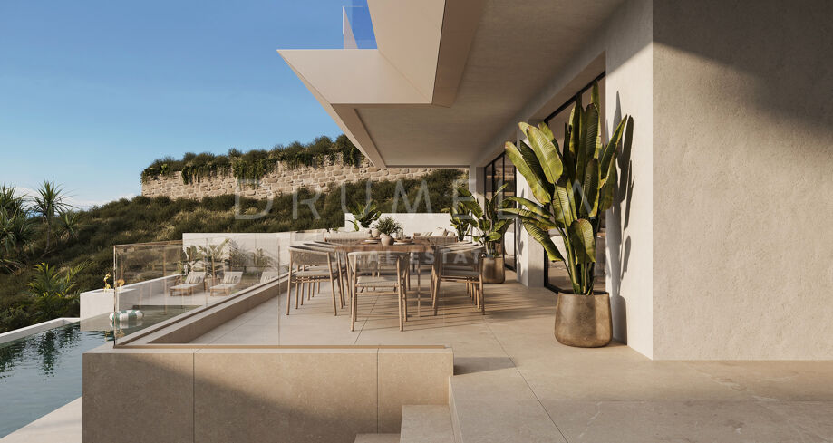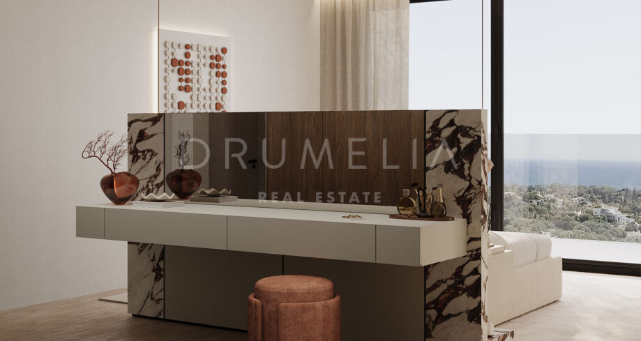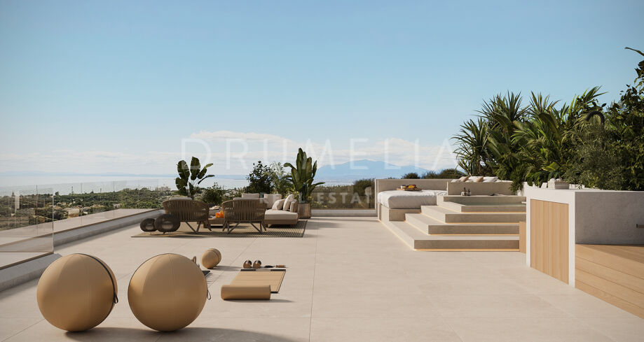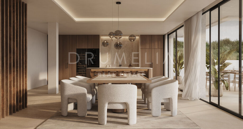 Ta imponująca willa, położona w ekskluzywnej dzielnicy Elviria we wschodniej Marbelli, łączy elegancję architektoniczną z nowoczesnym luksusem. Zaprojektowana przez renomowanego architekta Francisco Martíneza Galvána i stworzona przez Homerun Desarrollos, oferuje 454 m² starannie zaprojektowanej przestrzeni wewnętrznej oraz spektakularny taras o powierzchni 621 m² – idealny do relaksu na świeżym powietrzu z zapierającym dech w piersiach widokiem na Morze Śródziemne.