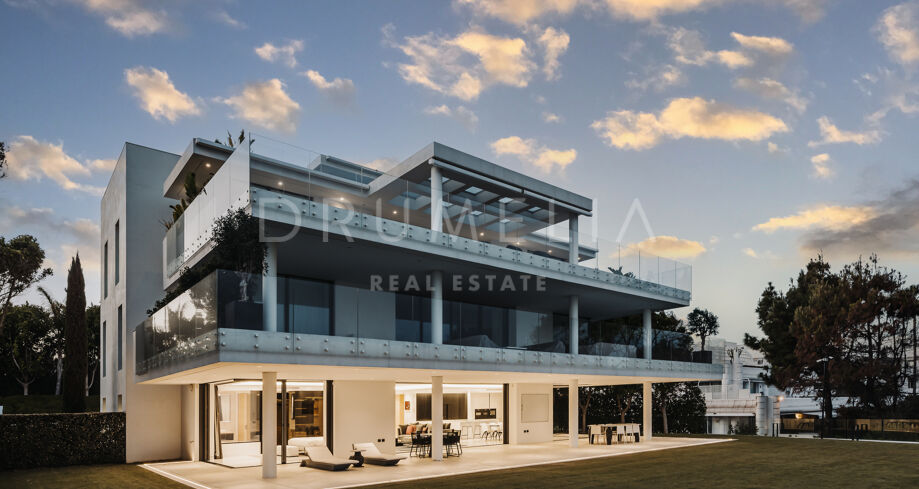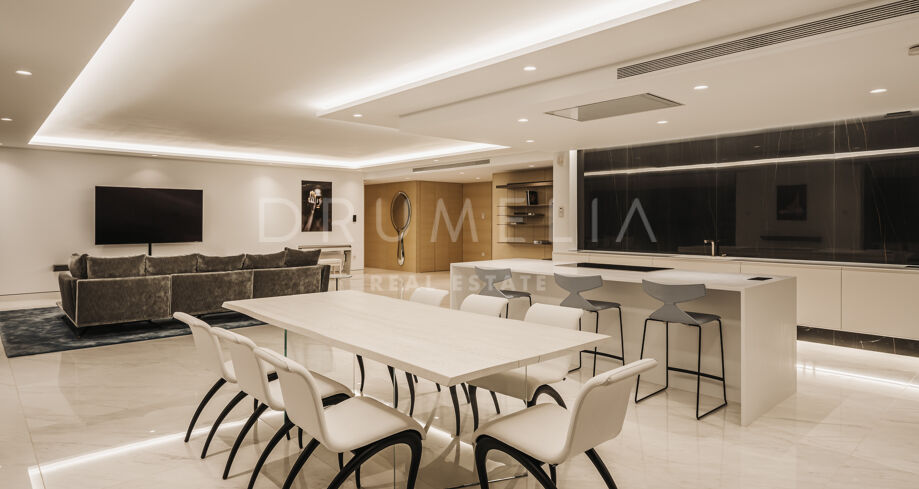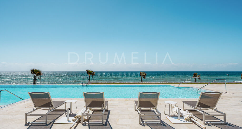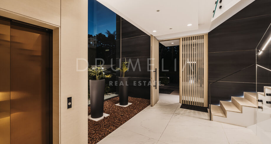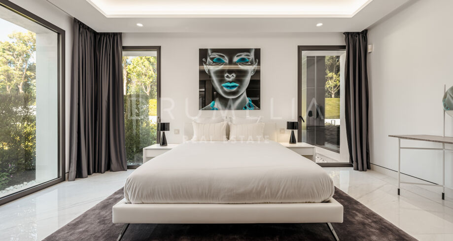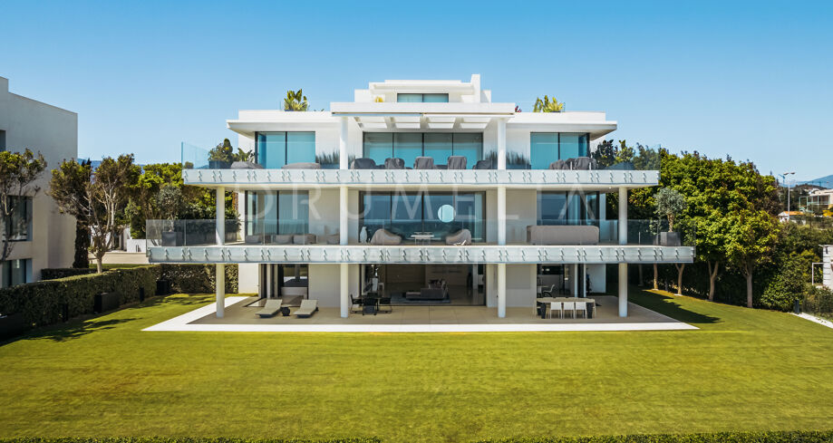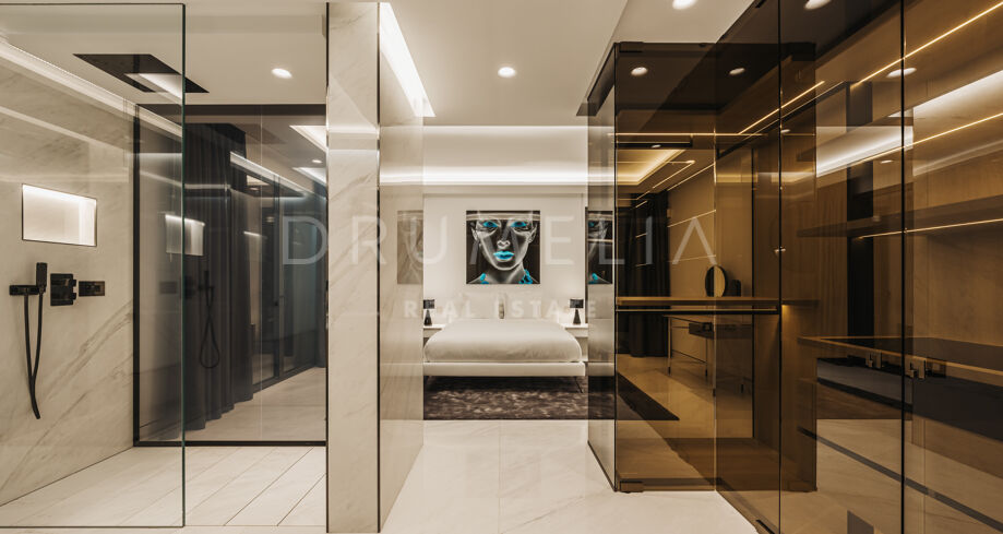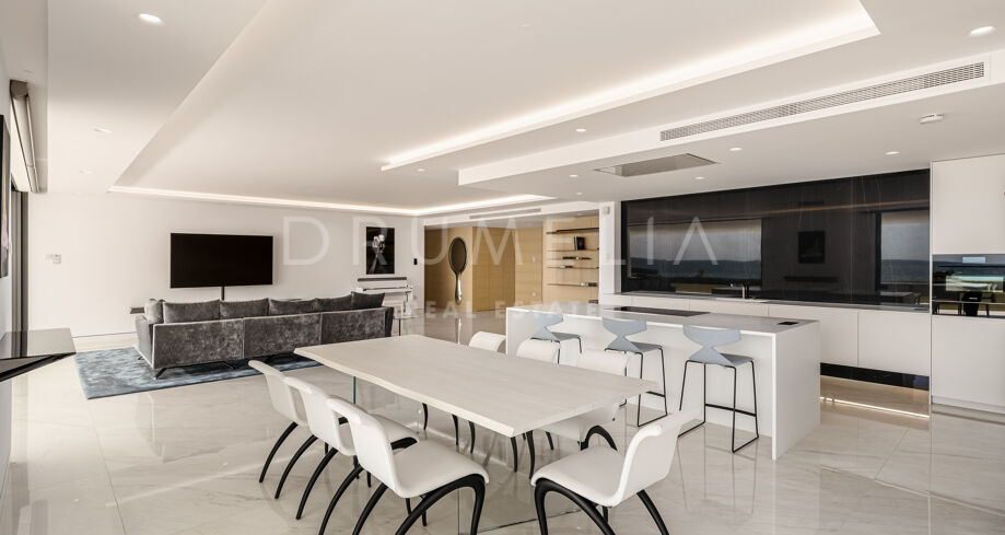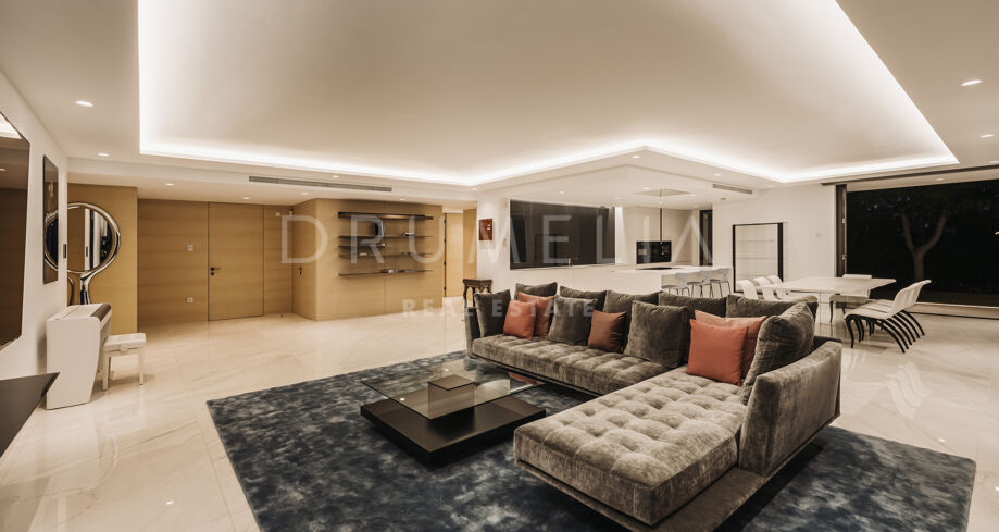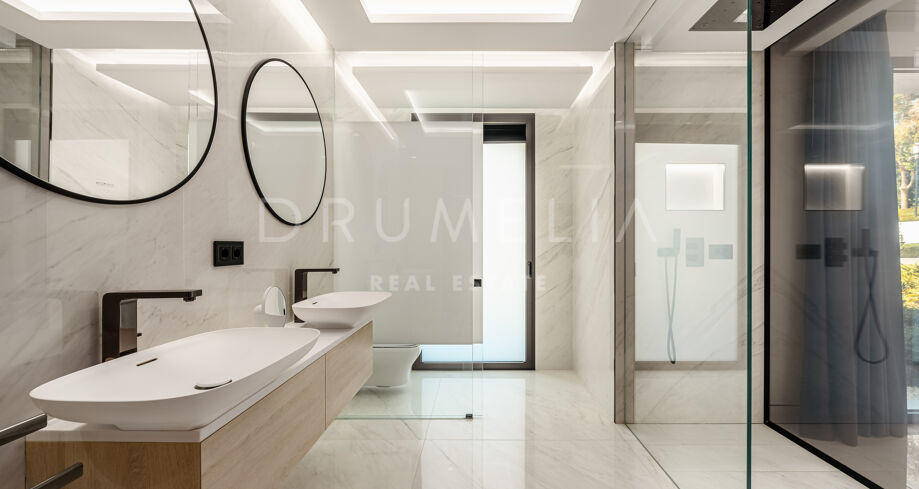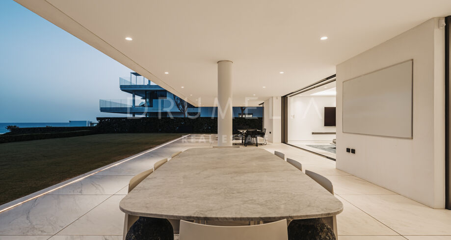 Apartament na parterze na sprzedaż w Emare, Estepona Wschodnia z 4 sypialnie, 4 łazienki, 4 pokoje z łazienką, 1 toaleta, wbudowany 2019 i posiada basen (osiedlowy), garaż (osiedlowy) i ogród (wlasny). Wymiary: 453m² wybudowano, 415m² działka i 146m² taras.