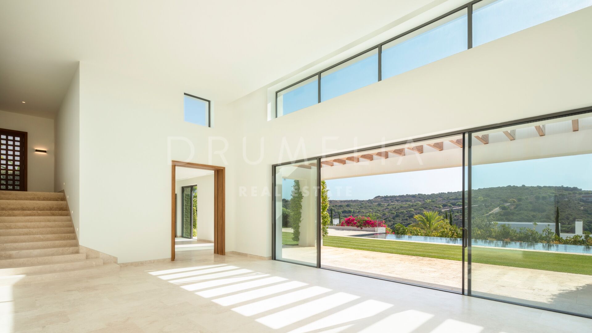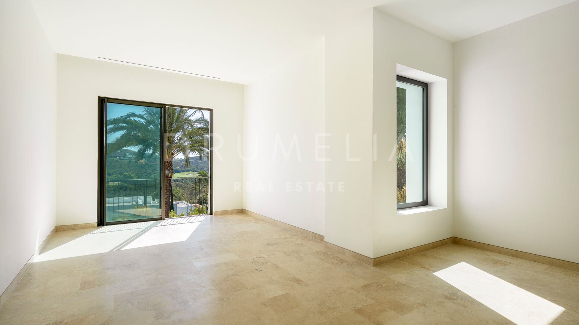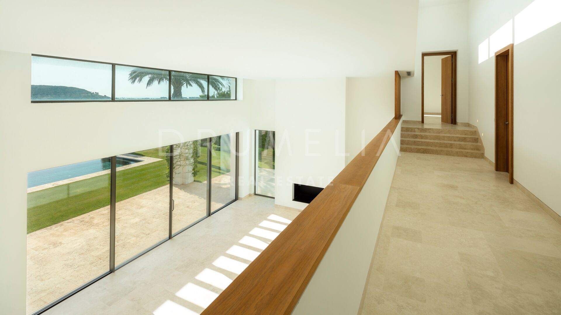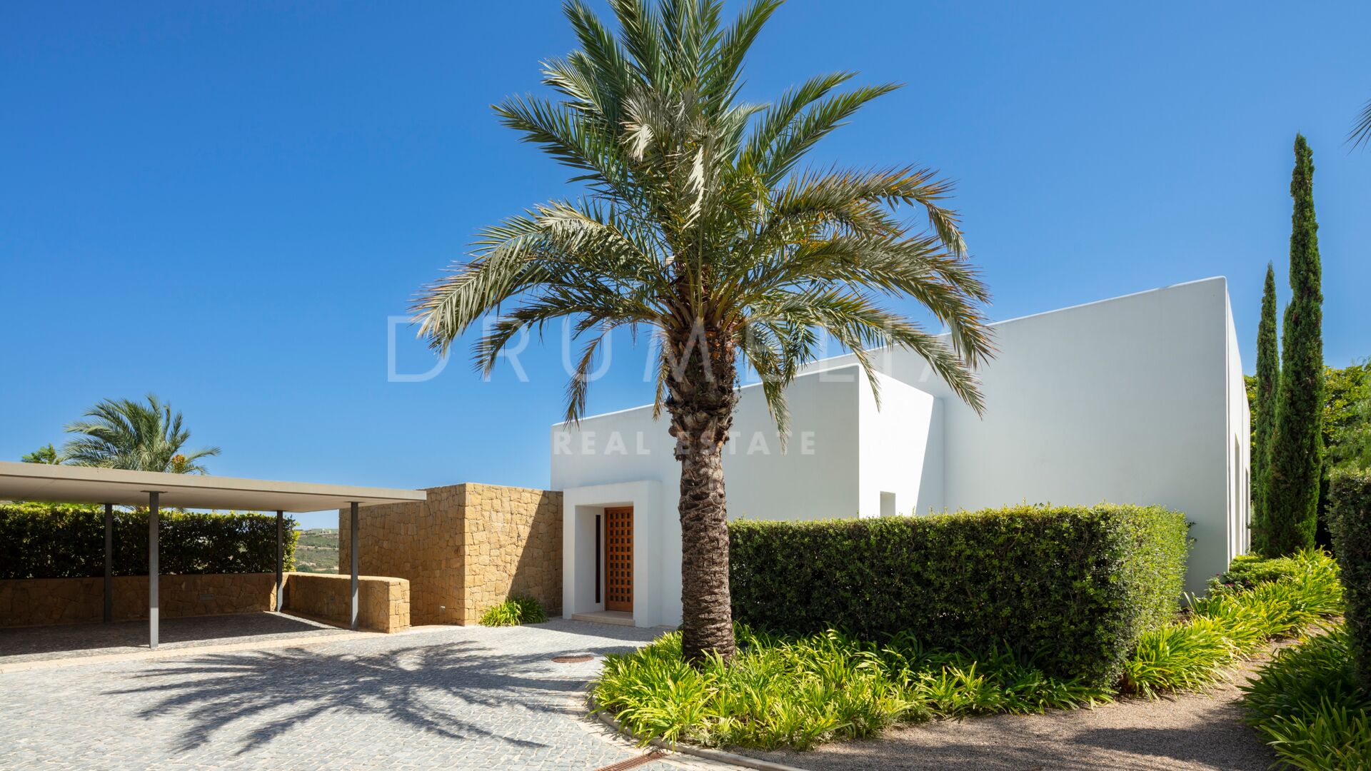 Położona w kurorcie Finca Cortesin w Casares, ta spektakularna nowa willa z 5 sypialniami na sprzedaż emanuje urokiem rezydencji w stylu Ibizy. Biała, nowoczesna struktura, ozdobiona tradycyjnymi śródziemnomorskimi kamieniami, tworzy urzekającą atmosferę dla ostatecznej przyjemności. Otoczony idylliczną andaluzyjską przyrodą i podobnymi elitarnymi nieruchomościami, spektakularny dom cieszy się uprzywilejowaną pozycją w pierwszej linii golfa w ekskluzywnym kurorcie. Wysokiej klasy ogrodzony kompleks oferuje wielokrotnie nagradzany luksusowy hotel, wysokiej klasy nieruchomości, mistrzowskie pole golfowe, wspaniałe spa i zaplecze fitness, klub plażowy i dzielnicę handlową. W pobliżu znajdują się wszelkiego rodzaju usługi i udogodnienia, piękne plaże i pola golfowe Costa del Sol. Marbella, Estepona, Puerto Banus i Sotogrande znajdują się w odległości krótkiej przejażdżki samochodem, lotnisko w Maladze w niecałą godzinę, a Gibraltar w 15 minut.