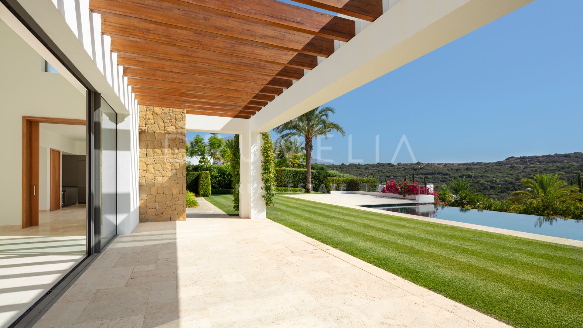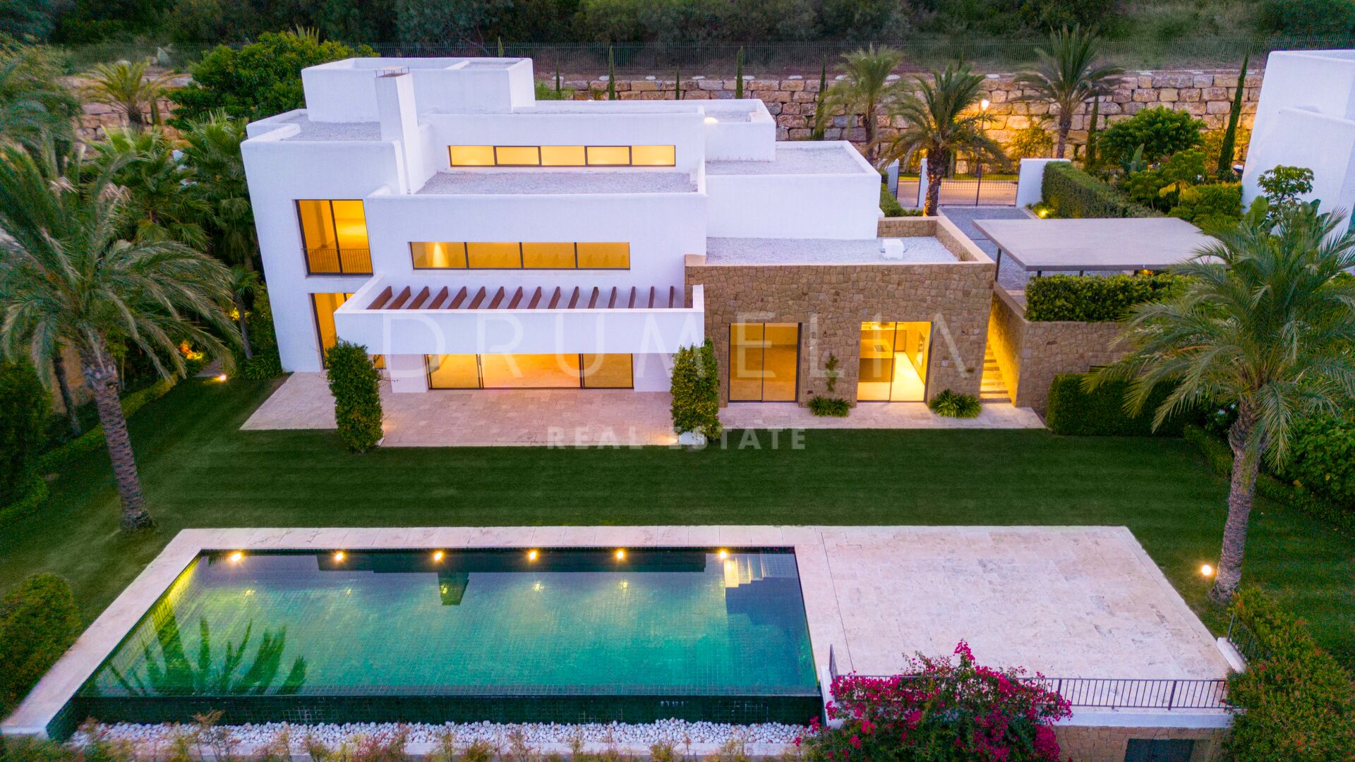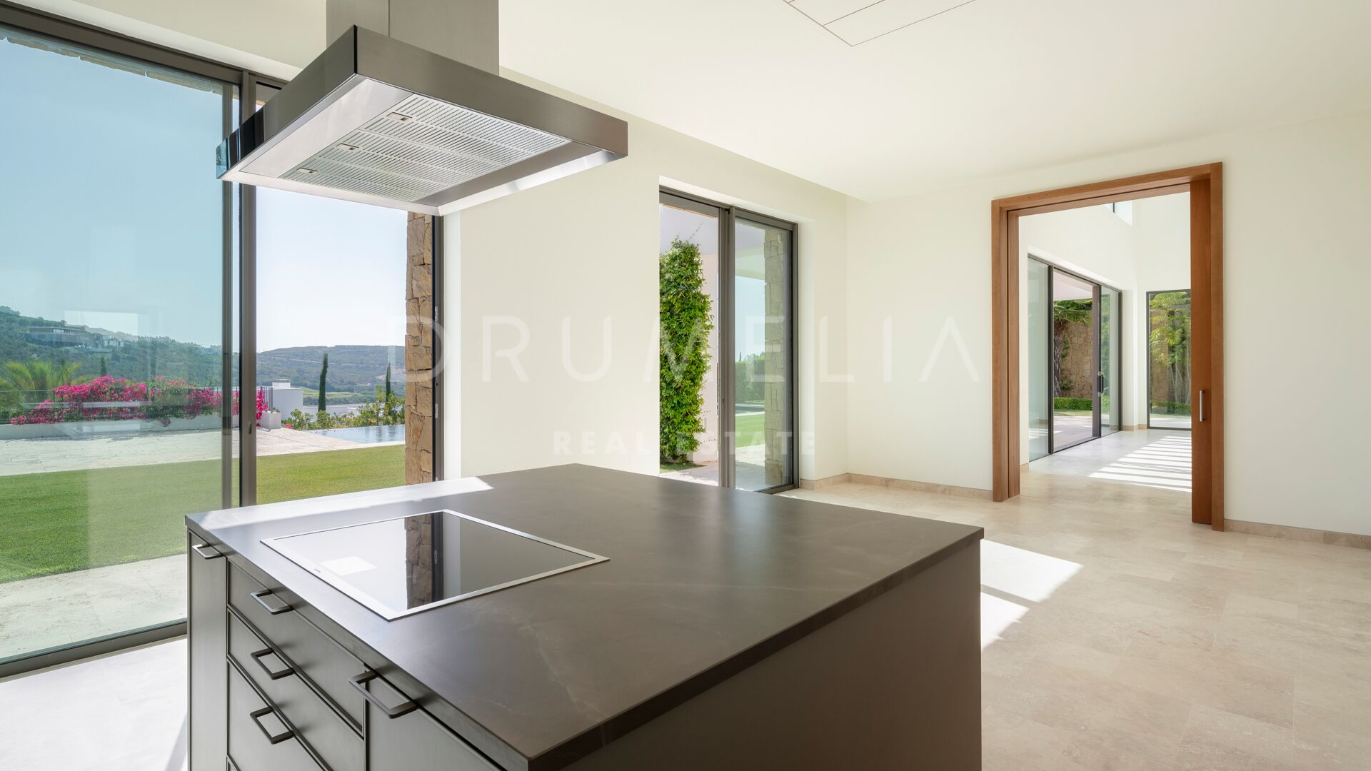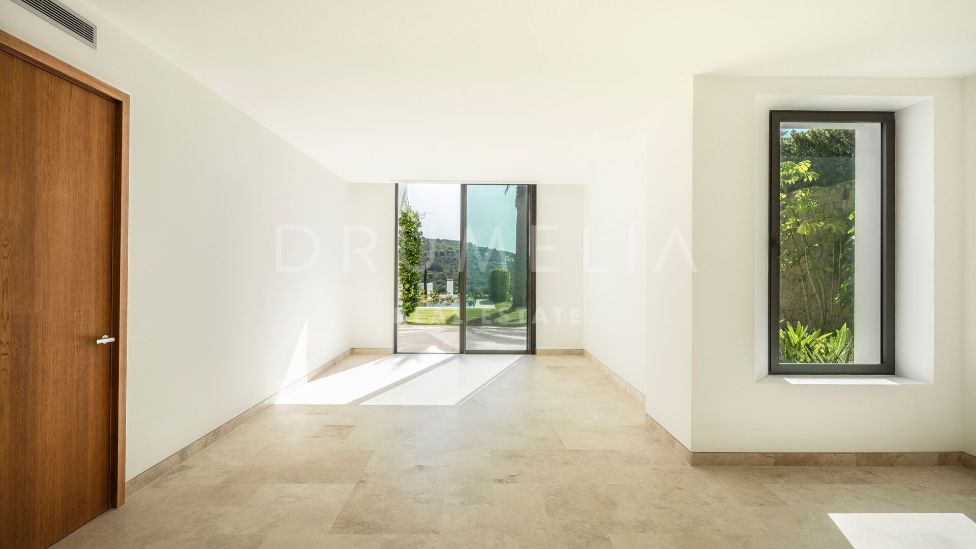 Położona w kurorcie Finca Cortesin w Casares, ta spektakularna nowa willa z 5 sypialniami na sprzedaż emanuje urokiem rezydencji w stylu Ibizy. Biała, nowoczesna struktura, ozdobiona tradycyjnymi śródziemnomorskimi kamieniami, tworzy urzekającą atmosferę dla ostatecznej przyjemności. Otoczony idylliczną andaluzyjską przyrodą i podobnymi elitarnymi nieruchomościami, spektakularny dom cieszy się uprzywilejowaną pozycją w pierwszej linii golfa w ekskluzywnym kurorcie. Wysokiej klasy ogrodzony kompleks oferuje wielokrotnie nagradzany luksusowy hotel, wysokiej klasy nieruchomości, mistrzowskie pole golfowe, wspaniałe spa i zaplecze fitness, klub plażowy i dzielnicę handlową. W pobliżu znajdują się wszelkiego rodzaju usługi i udogodnienia, piękne plaże i pola golfowe Costa del Sol. Marbella, Estepona, Puerto Banus i Sotogrande znajdują się w odległości krótkiej przejażdżki samochodem, lotnisko w Maladze w niecałą godzinę, a Gibraltar w 15 minut.