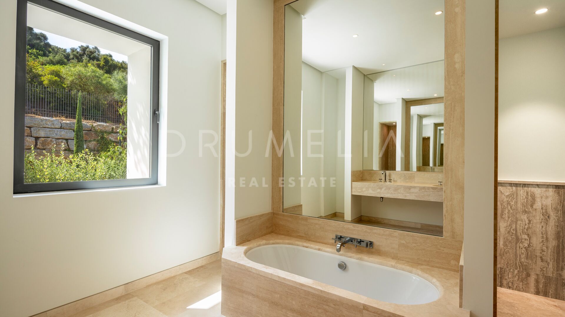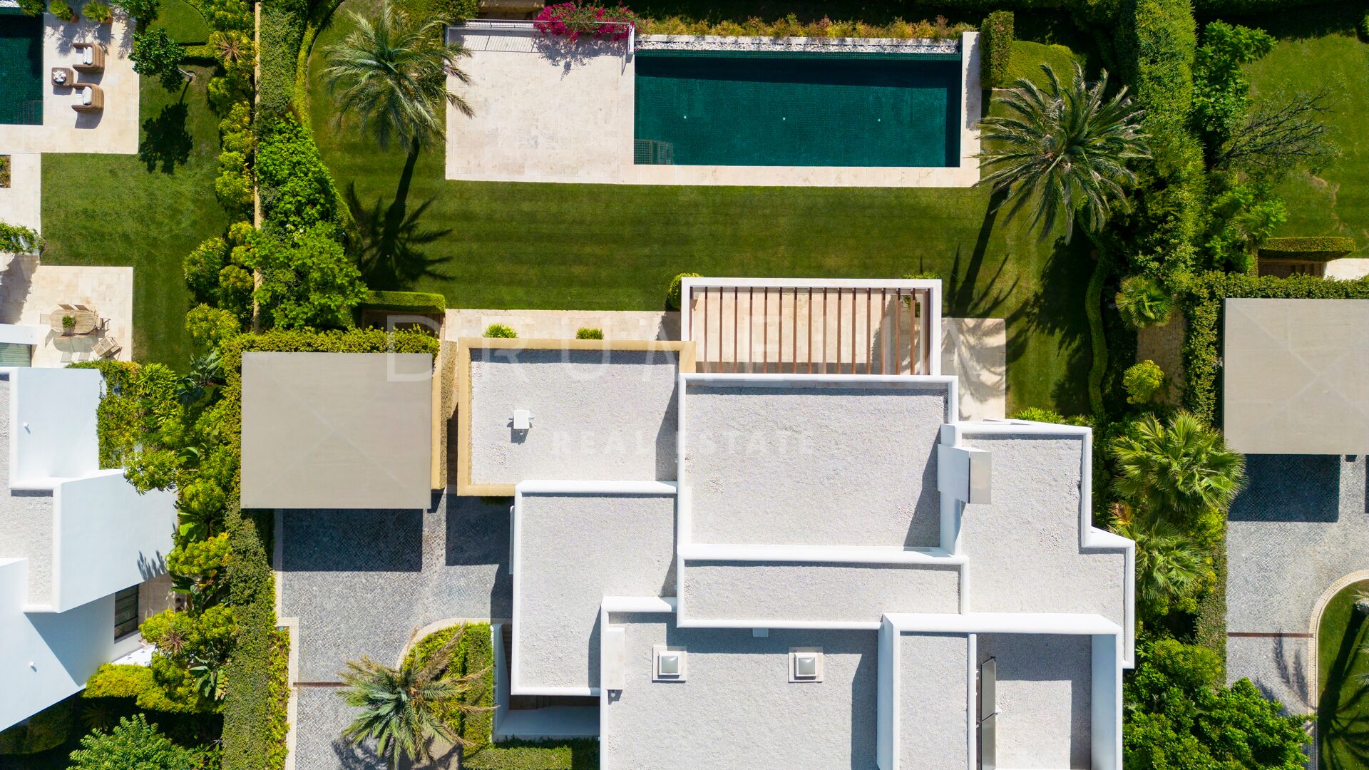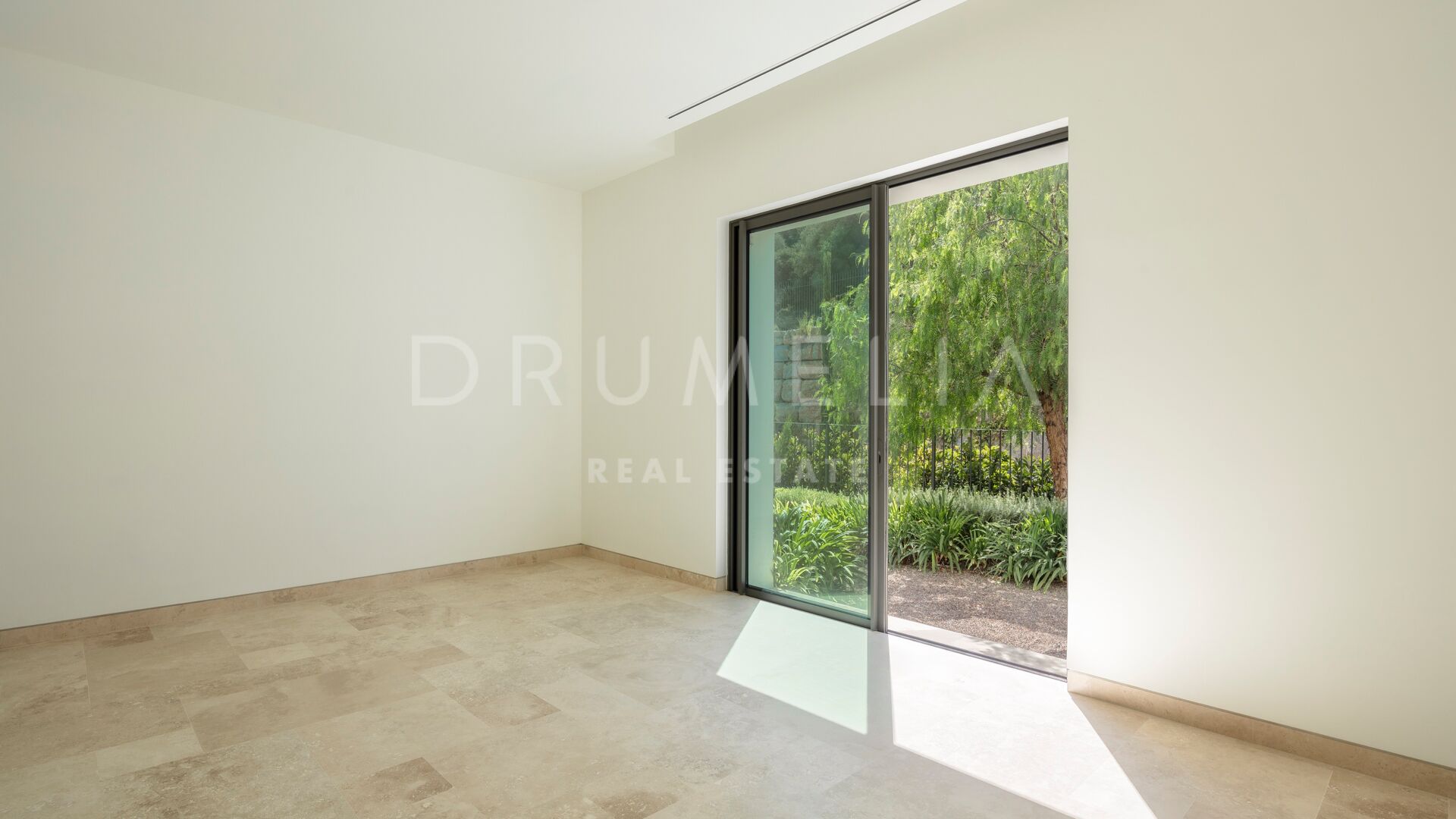 Położona na dużej działce o powierzchni 1.690 m², nieruchomość o powierzchni 655 m² z tarasami o powierzchni 82 m² rozciąga się na dwóch piętrach i oferuje bezpośredni dostęp do ogrodu z poziomu gruntu. Jego architektura przywołuje kojącą atmosferę i sprzyja głębokiemu połączeniu z naturą. Starannie wypielęgnowane ogrody zdobią kołyszące się palmy i żywe krzewy kwiatowe. Oszałamiający basen bez krawędzi z oświetleniem LED zachęca do orzeźwiającej kąpieli. Zadaszony taras zapewnia wspaniałą przestrzeń do spożywania posiłków na świeżym powietrzu i relaksu. Wnętrza emanują wyrafinowaniem, z wykorzystaniem najlepszych materiałów i delikatnych neutralnych kolorów, zapewniając poczucie luksusu oraz spokojną i spokojną atmosferę. Zachęcający parter obejmuje przestronny salon, jadalnię i kuchnię z wysokimi sufitami i dużą ilością okien, które skąpią przestrzeń w naturalnym świetle. Nowoczesna kuchnia jest w pełni wyposażona w najwyższej klasy urządzenia Gaggenau. Dwie sypialnie dla gości mają bezpośredni dostęp do ogrodu. Górny poziom willi przeznaczony jest na pozostałe sypialnie, z których każda posiada własną łazienkę. Przejście łączące pokoje oferuje malowniczy widok na część dzienną, tworząc wewnętrzny balkon.
