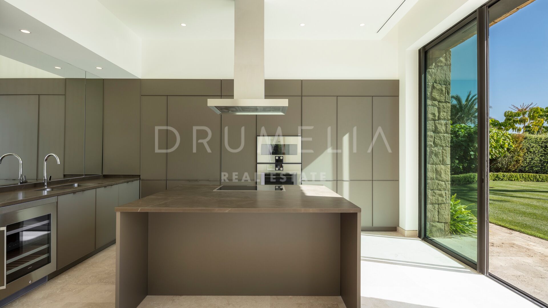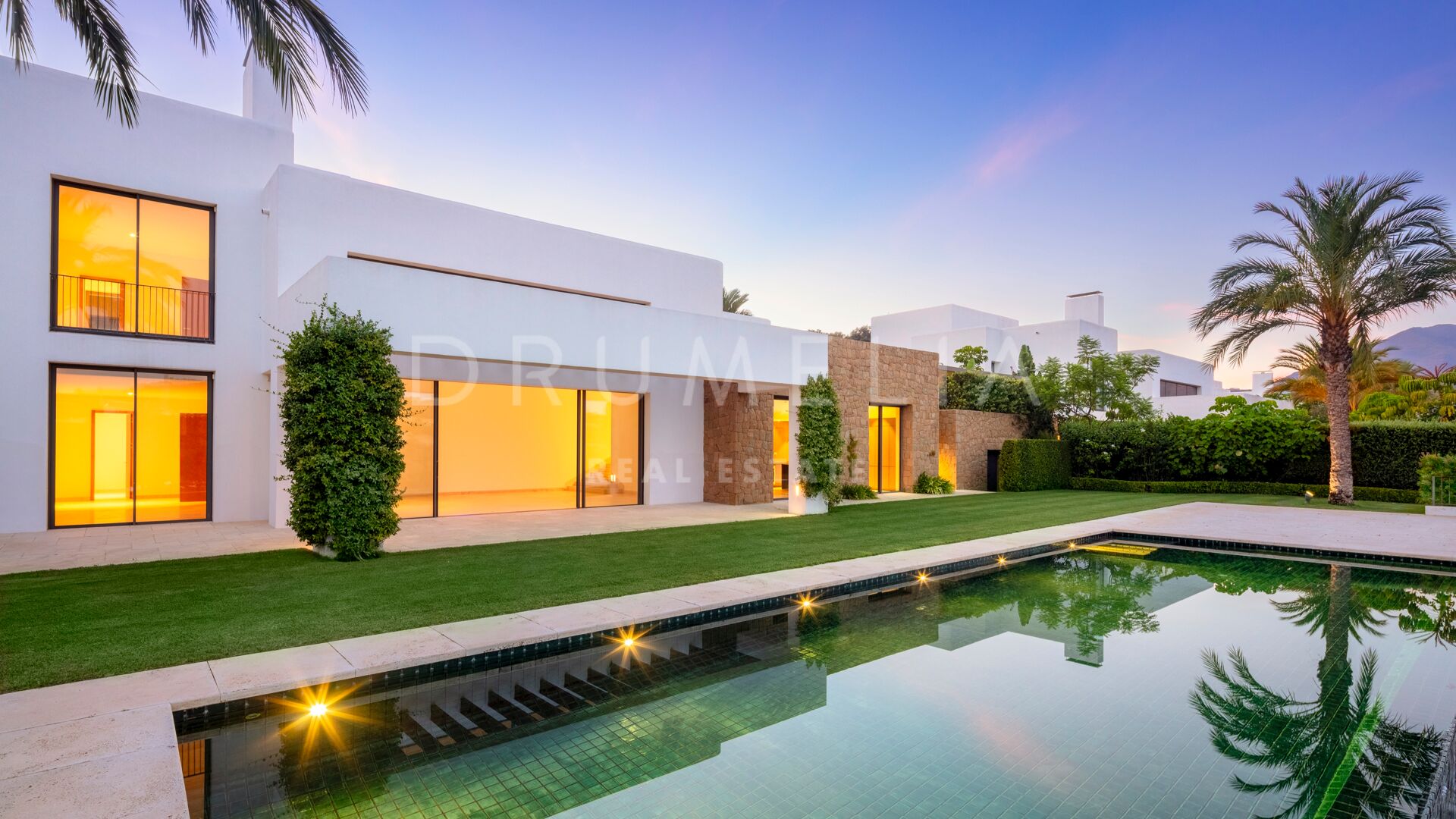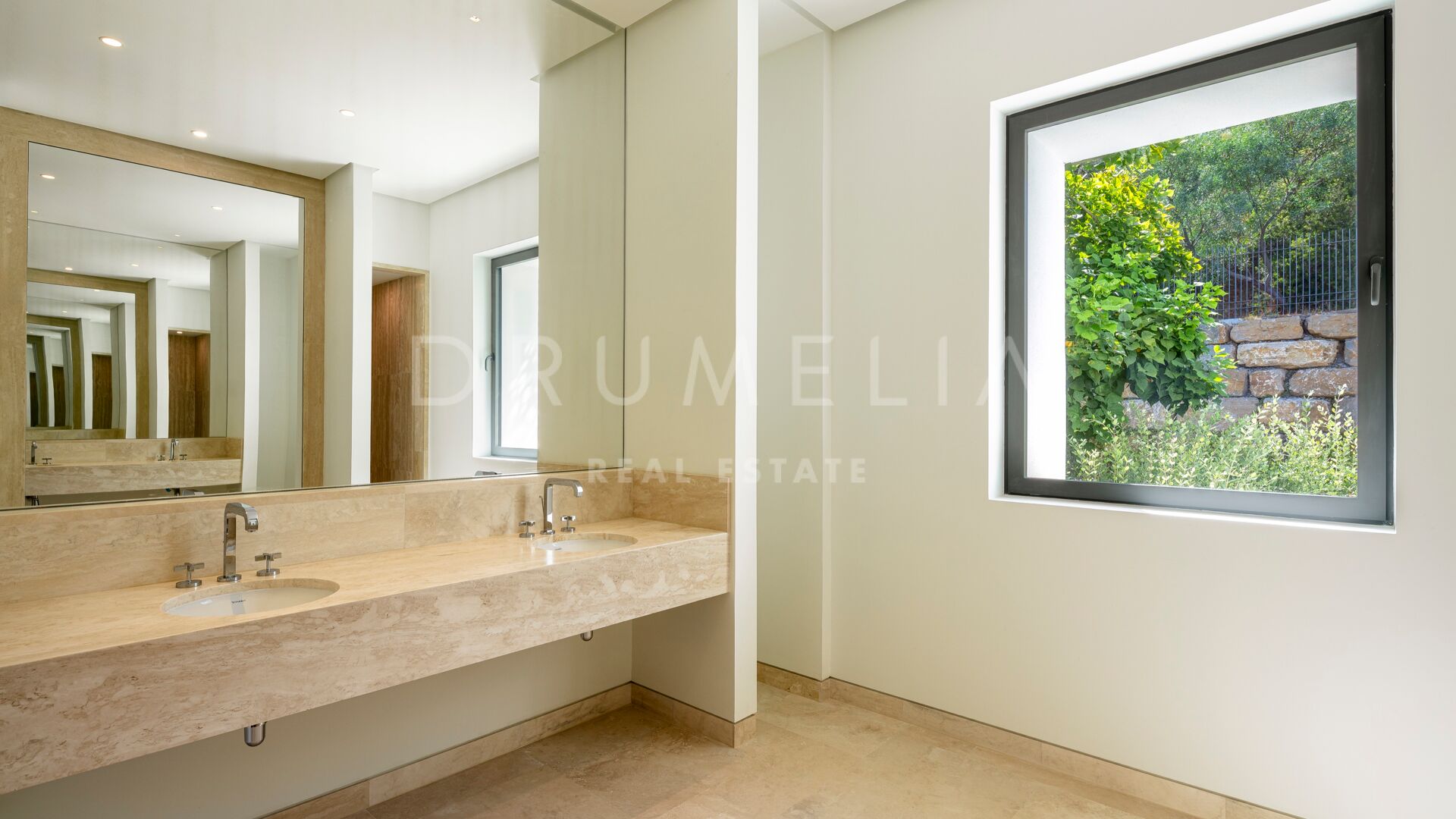Położona na dużej działce o powierzchni 1.690 m², nieruchomość o powierzchni 655 m² z tarasami o powierzchni 82 m² rozciąga się na dwóch piętrach i oferuje bezpośredni dostęp do ogrodu z poziomu gruntu. Jego architektura przywołuje kojącą atmosferę i sprzyja głębokiemu połączeniu z naturą. Starannie wypielęgnowane ogrody zdobią kołyszące się palmy i żywe krzewy kwiatowe. Oszałamiający basen bez krawędzi z oświetleniem LED zachęca do orzeźwiającej kąpieli. Zadaszony taras zapewnia wspaniałą przestrzeń do spożywania posiłków na świeżym powietrzu i relaksu. Wnętrza emanują wyrafinowaniem, z wykorzystaniem najlepszych materiałów i delikatnych neutralnych kolorów, zapewniając poczucie luksusu oraz spokojną i spokojną atmosferę. Zachęcający parter obejmuje przestronny salon, jadalnię i kuchnię z wysokimi sufitami i dużą ilością okien, które skąpią przestrzeń w naturalnym świetle. Nowoczesna kuchnia jest w pełni wyposażona w najwyższej klasy urządzenia Gaggenau. Dwie sypialnie dla gości mają bezpośredni dostęp do ogrodu. Górny poziom willi przeznaczony jest na pozostałe sypialnie, z których każda posiada własną łazienkę. Przejście łączące pokoje oferuje malowniczy widok na część dzienną, tworząc wewnętrzny balkon.