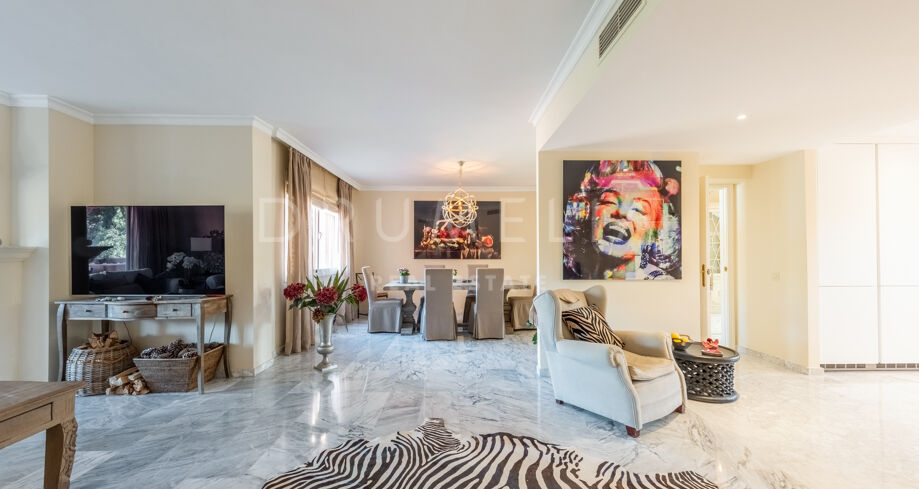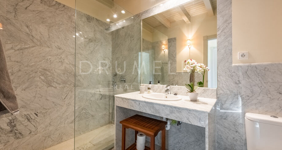 Znajduje się w Guadalmina, znanej jako jedna z najbardziej eleganckich dzielnic mieszkaniowych w Marbelli. Charakteryzuje się zielonymi alejami i Real Club de Golf Guadalmina, który jest drugim najstarszym polem golfowym na Costa del Sol i zaledwie 10 minut spacerem od plaży, oferuje łatwy dostęp do lokalnych atrakcji i udogodnień, w tym centrów handlowych, parków i szkół.
