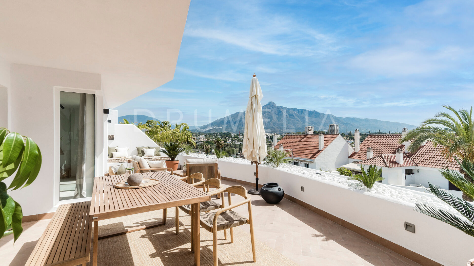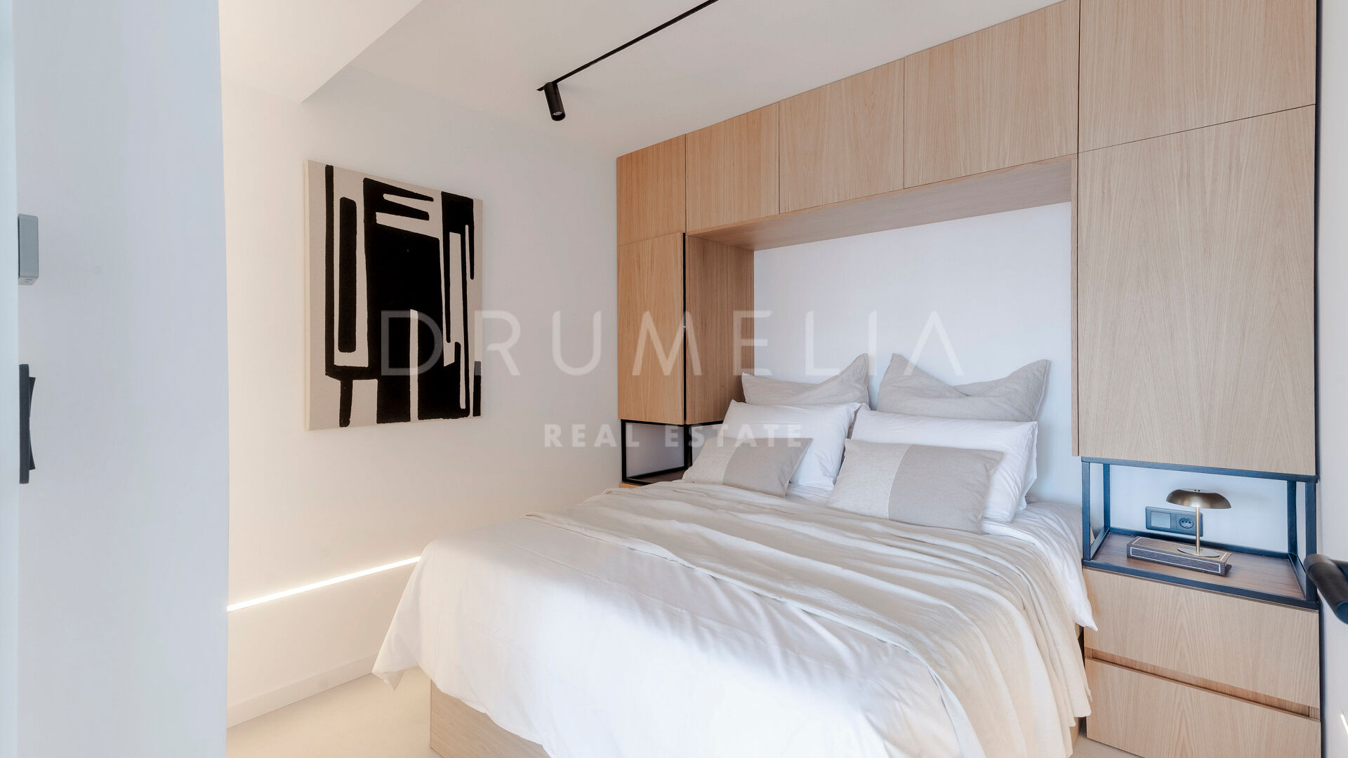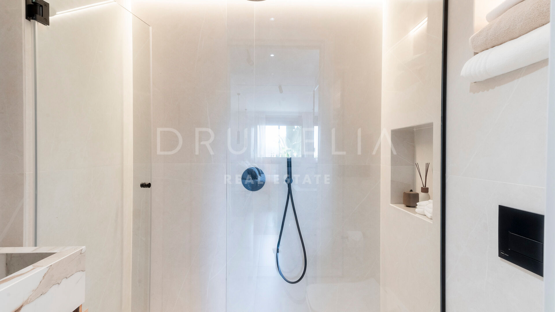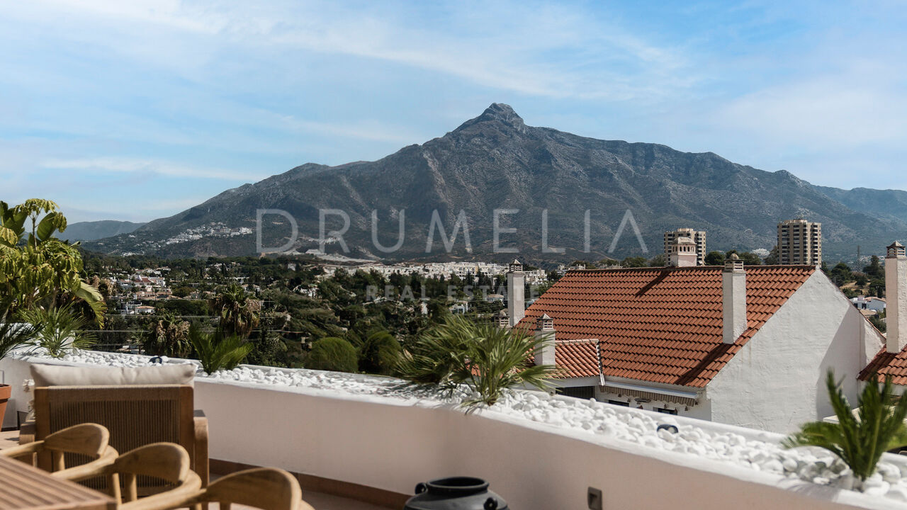 Po wejściu do domu wita nas przestronny salon, który płynnie łączy się z otwartą kuchnią i rozległym tarasem o powierzchni 32 m2, z którego roztacza się wspaniały widok na góry La Concha. Nowoczesna kuchnia jest w pełni wyposażona w wysokiej klasy urządzenia i dużo miejsca do przechowywania, idealne do codziennego życia i przyjmowania gości.