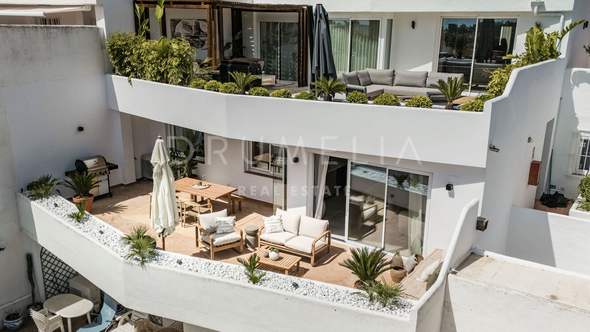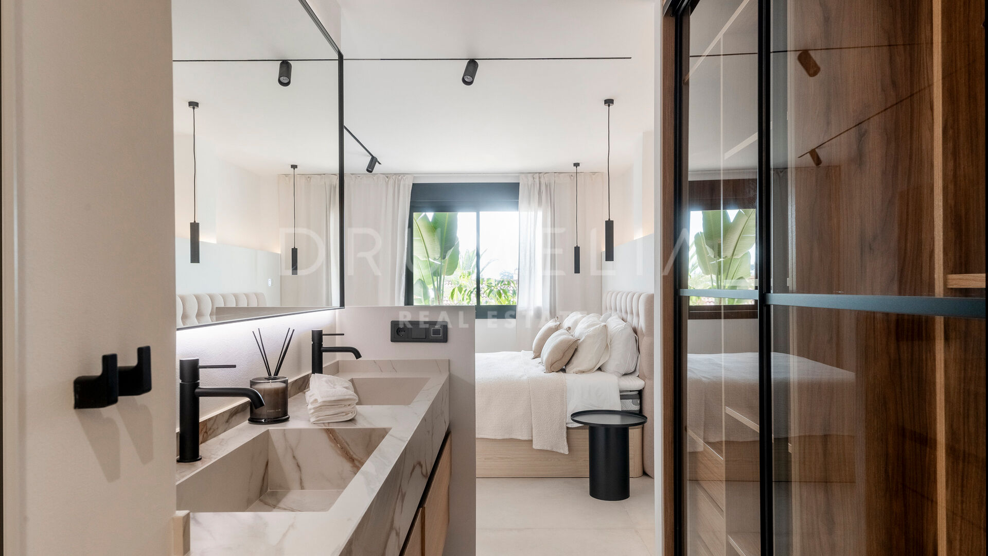 Ten wyjątkowy apartament z trzema sypialniami na sprzedaż znajduje się w doskonałej okolicy Nueva Andalucia, znanej z prestiżowej lokalizacji w pobliżu renomowanych pól golfowych, ekskluzywnych sklepów, wykwintnych restauracji i tętniącego życiem nocnego życia Puerto Banús i Golden Mile w Marbelli. Casa Aliya, nowa współczesna inwestycja, szczyci się eleganckimi liniami i pięknymi materiałami, oferując luksusowe wrażenia z życia.