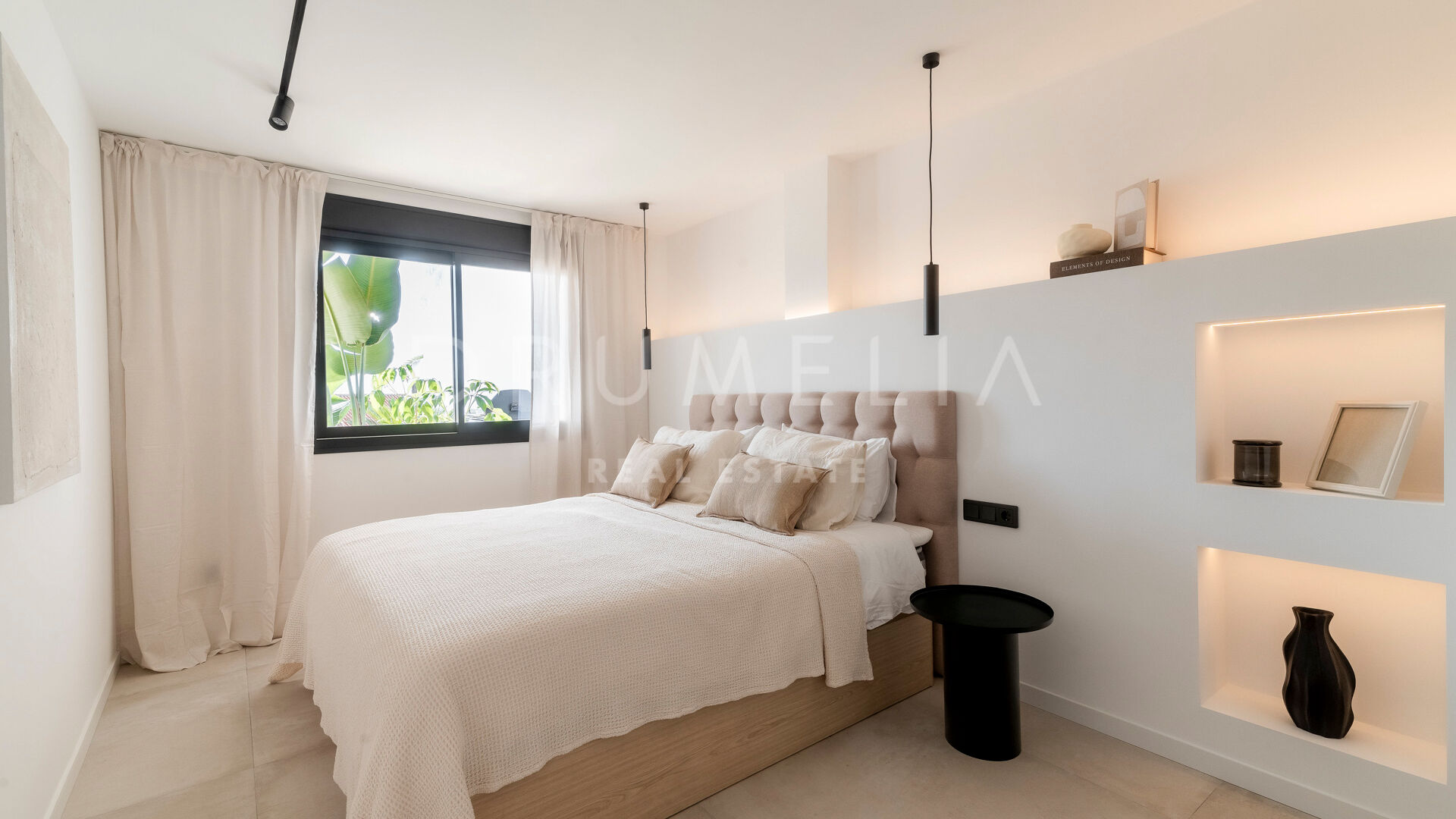 Trzy starannie zaprojektowane sypialnie oferują dużą przestrzeń i spokój. Główny apartament obejmuje łazienkę, zapewniając prywatne sanktuarium. Szczególną uwagę zwrócono na elementy projektu, łącząc naturalne materiały ze współczesną estetyką, aby zapewnić komfort i ekskluzywność.