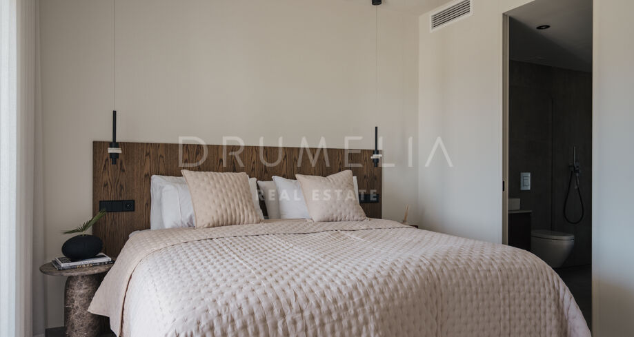 W głównej sypialni znajduje się łazienka i bezpośredni dostęp do tarasu, podczas gdy dwie dodatkowe sypialnie dzielą drugą łazienkę, co sprawia, że nieruchomość nadaje się zarówno do użytku mieszkalnego i gości.