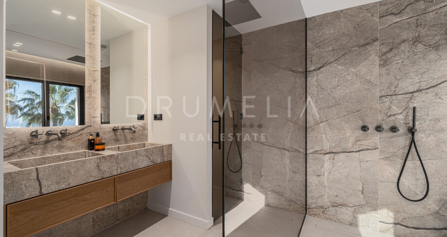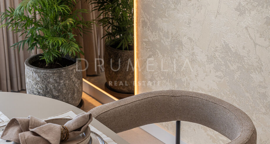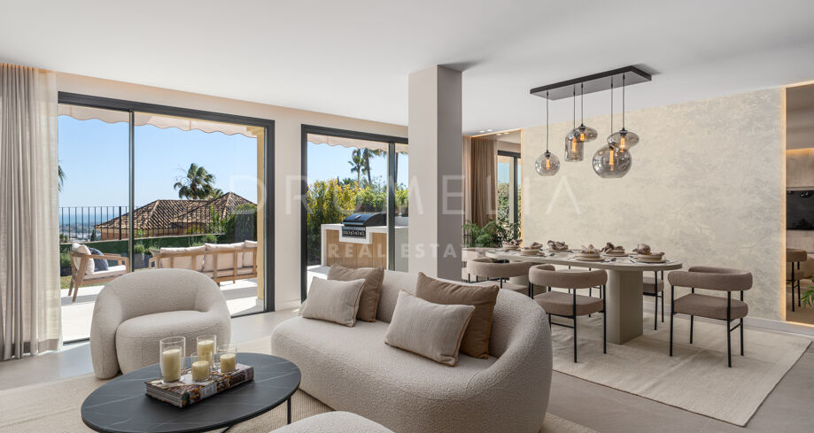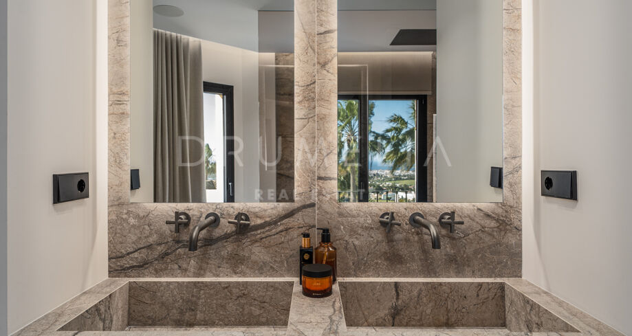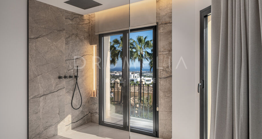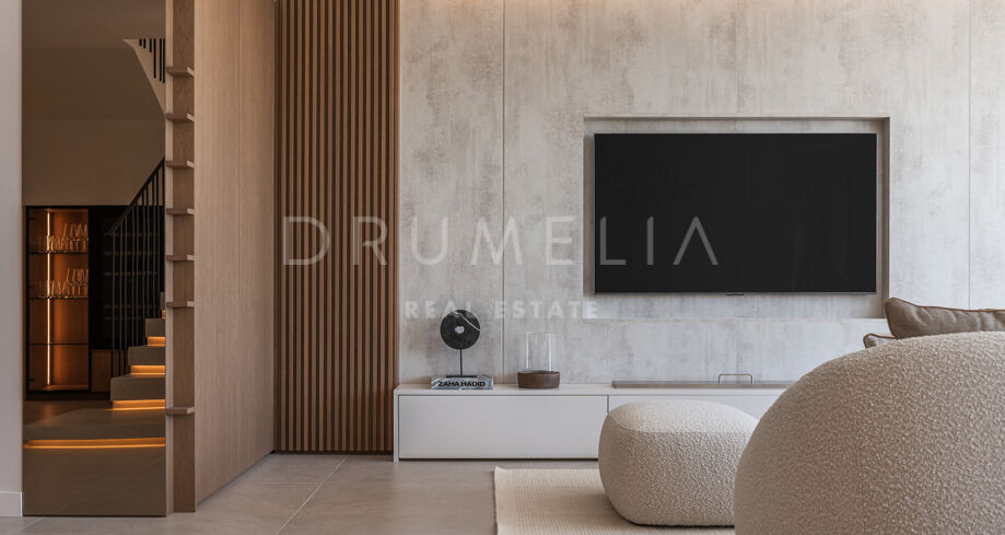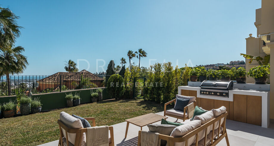 Taras na dachu to prawdziwa perełka — strefa relaksu z barem, kominkiem, leżakami i prysznicem na świeżym powietrzu, idealna do użytku przez cały rok. W pobliżu znajduje się klub golfowy La Quinta, plaże Puerto Banús, szkoły międzynarodowe oraz liczne sklepy i restauracje. Doskonałe miejsce na rezydencję całoroczną lub wakacyjny azyl na Costa del Sol.