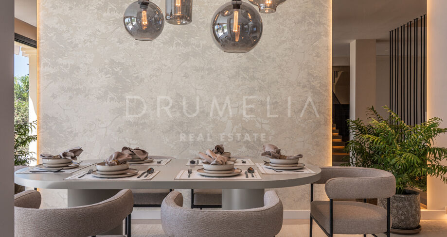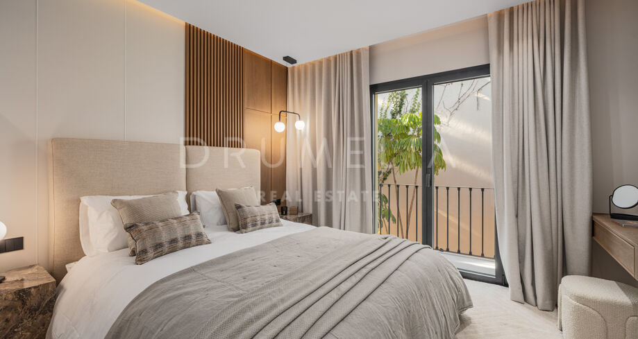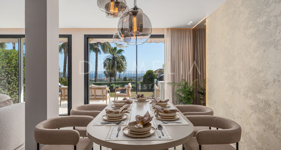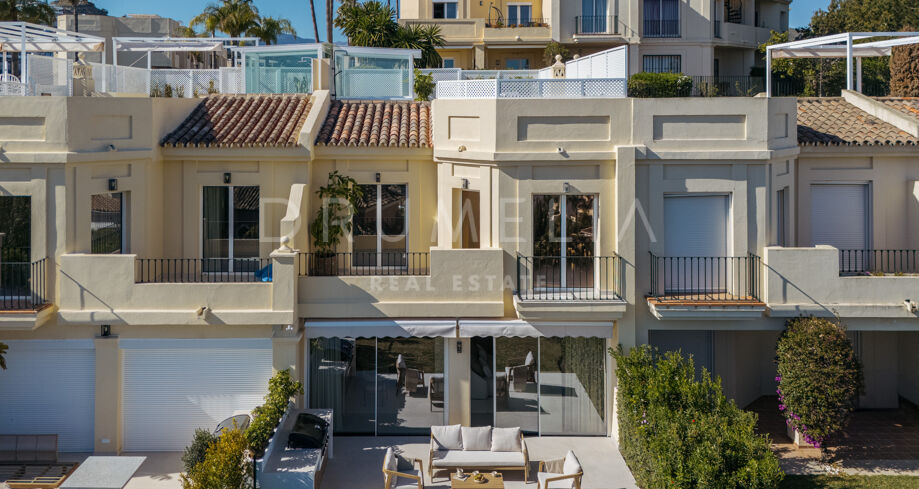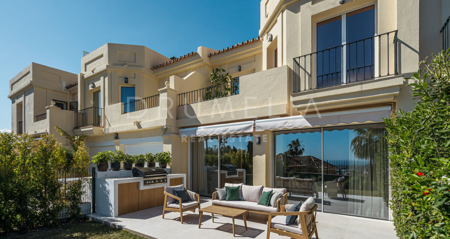 Ten stylowy, trzypoziomowy dom w zabudowie szeregowej, całkowicie odnowiony w 2024 roku, znajduje się w ekskluzywnej, zamkniętej społeczności La Quinta Hills w Benahavís. Oferuje 212 m² powierzchni (164 m² wnętrza + 49 m² taras na dachu), łącząc śródziemnomorski urok z nordyckim minimalizmem. Dom posiada trzy sypialnie, trzy łazienki (dwie en-suite), toaletę dla gości oraz wykończenie na najwyższym poziomie, a wszystko to w spokojnym i bezpiecznym otoczeniu z panoramicznym widokiem na morze i górę La Concha.