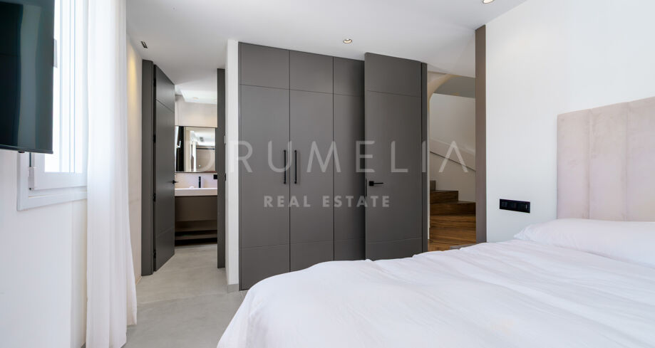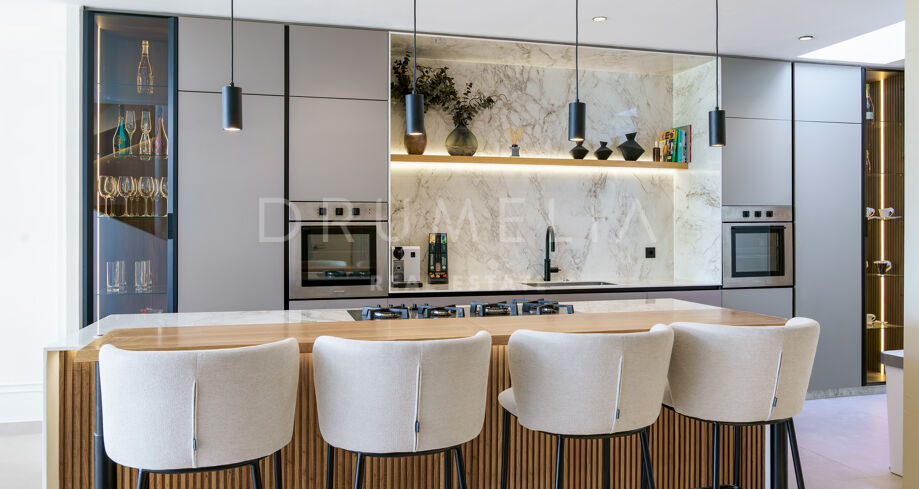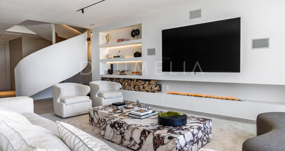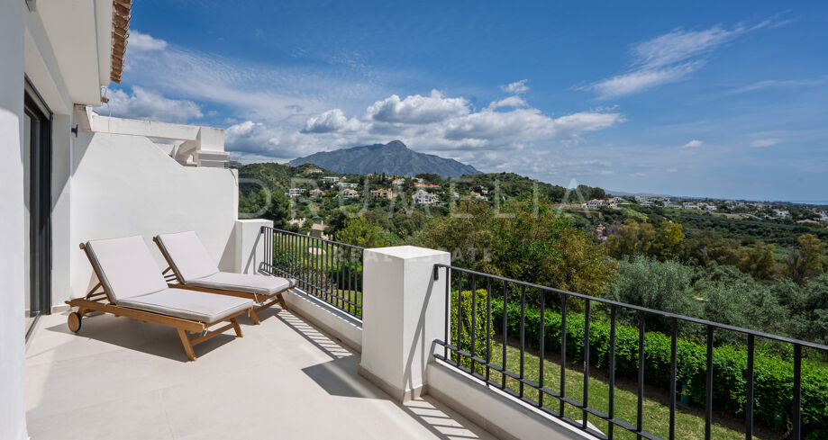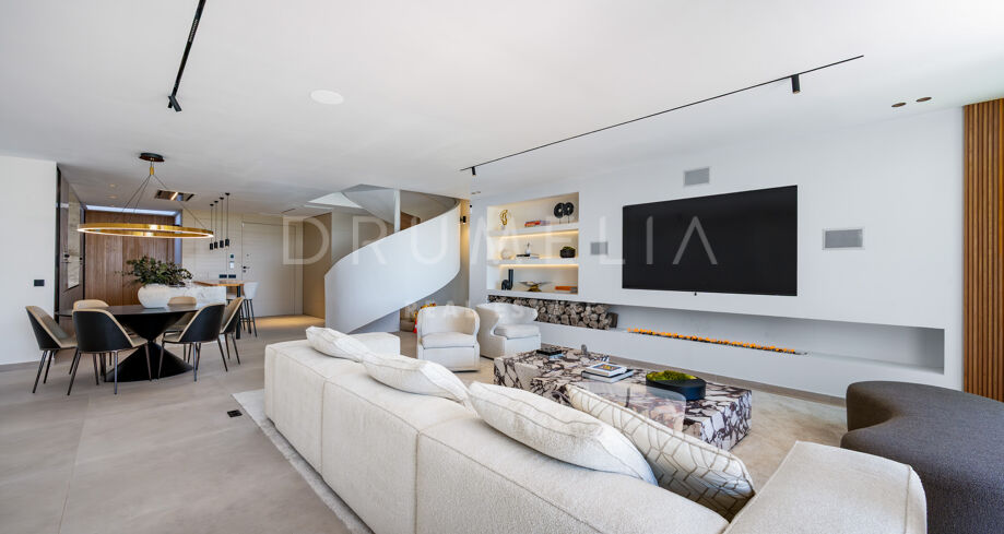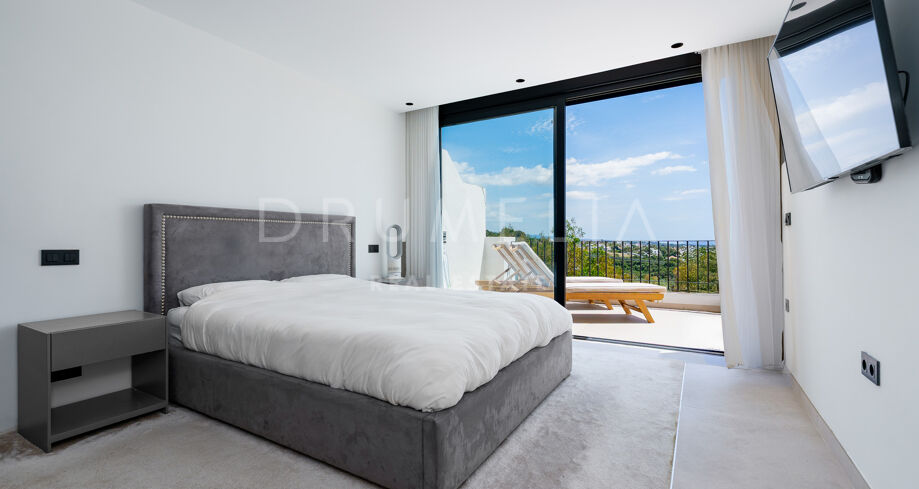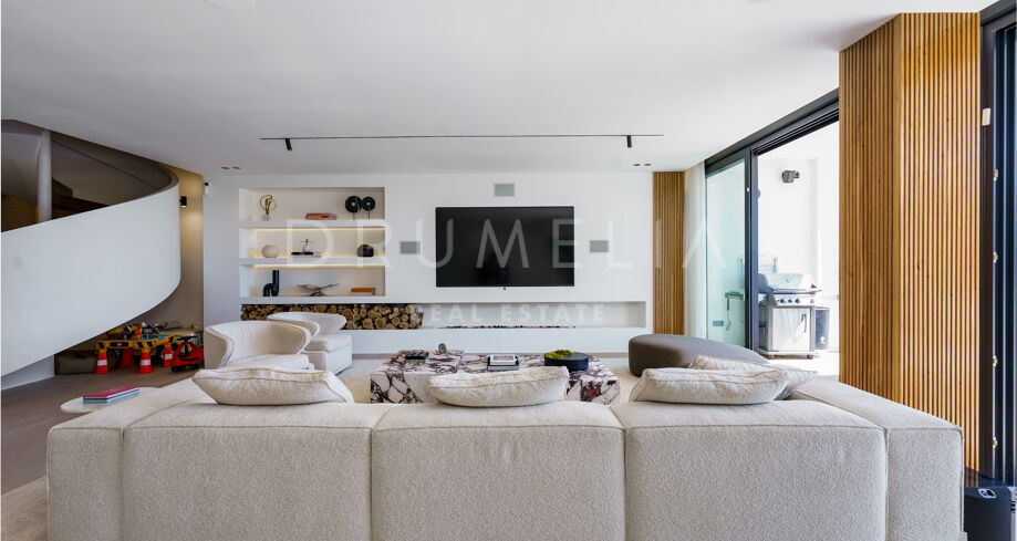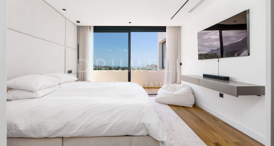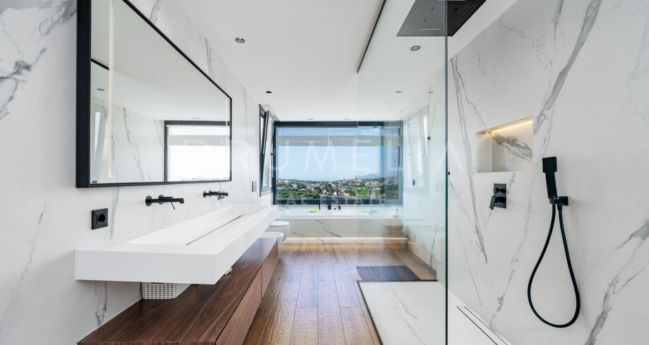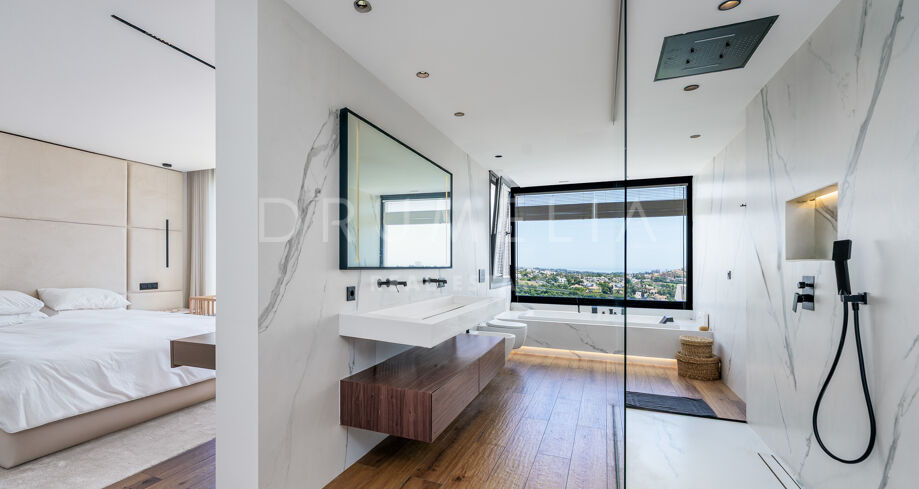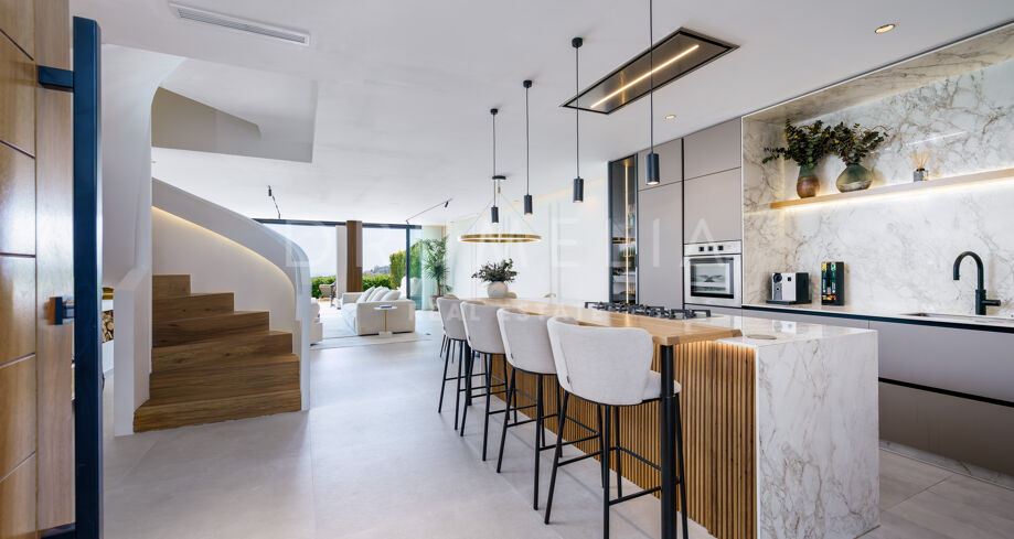 Nieruchomość oferuje imponujące panoramiczne widoki na górę La Concha oraz Morze Śródziemne, tworząc wyjątkowe otoczenie dla miłośników natury i elegancji. Wnętrze wyróżnia się nowoczesnym i funkcjonalnym designem, wysokiej jakości wykończeniami, ogrzewaniem podłogowym, nowoczesnym systemem filtracji wody oraz otwartymi przestrzeniami zaprojektowanymi z myślą o komfortowym i współczesnym stylu życia.