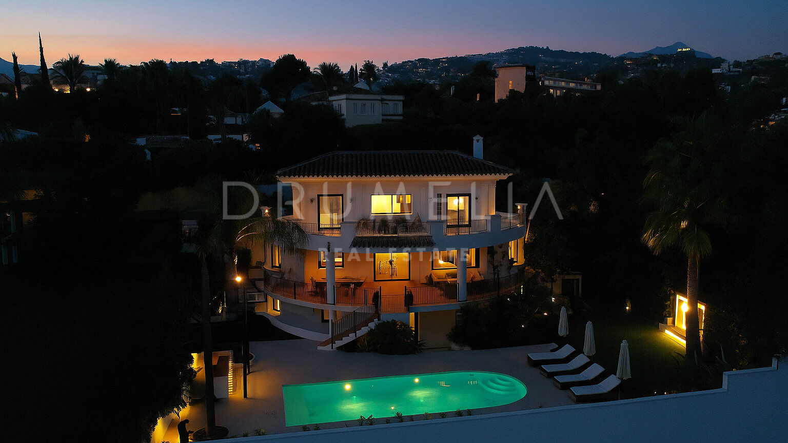 Plaże znajdują się zaledwie 4 km od willi. Położona na spokojnej, rodzinnej ulicy, ta nieruchomość to oaza, w której energia Costa del Sol współgra z ciszą natury.