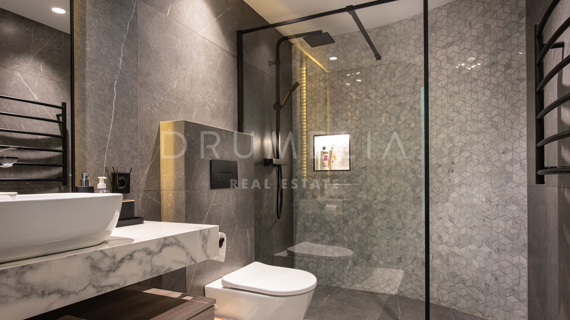 W prestiżowej dzielnicy La Quinta w Benahavís znajduje się ta willa o powierzchni 303 m² (386 m² z tarasami) na działce o powierzchni 765 m², oferująca panoramiczne widoki na Morze Śródziemne, pola golfowe i góry. Południowa orientacja zapewnia światło słoneczne przez cały dzień, podkreślając harmonię luksusu i natury.
