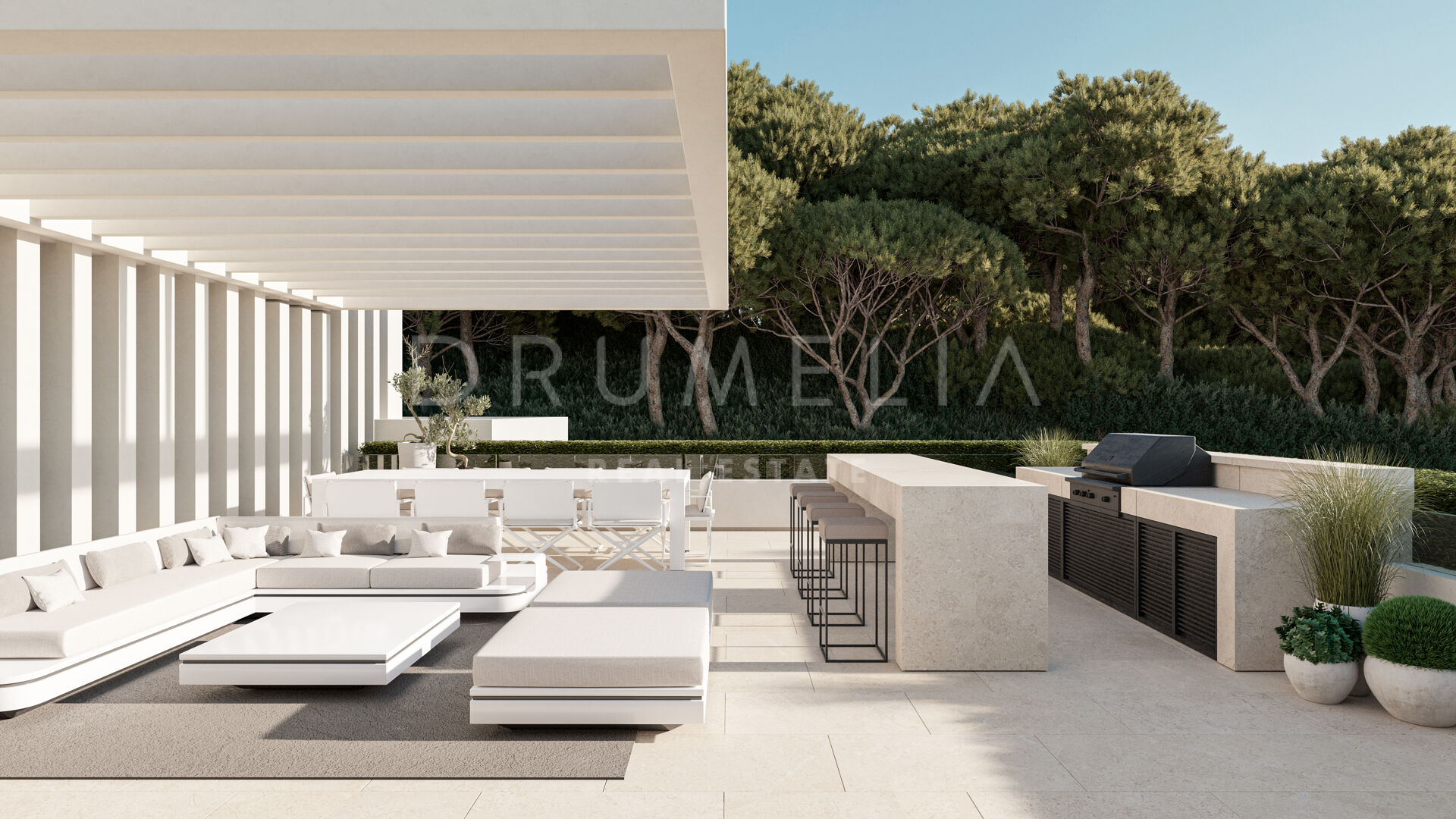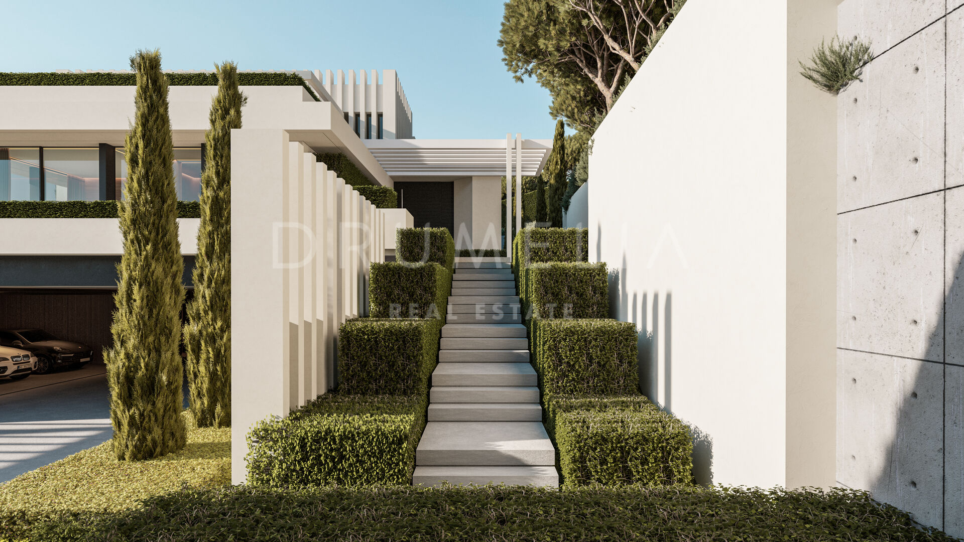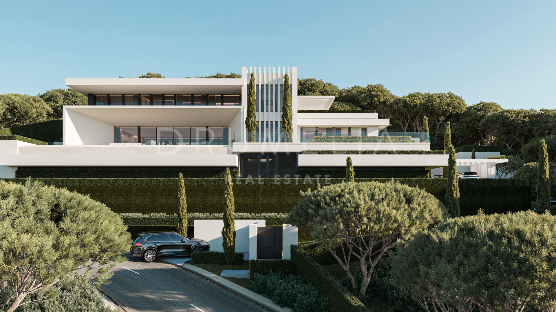 Willa o powierzchni 1.399 m², usytuowana na działce 3.082 m² i rozłożona na trzech poziomach, łączy śmiałą architekturę współczesną z jasnymi, przestronnymi wnętrzami. Panoramiczne okna od podłogi do sufitu otwierają widoki na Morze Śródziemne, otaczające góry, Gibraltar, a nawet odległe wybrzeże Afryki. Ekspozycja południowo-zachodnia zapewnia słońce przez cały dzień oraz niezapomniane zachody słońca.