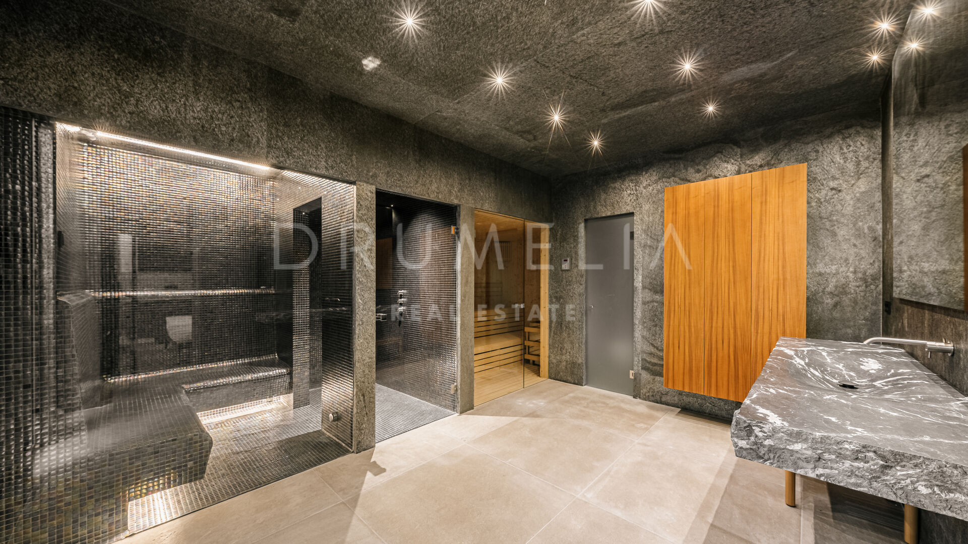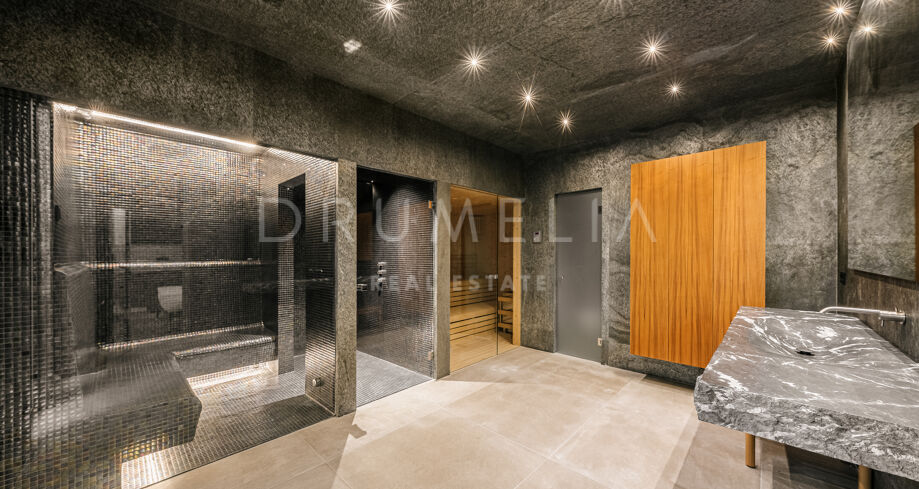 Ta nieruchomość, orientacja południowy zachód, posiada następujące udogodnienia: kuchnia w pełni wyposażona, salon, surveillancecameras, widok na gory, kryty basen, podgrzewane podlogi, rolety, system dolby stereo surround, pralnia, zadaszone tarasy, 24h serwis, elektryczne rolety, ogrodzony kompleks mieszkalny, widok na ogrod, widok panoramiczny, po stronie gor, sala kinowa, klimatyzacja, czesciowo umeblowane, piwnica na wino, steam room, pralnia, kominek, jacuzzi, sauna, piwnica, game room, panele sloneczne, pokoj goscinny, pom.gospodarcze, alarm, kurort – spa, podwójne szyby, laźnia turecka, całkowicie nowe, jadalnia, grill i obsluga ochroniarzy 24h.