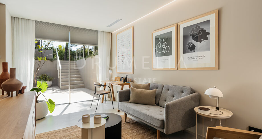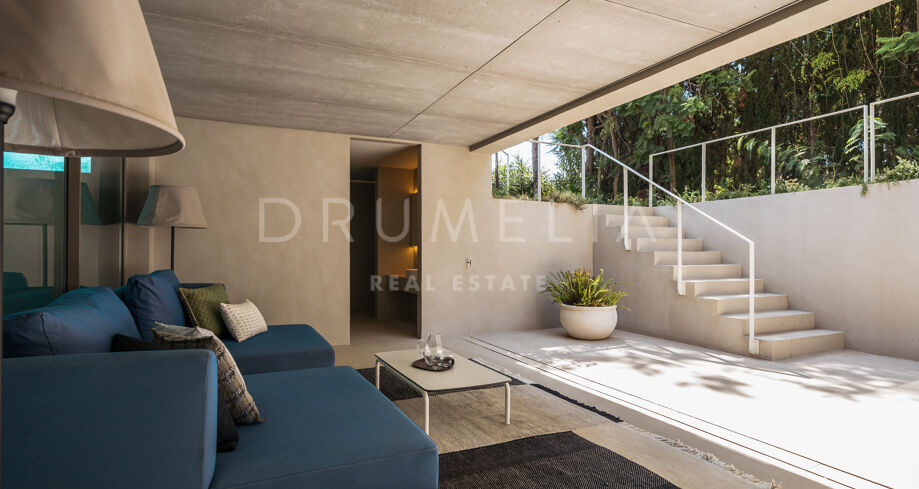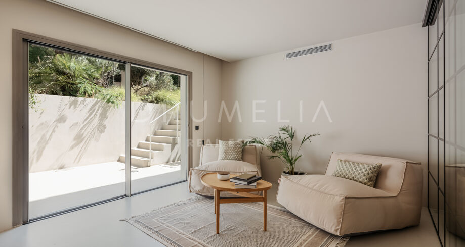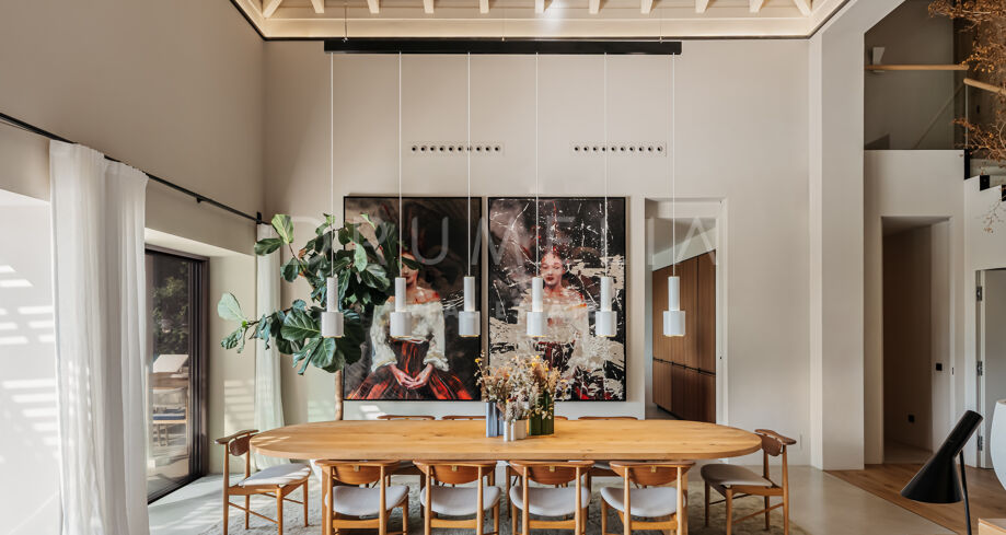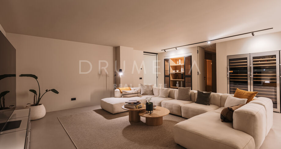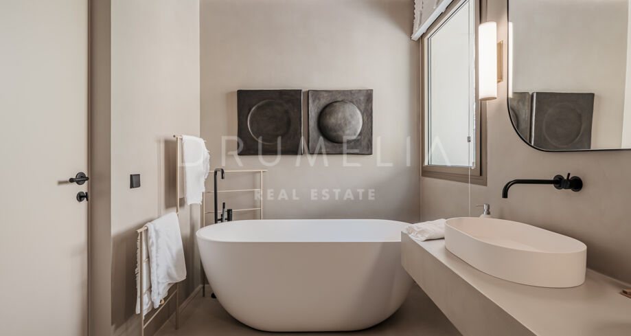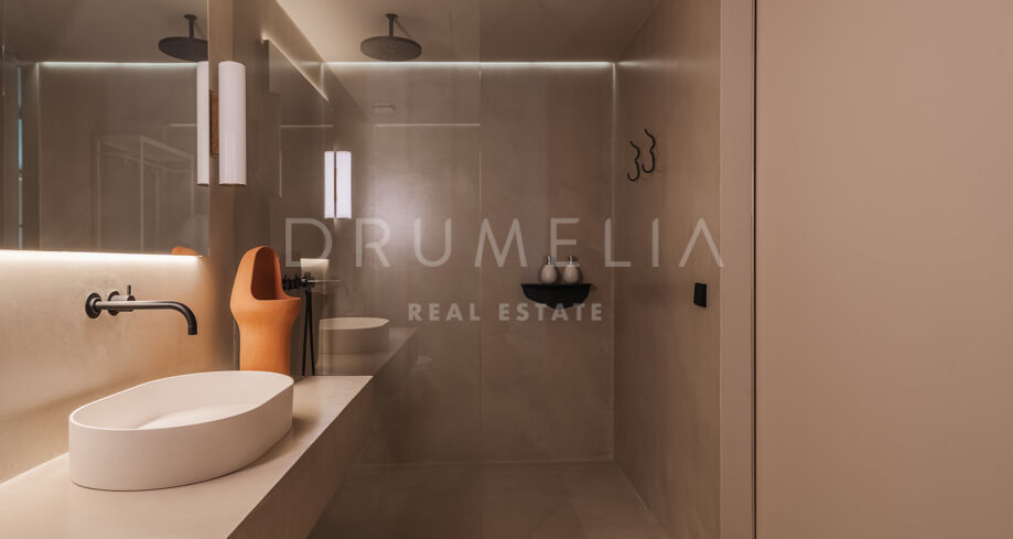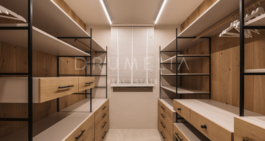 Wolnostojąca rezydencja o powierzchni 862 m², rozłożona na 3 poziomach, oferuje prestiżowe, zaprojektowane na zamówienie meble. Skierowana na południe, położona jest na dużej działce o powierzchni 4.017 m² ze wspaniałymi ogrodami krajobrazowymi i tarasami o powierzchni 120 m² z imponującymi widokami na wybrzeże i góry. Została zaprojektowana przy użyciu innowacyjnych metod, tradycyjnych i nowoczesnych materiałów wysokiej jakości, oferując inteligentny projekt zapewniający bardzo wygodne przestrzenie mieszkalne i prawdziwie wykwintny styl życia, łączący śródziemnomorskie uczucia ze skandynawskim akcentem. Do tej wspaniałej willi wchodzi się przez długi podjazd prowadzący do głównych drzwi otoczonych drzewami oliwnymi. Na parterze znajduje się wspaniały hol wejściowy, który prowadzi do eleganckiej części dziennej z jadalnią i wspaniałym salonem ze sklepionymi sufitami o podwójnej wysokości. W pełni wyposażona kuchnia Arrital z urządzeniami Gaggenau oraz jadalnią wewnątrz i na zewnątrz. Na zachodnim i wschodnim skrzydle znajdują się dwie sypialnie z łazienkami, obie z tarasami i widokiem na morze, a także toaleta dla gości. Duże zadaszone i odkryte tarasy prowadzą do basenu bez krawędzi (o długości ponad 13 m), z którego roztacza się widok na morze. Płaski subtropikalny ogród znajduje się tuż przed i wokół nieruchomości, z automatycznym systemem nawadniania i wspaniałymi widokami na wybrzeże i idylliczną okolicę.