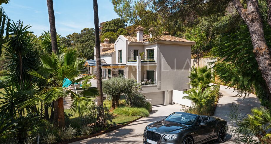 Niedawno odnowiony i urządzony, ten elegancki dom na sprzedaż znajduje się w bardzo prestiżowej okolicy La Zagaleta, w Benahavis, prywatnym kompleksie golfowym i wiejskim oraz jednym z najbardziej ekskluzywnych osiedli mieszkaniowych w Europie. Otoczona chronionymi lasami naturalnymi rezydencja oferuje podobne luksusowe nieruchomości oraz najwyższej klasy obiekty sportowe i rekreacyjne, w tym 2 pola golfowe, 2 kluby z restauracjami, barami, basenem, różnymi salonami, kortami tenisowymi i łopatkowymi, lądowiskiem dla helikopterów i ośrodkiem jeździeckim, a wszystko to na rozległym terenie w naturalnym środowisku z całodobową ochroną.
