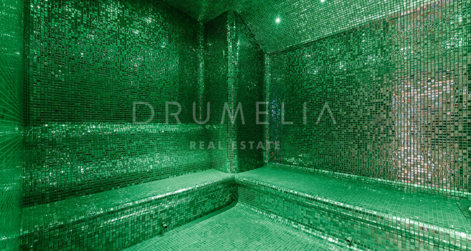 Wewnątrz tego luksusowego domu znajduje się wielki hol wejściowy prowadzący do wielu przestronnych części dziennych, z których wszystkie oferują spektakularne widoki. Z 11 luksusowymi sypialniami i 17 łazienkami przypominającymi spa, każda przestrzeń została stworzona z myślą o spokoju i elegancji. Najnowocześniejsza kuchnia jest w pełni wyposażona, a różne obszary rozrywki obejmują winiarnię, bar i prywatne kino. Bogate SPA i centrum odnowy biologicznej z krytym basenem i siłownią zapewniają prywatne odosobnienie. Nieruchomość obejmuje również obszerny garaż i dodatkowe przestrzenie rekreacyjne.