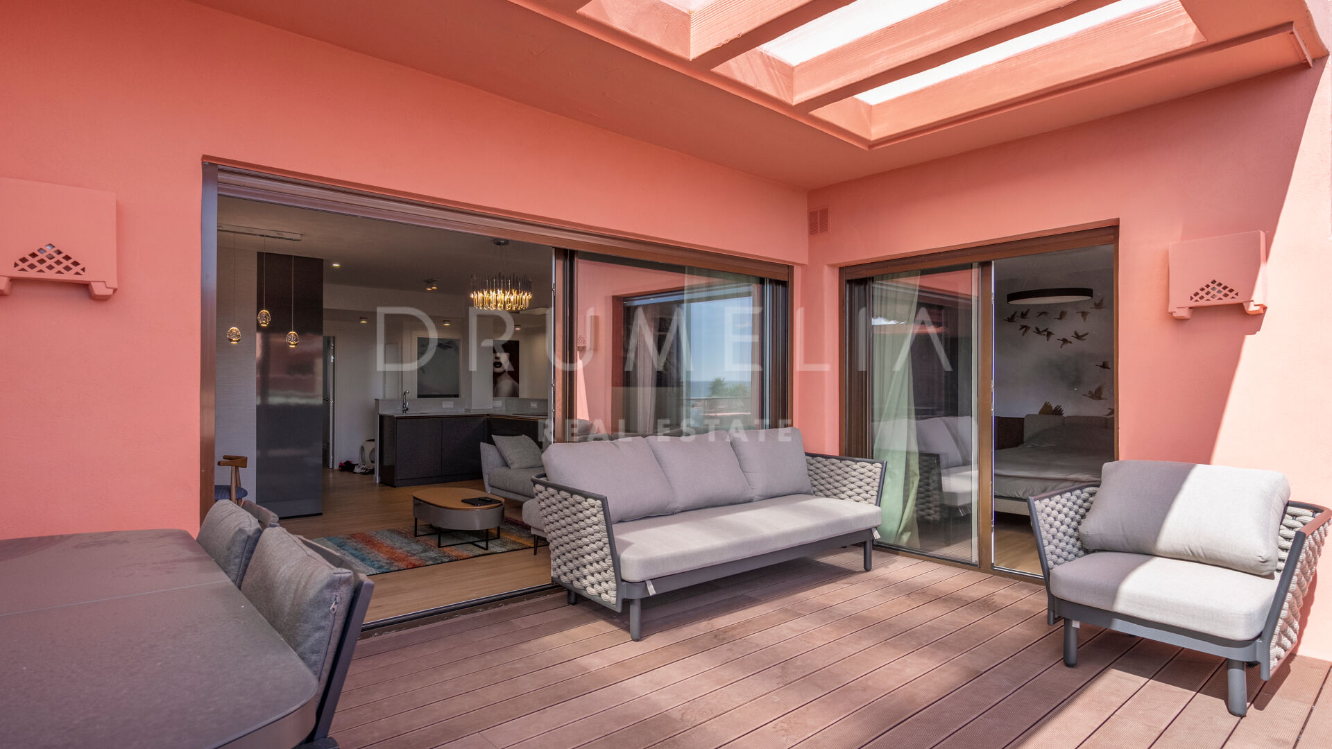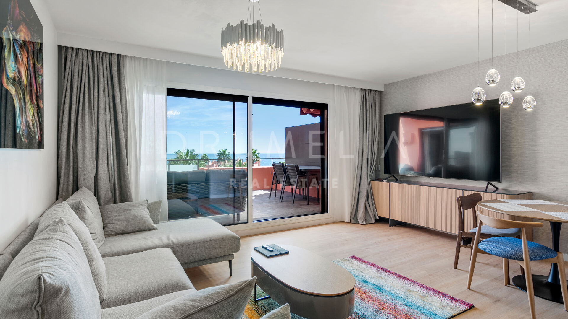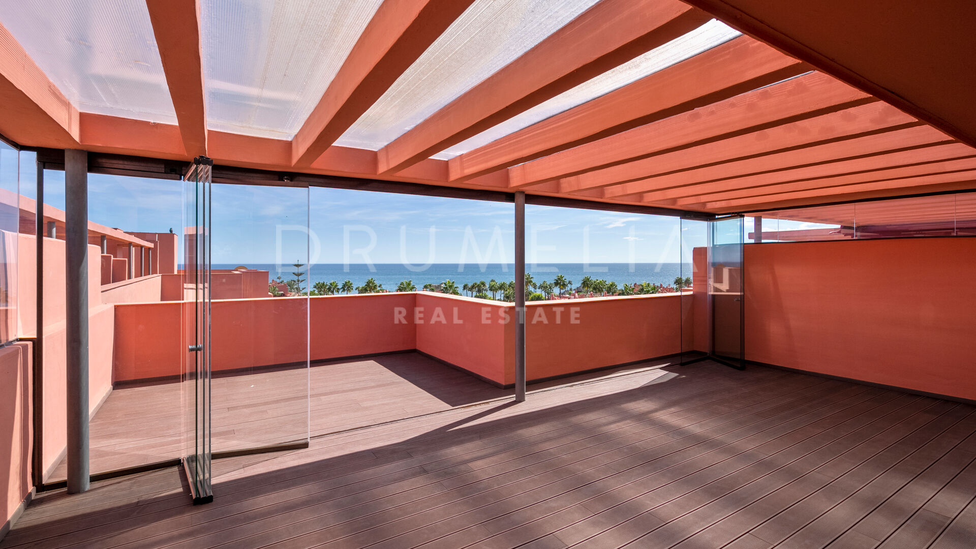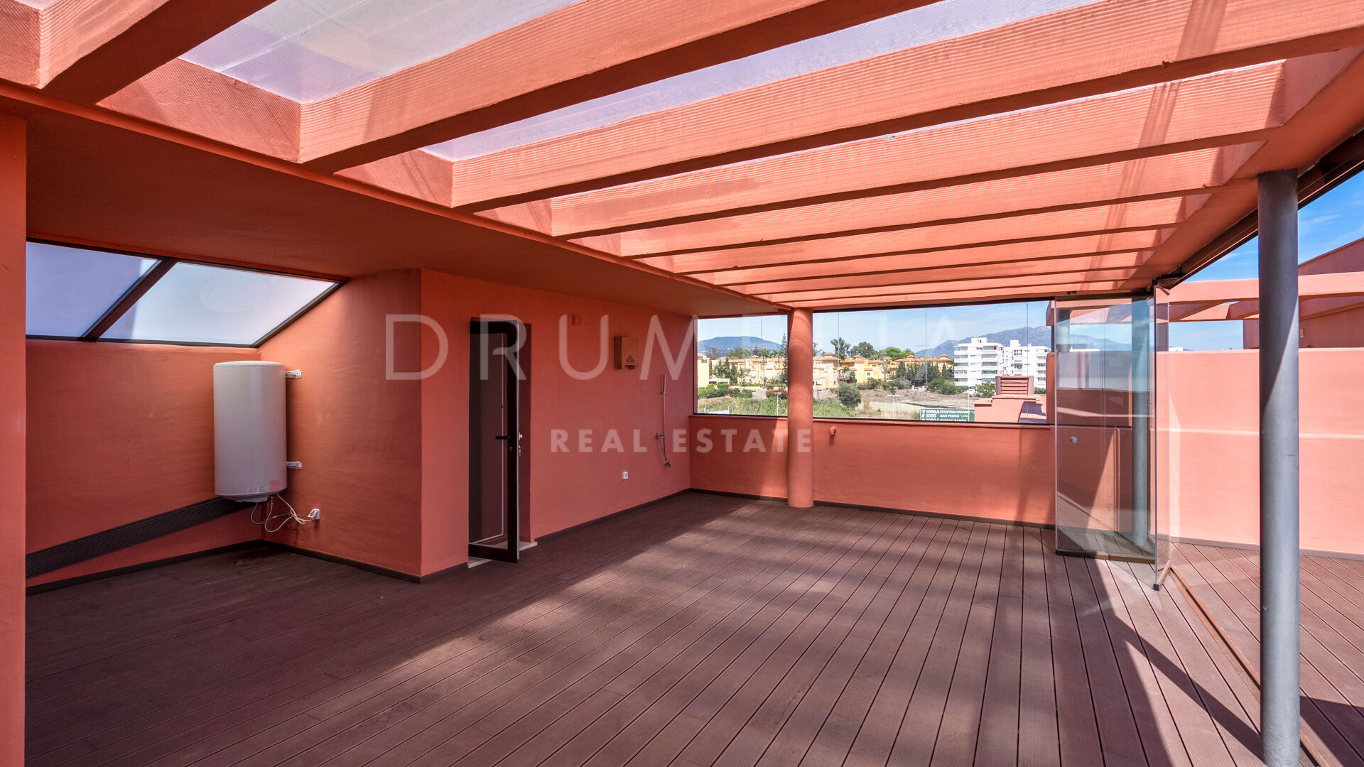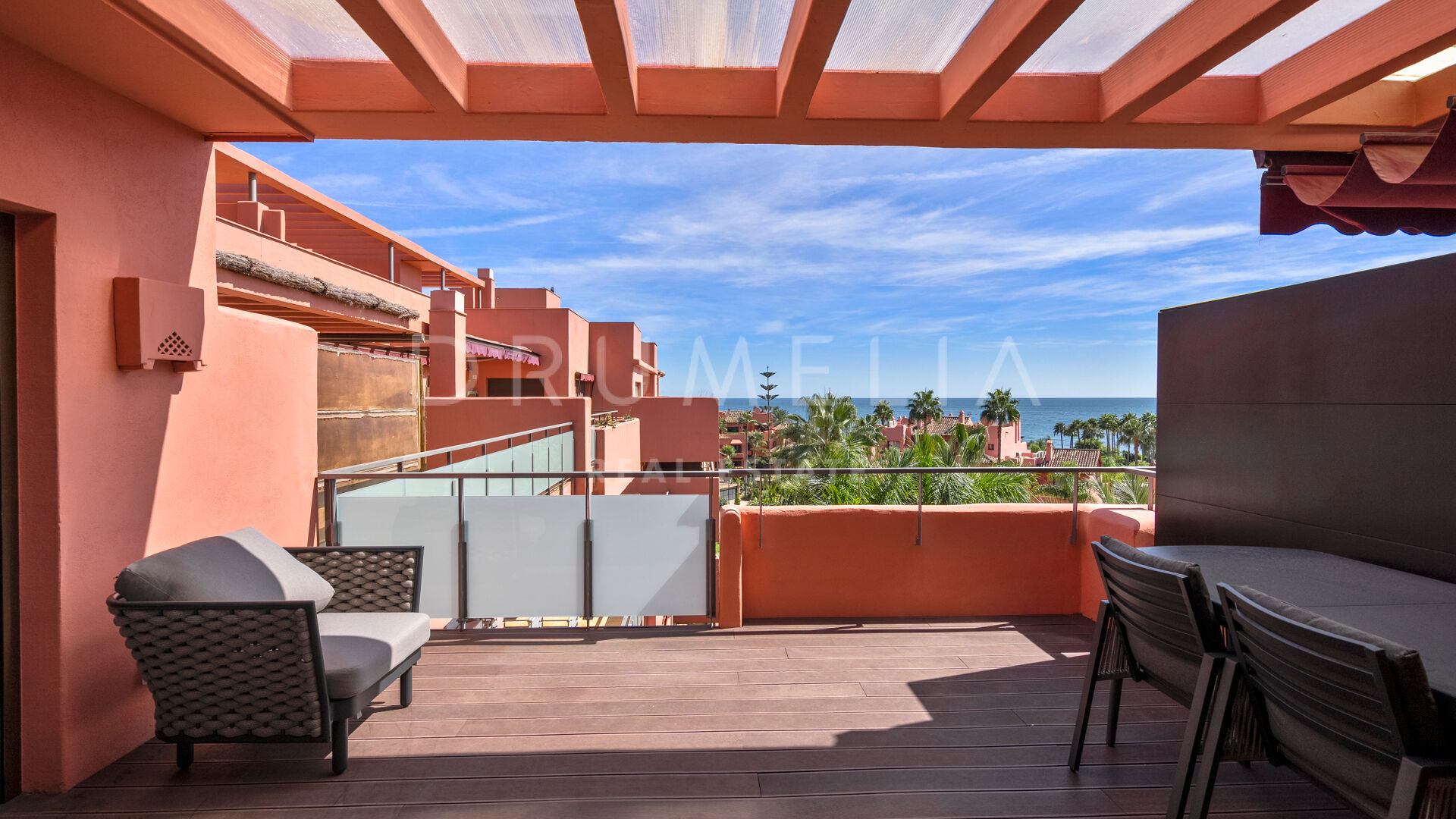 Ten penthouse uosabia elegancję, komfort i luksusowy styl życia. Otoczony zielenią i podobnymi luksusowymi nieruchomościami New Golden Mile, wychodzący na południe / wschód dom obejmuje 3 spokojne sypialnie, 3 łazienki z ogrzewaniem podłogowym, pomieszczenie do przechowywania, otwartą, nowoczesną, w pełni wyposażoną kuchnię i przestronną główną część dzienną z drewnianymi podłogami i szklanymi drzwiami, zapewniającymi światło i elegancję w całym obiekcie. Przesuwane szklane drzwi otwierają się na rozległy taras z panoramicznym widokiem na morze. Taras jest idealny do spożywania posiłków na świeżym powietrzu, a jego strefy relaksu i opalania pozwalają cieszyć się świeżym powietrzem i przyjemną pogodą przez cały rok.