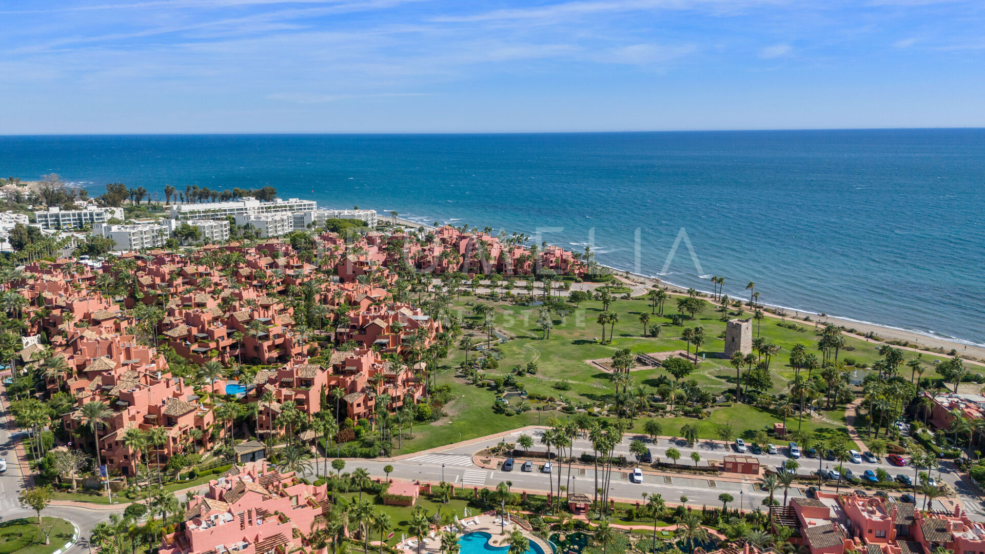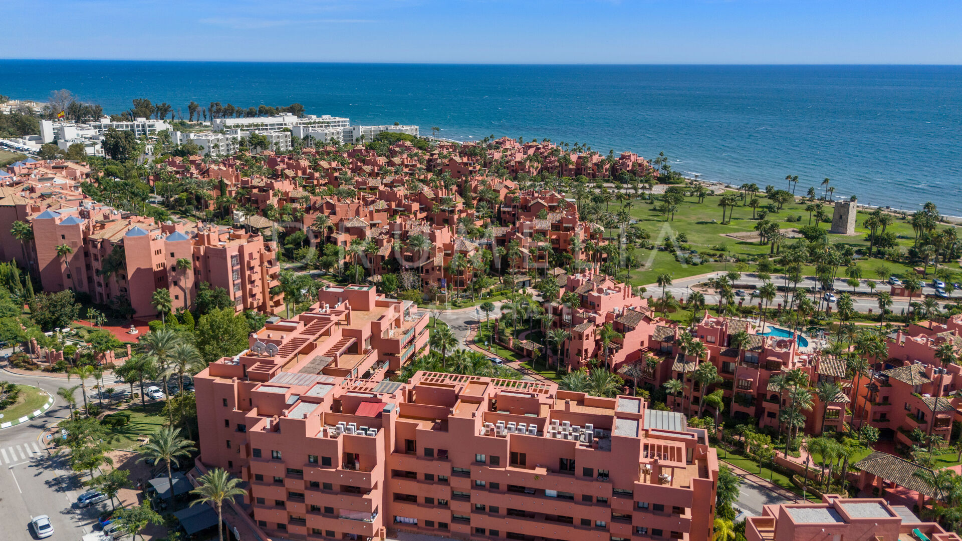Ten odnowiony penthouse z 3 sypialniami jest oferowany na sprzedaż w samym sercu poszukiwanej New Golden Mile, między Esteponą a Marbellą. Las Salinas to zamknięta, wysokiej jakości urbanizacja plażowa drugiej linii z fantastycznymi widokami na morze, położona zaledwie 150 m od plaży, obok hotelu Las Dunas, 8 km na wschód od Estepony. Posiada całodobową ochronę i konsjerża, piękne ogrody z odkrytymi basenami, podgrzewany kryty basen, saunę, jacuzzi, w pełni wyposażoną siłownię, korty tenisowe. Okolica jest bardzo dobrze skomunikowana i posiada doskonałą infrastrukturę. W pobliżu znajdą Państwo lokalne supermarkety i różnorodne sklepy, bary i restauracje (w tym słynną restaurację na plaży Tikitano), a także międzynarodowe szkoły, parki rozrywki, szpitale, apteki, weterynarzy, kilka najlepszych pól golfowych w okolicy i wszystkie inne udogodnienia zapewniające najbardziej komfortowe życie. Do popularnych miejsc w pobliżu Las Salinas należą plaże Guadalmansa, El Saladillo i Playa de Arroyo las Cañas-Velerín. Krótka przejażdżka samochodem zabierze Państwa do legendarnego Puerto Banús, San Pedro, Golf Valley of Nueva Andalucia, luksusowej Złotej Mili Marbelli oraz centrów miast Estepona i Marbella. Najbliższe międzynarodowe lotniska, Malaga i Gibraltar, znajdują się w odległości godziny jazdy samochodem. Las Salinas to doskonałe miejsce do zamieszkania lub spędzenia wakacji, ponieważ znajduje się w centrum Costa del Sol.