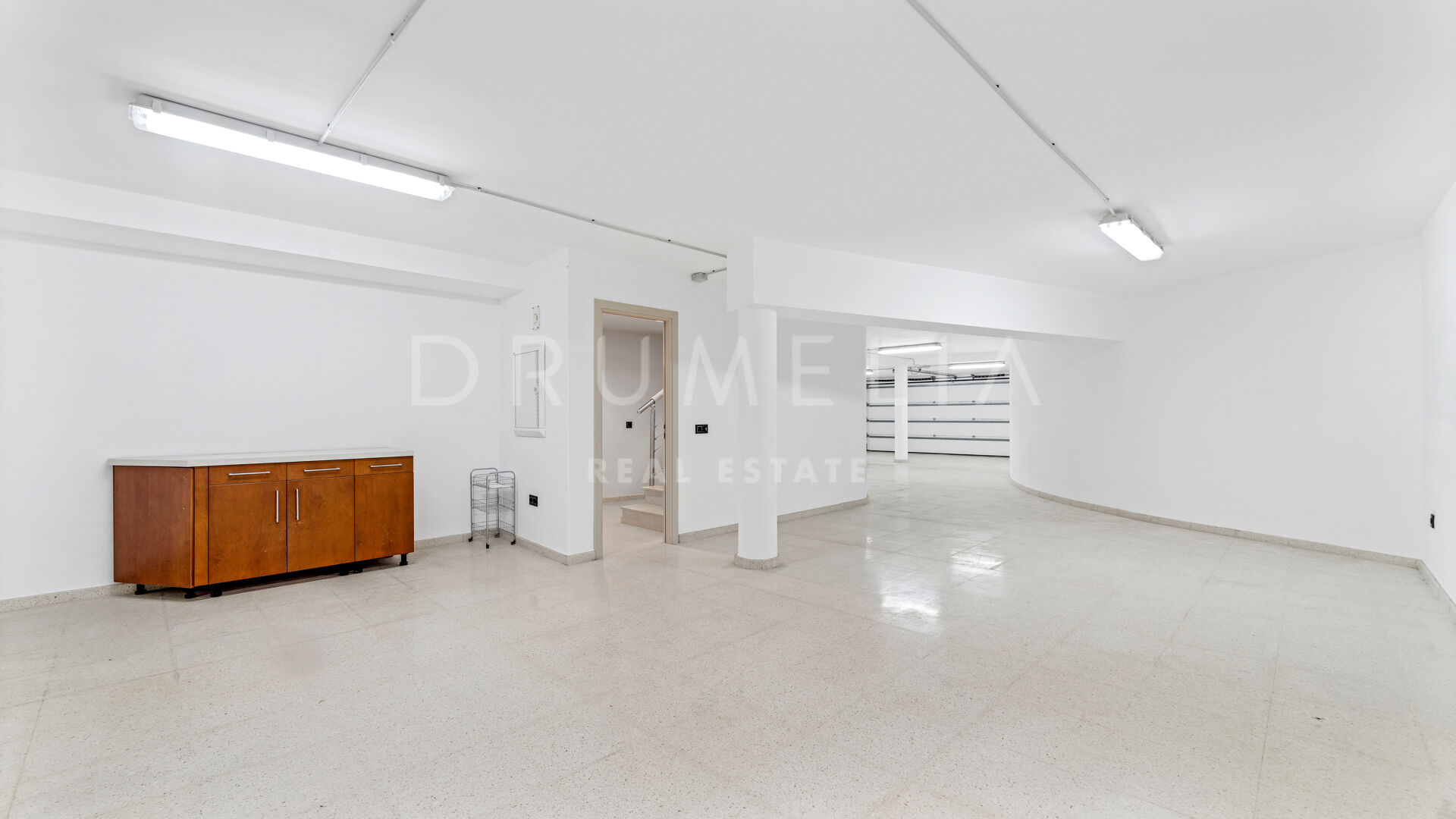 Wchodząc po schodach, dotrą Państwo na pierwsze piętro o powierzchni 113 m², z wypełnioną światłem sypialnią główną, która korzysta z prywatnego tarasu z niezakłóconym widokiem, co pozwala cieszyć się najlepszymi widokami z domu w prywatności. Przy wejściu do tego pokoju znajduje się relaksująca przestrzeń, w której można uciec od niekończącej się presji życia. Na tym poziomie znajduje się kolejna sypialnia z łazienką i prywatnym tarasem. Jasna i szeroka piwnica o powierzchni 205 m² jest zbudowana na tym samym poziomie co ogród i basen, z bezpośrednim dostępem do elementów zewnętrznych, połączonych z domem schodami. Szczyci się naturalnym światłem, ponieważ ma wiele okien i szklane drzwi. Obejmuje nieformalną salę wypoczynkową, miejsce parkingowe na 4 samochody, łazienkę i przestronny schowek. Mogą Państwo stworzyć niezależny dom z 2 dodatkowymi pokojami.