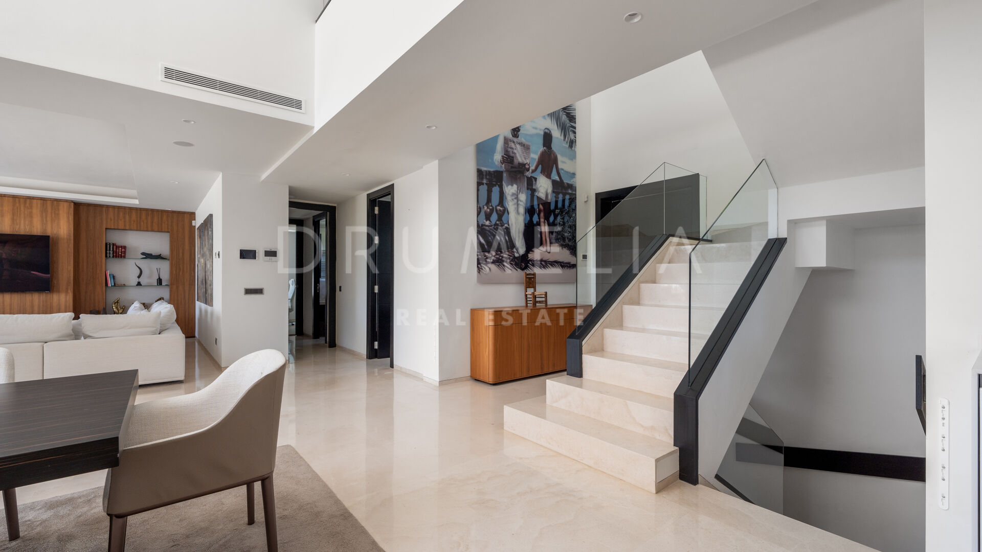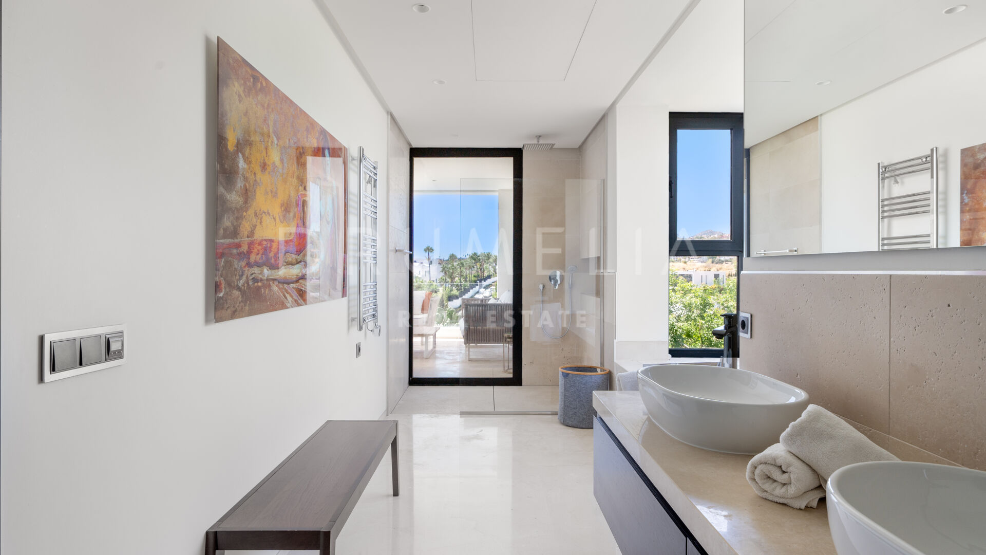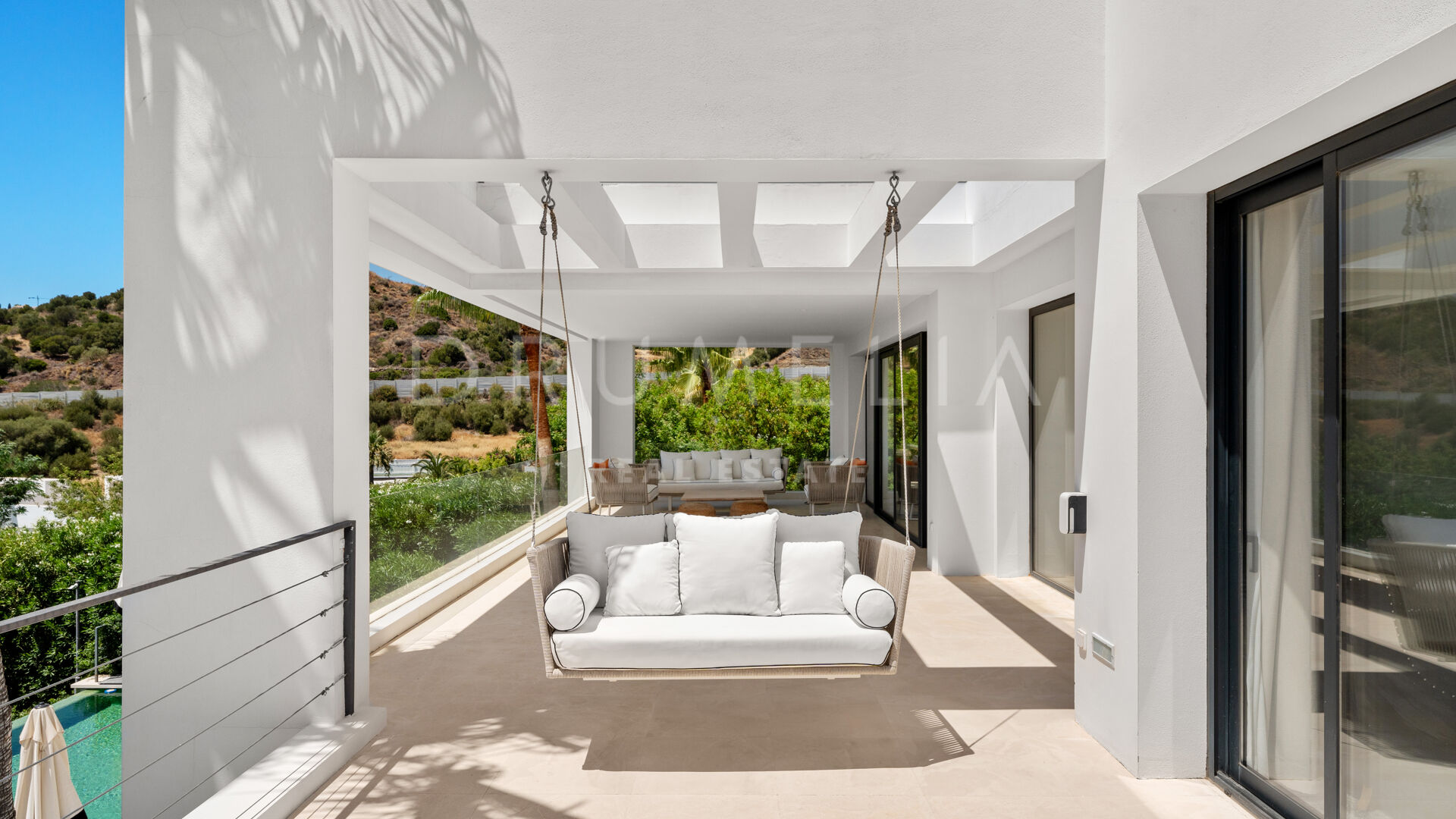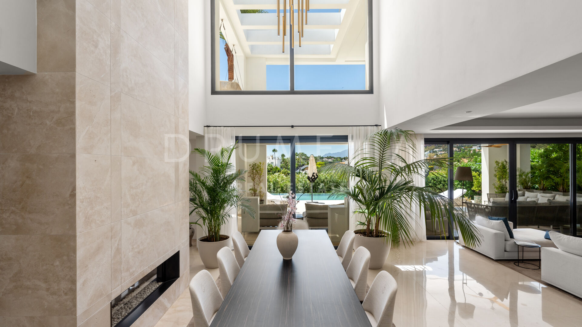 Odkryj wykwintną willę z 5 sypialniami położoną w prestiżowej, zamkniętej społeczności Urb Los Olivos, położonej w samym sercu Nueva Andalucia. Ta luksusowa willa oferuje zapierające dech w piersiach panoramiczne widoki na otaczający krajobraz, pięknie zagospodarowane ogrody i lśniące morze. Położona na podwyższonej działce nieruchomość po mistrzowsku łączy nowoczesne elementy architektoniczne ze śródziemnomorskim urokiem, dzięki czemu jest idealnym sanktuarium dla wymagających nabywców poszukujących ekskluzywności, spokoju i luksusu.